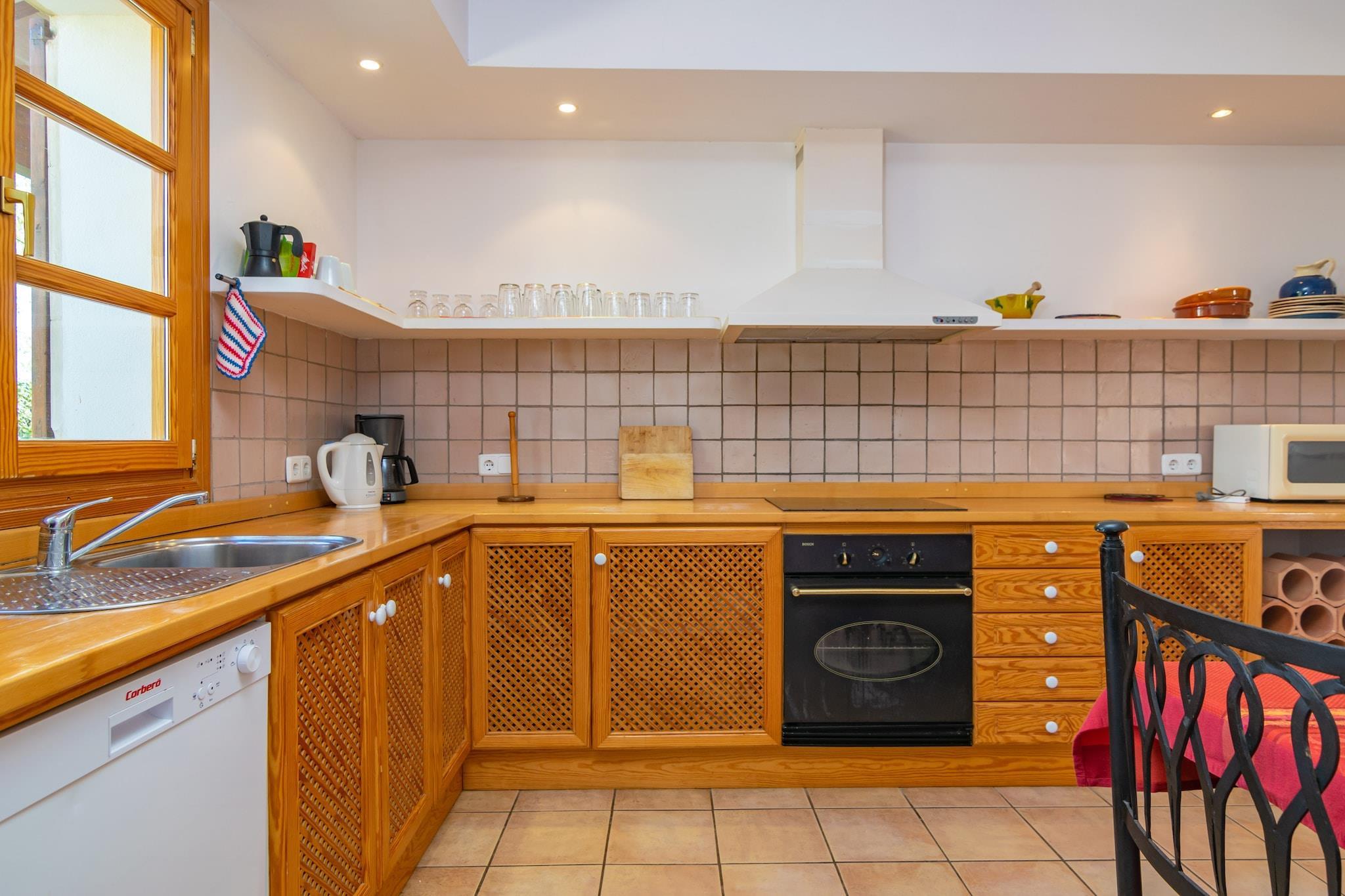 Der gepflegte Garten und möblierte Terrassen, laden Sie ein den ganzen Tag an der frischen Luft zu verbringen. Erfrischen können Sie sich im privaten Frischwasserpool, der 9 x 4 Meter misst und eine Tiefe von 0,9 bis 1,8 Metern hat. Daneben finden Sie Liegen zum Sonnenbaden, eine Gartendusche und eine Rasenfläche, auf der die Kleinen spielen können. Über einige Stufen gelangen Sie auf die Veranda, wo Sie den Tisch für die Mahlzeiten im Freien decken und Köstlichkeiten vom Grill servieren. Das Grundstück ist eingezäunt und es gibt direkte Nachbarn. Das einstöckige Haus bietet einen gemütlichen Stil mit allen Annehmlichkeiten für einen perfekten Aufenthalt. Wohnzimmer, Esszimmer und Küche teilen sich einen großen Raum, der mit Klimaanlage, Satellitenfernsehen, Kamin und Cerankochfeld ausgestattet ist. Es gibt auch eine Waschmaschine, Bügeleisen und Bügelbrett. Dann gibt es noch 3 Schlafzimmer. Eines davon hat ein Doppelbett und ein eigenes Bad mit Dusche. Die anderen beiden Schlafzimmer haben jeweils zwei Einzelbetten. Alle haben AC. Es gibt ein weiteres Badezimmer mit Dusche im Haus. Schließlich können wir Ihnen ein Kinderbett und einen Hochstuhl anbieten, wenn Sie mit Ihrem Baby reisen. Dieses wundervolle Haus befindet sich am Stadtrand von Portocristo, nur 300 Meter von Cala Anguila entfernt, einer kleinen Bucht mit feinem Sand, türkisblauem Wasser und von außergewöhnlicher Schönheit. Aber Sie können auch andere nahe gelegene und ebenso schöne Buchten wie Cala Mandia oder Cala Romántica besuchen. Sie finden alle notwendigen Dienstleistungen für einen unabhängigen Aufenthalt wie Supermärkte, Geschäfte, Bars und Restaurants in Portocristo. Wir empfehlen die Tropfsteinhöhle "Cuevas del Drach" zu besuchen. Die Klimaanlage/Heizungspumpe funktioniert mit Münzen. Die Energie wird von Sonnenkollektoren geliefert. Eventuelle Nebenkosten müssen beim Anbieter nachgefragt werden. Haustiere sind verboten. Partys oder ähnliche Veranstaltungen sind nicht gestattet. Es gibt Freiluftparkplätze für 1 Autos. Entfernungen Strand: 0.300 km - Cal Anguila Flughafen: 63.4 km - Palma de Mallorca Golfplatz: 18.1 km - Vall d'Or Ortsmitte: 3.8 km - Portocristo Bahnhof: 16.2 km - Manacor Bushaltestelle: 2.6 km - Portocristo Fähre: 69.9 km - Palma de Mallorca Krankenhaus: 15.2 km - Hospital de Manacor Touristen Lizenz: ETV/590Einheitsregister: ESFCTU000007023000633118000000000000000000000ETV/5902Auf den Balearen gibt es eine Touristensteuer, die Ecotasa genannt wird. Diese Steuer muss vom Gast bezahlt werden. Der zu zahlende Betrag beträgt zwischen 0.55EURO pro Nacht und Gast in der Nebensaison und 2.2EURO pro Nacht und Gast in der Hochsaison. Ab dem 9. Tag reduziert sich die Steuer um die Hälfte. Personen unter 16 Jahren sind davon ausgenommen Klimaanlage - münzbetrieben (Jan - Dezember): 1 EUR/ (optional)