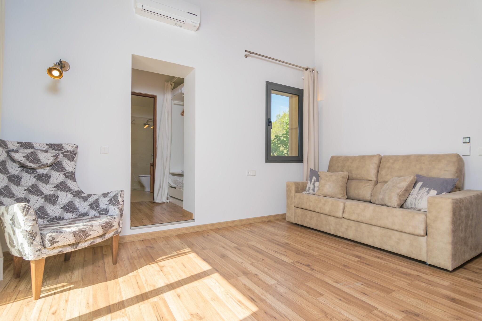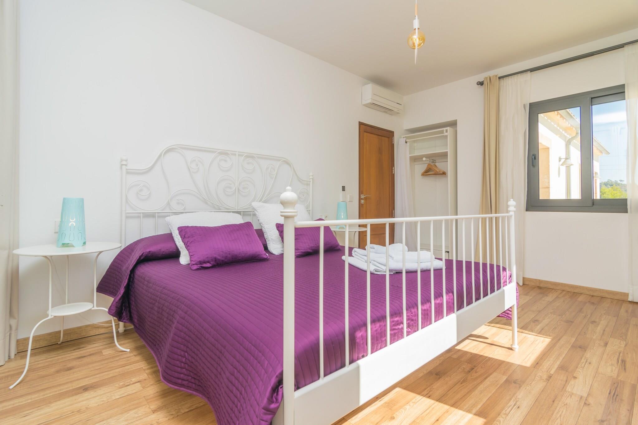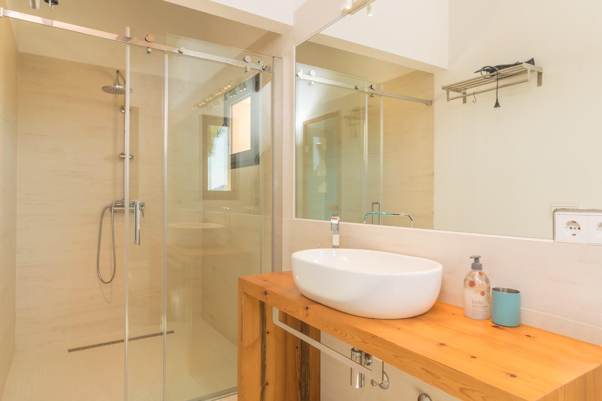 Zum 28.000 m2 großen Grundstück dieser eleganten Finca gehören der private Pool, Garten, Terrassen und die Veranda. Die Bruchsteinfassade der Finca kommt vor allem nachts dank der tollen Beleuchtung gut zur Geltung, wovon man sich auf der vorderen Terrasse bei einem Gläschen Wein überzeugen kann. Im 12 x 4 Meter großen Pool kann man sowohl tagsüber als auch abends seine Bahnen ziehen. Das Wasser wird mit Chlor sauber gehalten und die Tiefe variiert zwischen 1.1 und 1.7 Meter. Rundherum erstreckt sich einerseits die Poolterrasse mit 10 Sonnenliegen und andererseits der Kunstrasen, wo man sein Handtuch ausbreiten kann. Die poolseitige Veranda mit gemauertem Grill, Gasherd und Geschirrspüler lädt zu langen Sommerabenden mit Freunden ein. Egal, ob man es sich in der Sitzecke gemütlich macht oder den Tag mit einem ausgiebigen Frühstück rund um den Esstisch beginnen mag - auf der Veranda ist genügend Platz für alle. Das Haus ist brandneu und mit unschlagbarem Geschmack und Dekoration gestaltet. Der Blick auf die Landschaft und den Wald von innen wird niemanden gleichgültig lassen. Es verfügt über ein Wohnzimmer mit Satellitenfernsehen und Klimaanlage, ein exklusiv gestaltetes Esszimmer mit Platz für mehrere Personen, eine voll ausgestattete Küche mit Cerankochfeld, Backofen, Mikrowelle und allem, was man braucht, sowie insgesamt fünf Schlafzimmer und sechs Bäder mit Dusche. Zwei der Schlafzimmer mit zwei Einzelbetten (eines davon mit eigenem Bad mit Dusche) und ein Außenbad befinden sich auf dieser Etage. Im Obergeschoss befinden sich die restlichen drei Schlafzimmer, zwei davon mit zwei Einzelbetten und eines mit einem Doppelbett, sowie die restlichen drei Bäder, alle mit Dusche und en-suite. Alle Schlafzimmer sind mit Kleiderschränken und Klimaanlage ausgestattet und zwei von ihnen haben Zugang zu einer Terrasse und die Möglichkeit, bis zu zwei Kinderbetten und zwei Hochstühle unterzubringen. Es gibt eine separate Waschküche mit Waschmaschine, Bügeleisen und Bügelbrett. Die Finca liegt ca. 70 Meter von der Hauptstraße Portocolom-Felanitx entfernt, die je nach Verkehrslage akustisch wahrnehmbar ist. Dank dieser guten Lage ist man in wenigen Minuten Autofahrt sowohl in Felanitx als auch an den herrlichen Stränden der Ostküste. Der authentische Ort Felanitx bietet alles, was man im Urlaub als Selbstversorger braucht, darunter Supermärkte und Restaurants. An der Küste befinden sich wie an einer Perlenkette aufgereiht viele schöne Strände. Cala Marçal, Cala Murada oder Cala Domingos sind nur ein paar davon. Eventuelle Nebenkosten müssen beim Anbieter nachgefragt werden. Haustiere sind verboten. Partys oder ähnliche Veranstaltungen sind nicht gestattet. Es gibt Freiluftparkplätze für 5 Autos. Entfernungen Strand: 8.3 km - Cala Marçal Flughafen: 50.8 km - Son Sant Joan Golfplatz: 5.2 km - Golf Vall d'Or Ortsmitte: 5.3 km - Felanitx Bahnhof: 17.6 km - Estació de Manacor Bushaltestelle: 5.3 km - Felanitx Fähre: 60.7 km - Port de Palma Krankenhaus: 19.5 km - Hospital de Manacor Touristen Lizenz: ETV/8262Einheitsregister: ESFCTU00000700800010097600000000000000000000ETV/82624Bei der Anreise muss die Ecotasa (Touristensteuer der Balearen) bar bezahlt werden. Der zu zahlende Betrag beträgt zwischen 0.55EURO pro Nacht und Gast in der Nebensaison und 2.2EURO pro Nacht und Gast in der Hochsaison. Ab dem 9. Tag reduziert sich die Steuer um die Hälfte. Personen unter 16 Jahren sind davon ausgenommen.Die Kaution ist bei Ankuuft direkt an den Eigentümer zu übergeben.