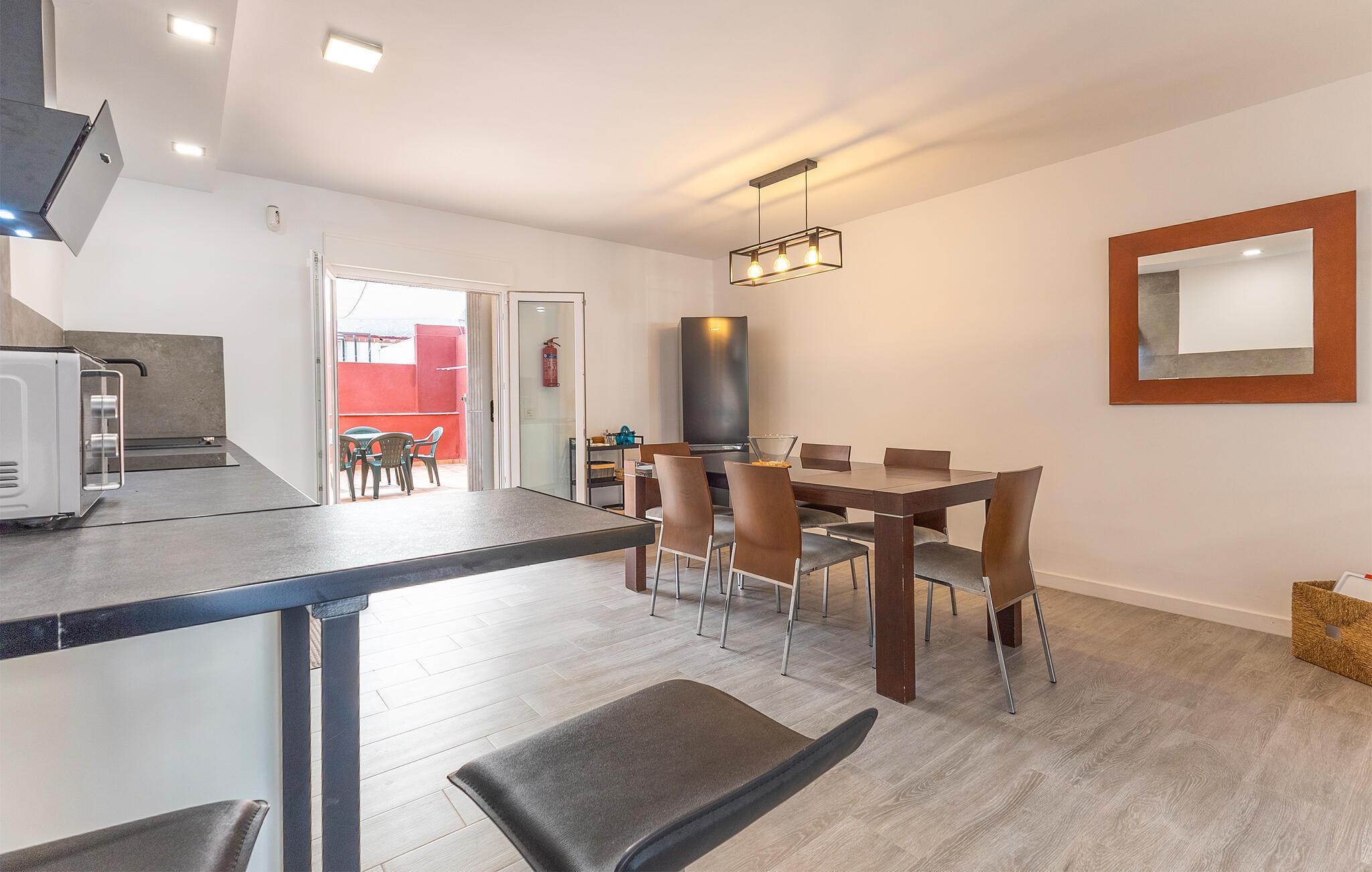 Nutzen Sie die zentrale Lage Ihres Ferienhauses als Ausgangspunkt für Badefreuden, Ausflüge und gemütliche Stunden mit der Familie. Entspannen Sie im Wohnzimmer mit bequemer Couch und Fernseher. Nutzen Sie den offenen Grundriss, der Wohnzimmer, Essbereich und Küche harmonisch verbindet. Bereiten Sie in der modernen Küche Ihre Mahlzeiten zu und genießen Sie diese am großen Esstisch oder an der Theke mit Barhockern. Gestalten Sie Ihre Zeit ganz nach Ihren Wünschen und fühlen Sie sich wie zu Hause.