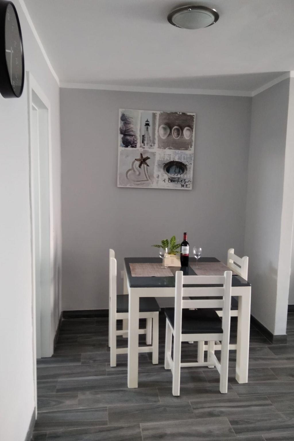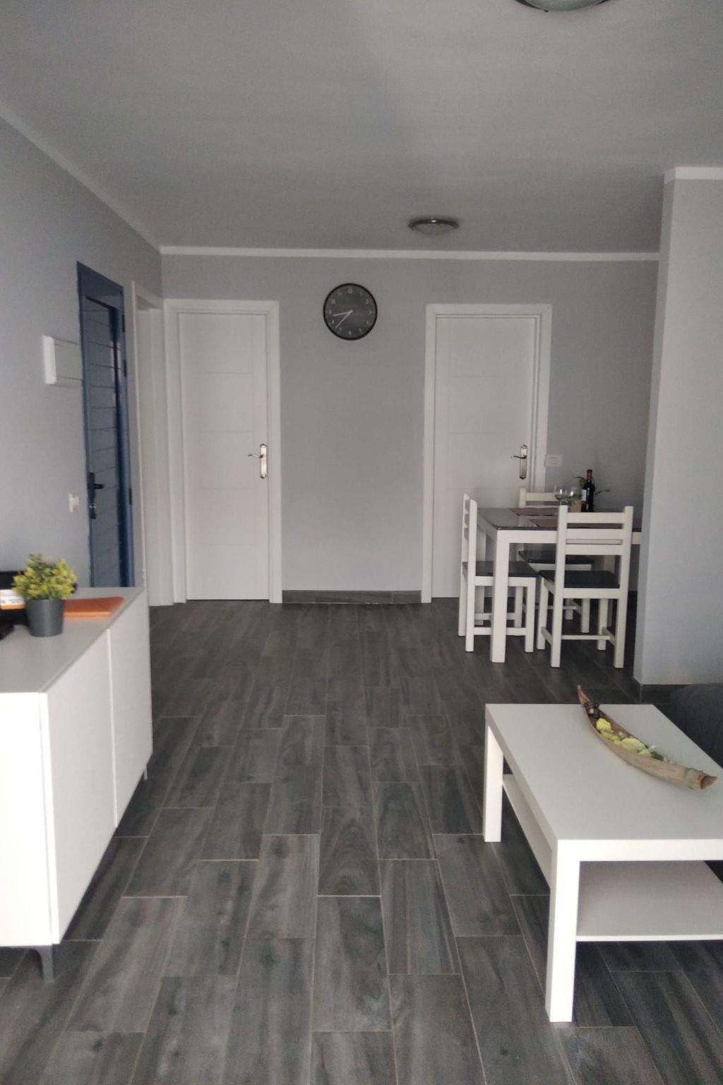 Die Wohnung befindet sich in der Anlage Aguazul, im Erdgeschoss, sie besteht aus 1 Schlafzimmer, Wohnküche, Bad und Terrasse. Das Schlafzimmer hat ein Bett von 1,35m mit einem großen Kleiderschrank, zwei Nachttische, mit einer einfachen Dekoration und einem Deckenventilator, die Küche ist perfekt ausgestattet mit Cerankochfeld, Dunstabzugshaube, Kaffeemaschine, Kühlschrank, Toaster, Saftpresse, Mikrowelle, Geschirr und Besteck. Das Badezimmer mit Waschbecken, WC, Dusche und Haartrockner, mit einem weiteren kleinen Raum mit Bügelbrett, Bügeleisen, Waschmaschine und Heizung. Das Wohnzimmer mit Flachbildschirm und Kabelfernsehen mit nationalen und internationalen Kanälen, mit einem Schlafsofa von 1,35m. Die Wohnung verfügt über kostenloses WLAN, einen Safe und einen öffentlichen Parkplatz.