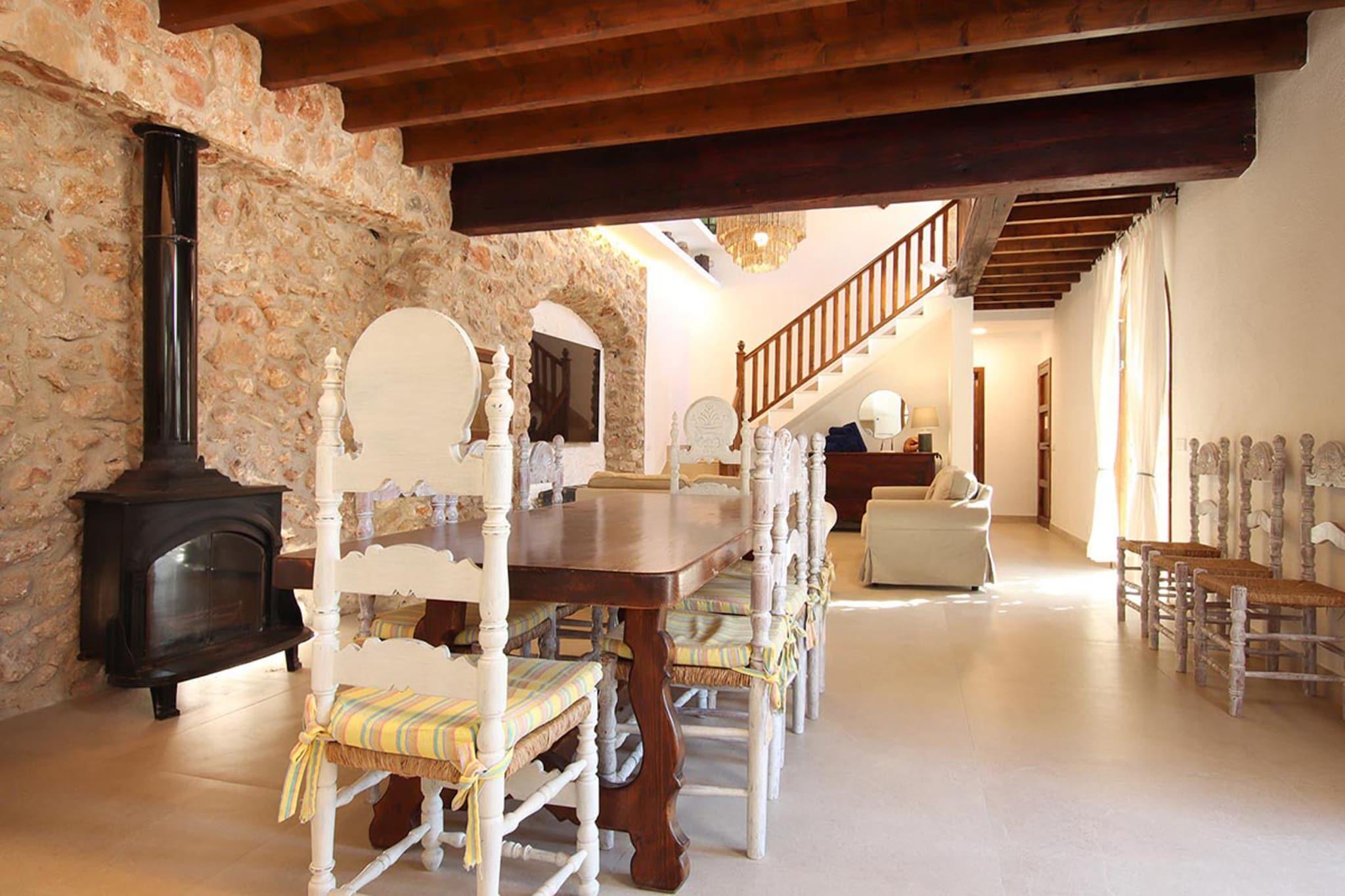 Tauchen Sie ein in den außergewöhnlichen Charme und die Handwerkskunst dieser atemberaubenden Villa Ben SA mit vier Schlafzimmern, eingebettet in die mallorquinische Landschaft. Die Architektur der Villa ist ein wahres Meisterwerk, hervorgehoben durch faszinierende Steinbögen und Brücken, die dem Anwesen ein einzigartiges Flair verleihen. Bei Ihrer Ankunft werden Sie von einer atemberaubenden Steinbrücke begrüßt, die abends wunderschön beleuchtet ist und den Ton für einen unvergesslichen Aufenthalt angibt. Der offene Wohnbereich der Villa verbindet modernes Design mit Eleganz und bietet einen geräumigen Wohnbereich, einen Essbereich und eine voll ausgestattete Küche, die sich perfekt zum Zubereiten von Mahlzeiten eignet. Im Obergeschoss verfügen zwei Schlafzimmer jeweils über private Terrassen mit atemberaubendem Blick auf Pool, Garten und Berge. Ein Schlafzimmer verfügt über ein eigenes Bad, während das andere Zugang zu einem großzügigen Badezimmer bietet. Im Erdgeschoss befinden sich ein Zweibettzimmer und ein Badezimmer, das gleichzeitig als Gäste-WC dient. Ein separater Anbau bietet zusätzliche Schlafgelegenheiten mit einem Doppelbett, eigenem Bad und einer Waschküche für zusätzlichen Komfort. Die Villa bietet bequem Platz für bis zu acht Gäste und ist somit ideal für Familienfeiern oder Gruppenausflüge. Der Pool der Villa mit seiner unregelmäßigen Form und dem felsigen Rand ist ein einladender Mittelpunkt des Anwesens. Eine überdachte Grillterrasse mit Chillout-Möbeln lädt zum Essen im Freien ein und lässt die ruhige Umgebung auf sich wirken. Die Villa bietet außerdem verschiedene Outdoor-Unterhaltungsmöglichkeiten, darunter Tischfußball, Tischtennis und einen Billardtisch für stundenlangen Spielspaß. Die Vermietungslizenznummer lautet ETV/393