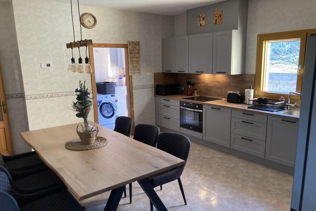 Die Finca bietet 3 schöne Doppelschlafzimmer und 2 kürzlich renovierte Badezimmer. Die Schlafzimmer sind alle mit Klimaanlage kalt/warm versehen. Die neue, klassische Küche ist voll ausgestattet und grenzt an die Waschküche und einen offenen Ess- und Wohnbereich. SAT-TV (deutsche und englische Programme), DVD Player, Stereoanlage und WIFI ergänzen die Annehmlichkeiten dieses Hauses. Weiterhin sind die Küche und das Wohnzimmer mit modernen Infrarotheizungen ausgestattet, die das Haus das ganze Jahr lang über sehr gut bewohnbar machen. Die überdachte Terrasse führt zu einem nach Südosten ausgerichteten Pool- und Barbecue-Bereich, der einen ruhigen Ort zum Entspannen und Essen im Freien bietet.
