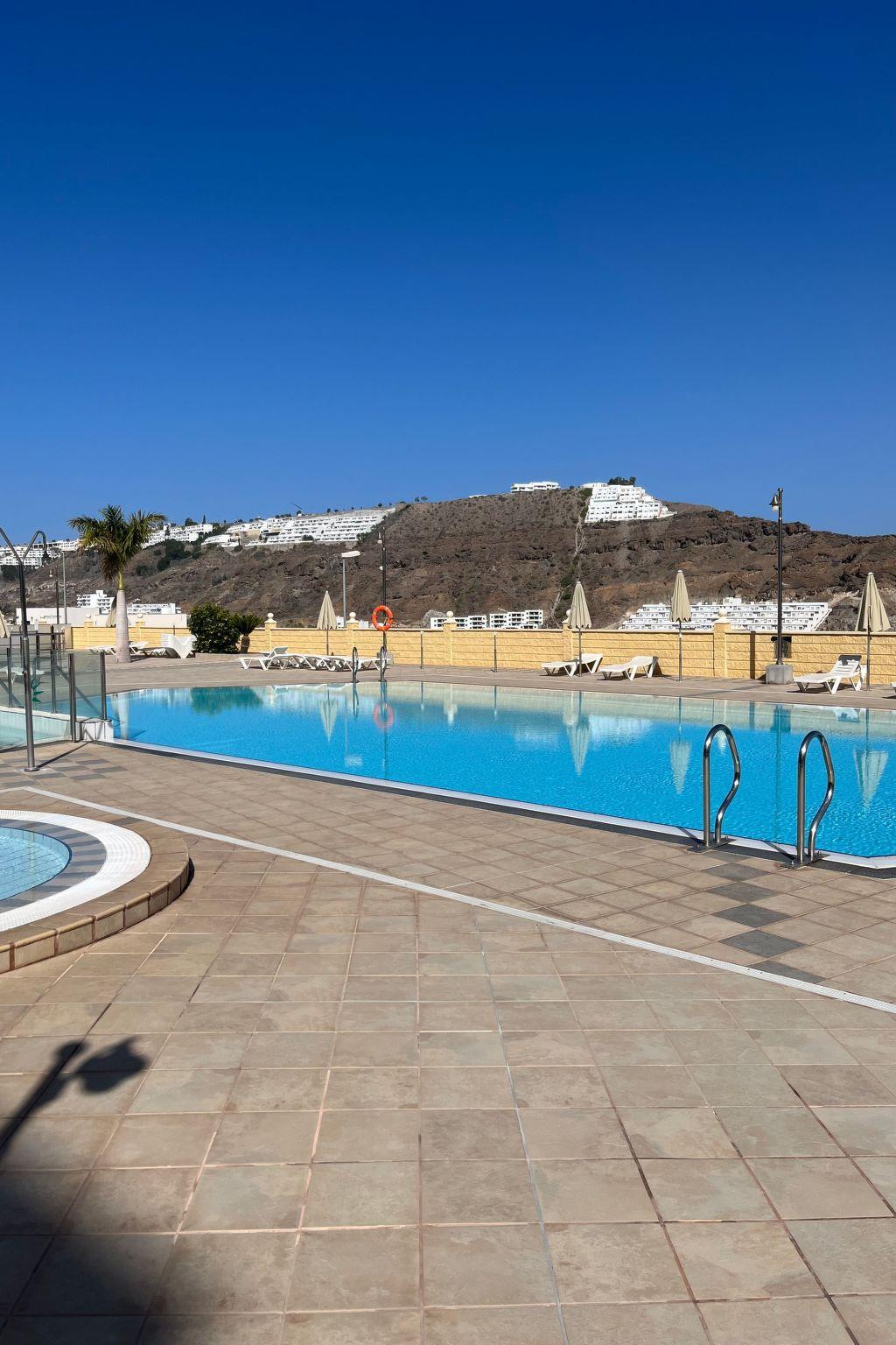 Es gibt eine Terrasse mit Esstisch, 2 Liegestühlen und einem Sonnenschirm. Es gibt auch einen zusätzlichen Sonnenschirm, um an den Strand zu gehen. Die Terrasse ist eingezäunt und bietet viel Privatsphäre. Es gibt einen großen Gemeinschaftspool mit Jacuzzi direkt an der Unterkunft mit Außendusche. Es gibt einen Parkplatz im Erdgeschoss in der Garage in der Anlage.