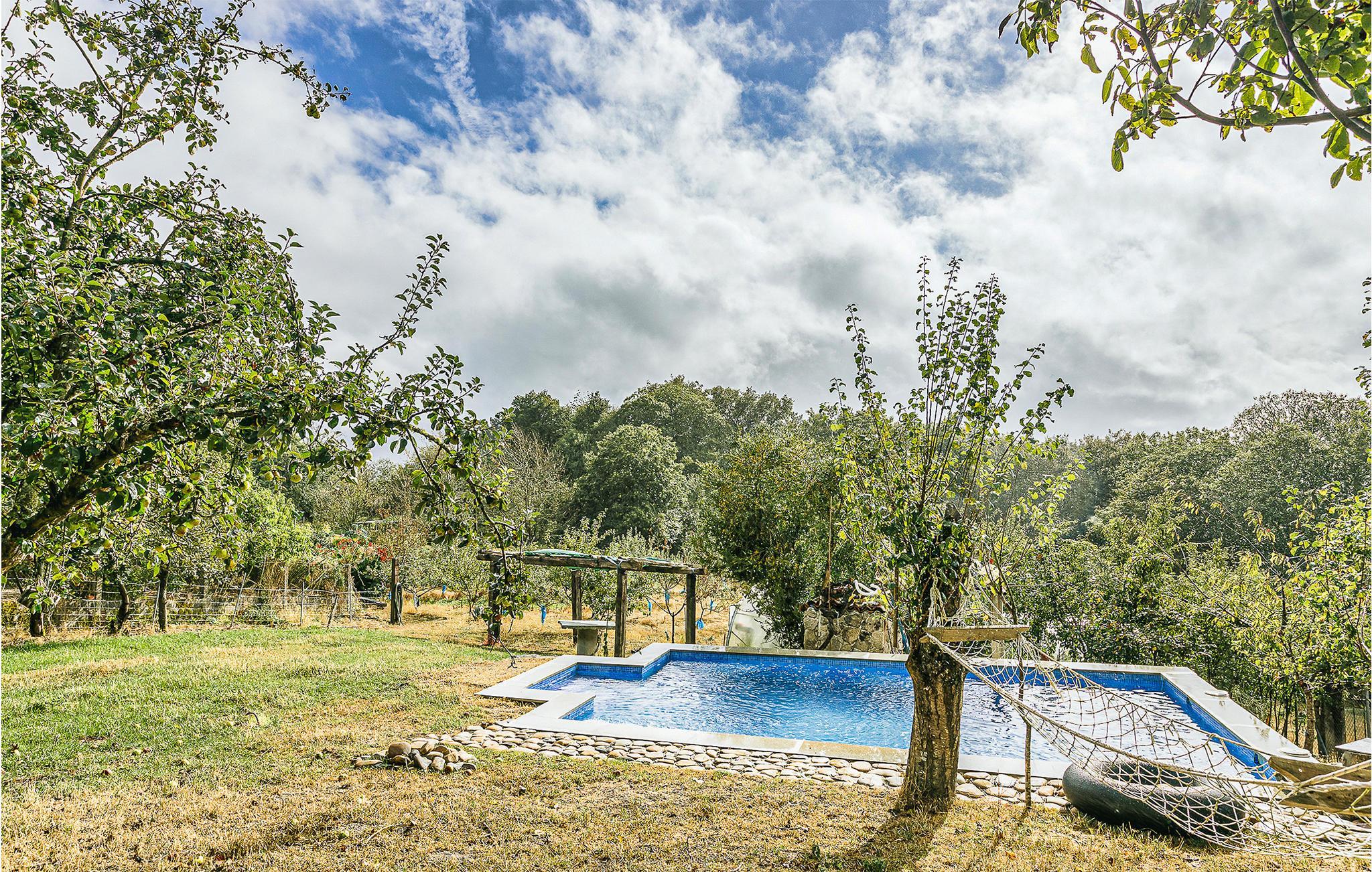 Vom Haus aus erreichen Sie in wenigen Schritten den gemeinsamen Außenpool. Hier können Sie morgens ins Wasser springen und den Blick auf die wunderschöne Landschaft genießen. Zum Haus gehört auch eine offene Terrasse, wo Sie sich gut ausruhen können und abends den Tag bei einem kalten Cerveza schön ausklingen lassen können. Wenn Sie sich richtig entspannen möchten, finden Sie in der Hängematte am Pool den richtigen Ort. Vielleicht wäre jemand so nett, Ihnen eine eisgekühlte Erfrischung zu bringen?