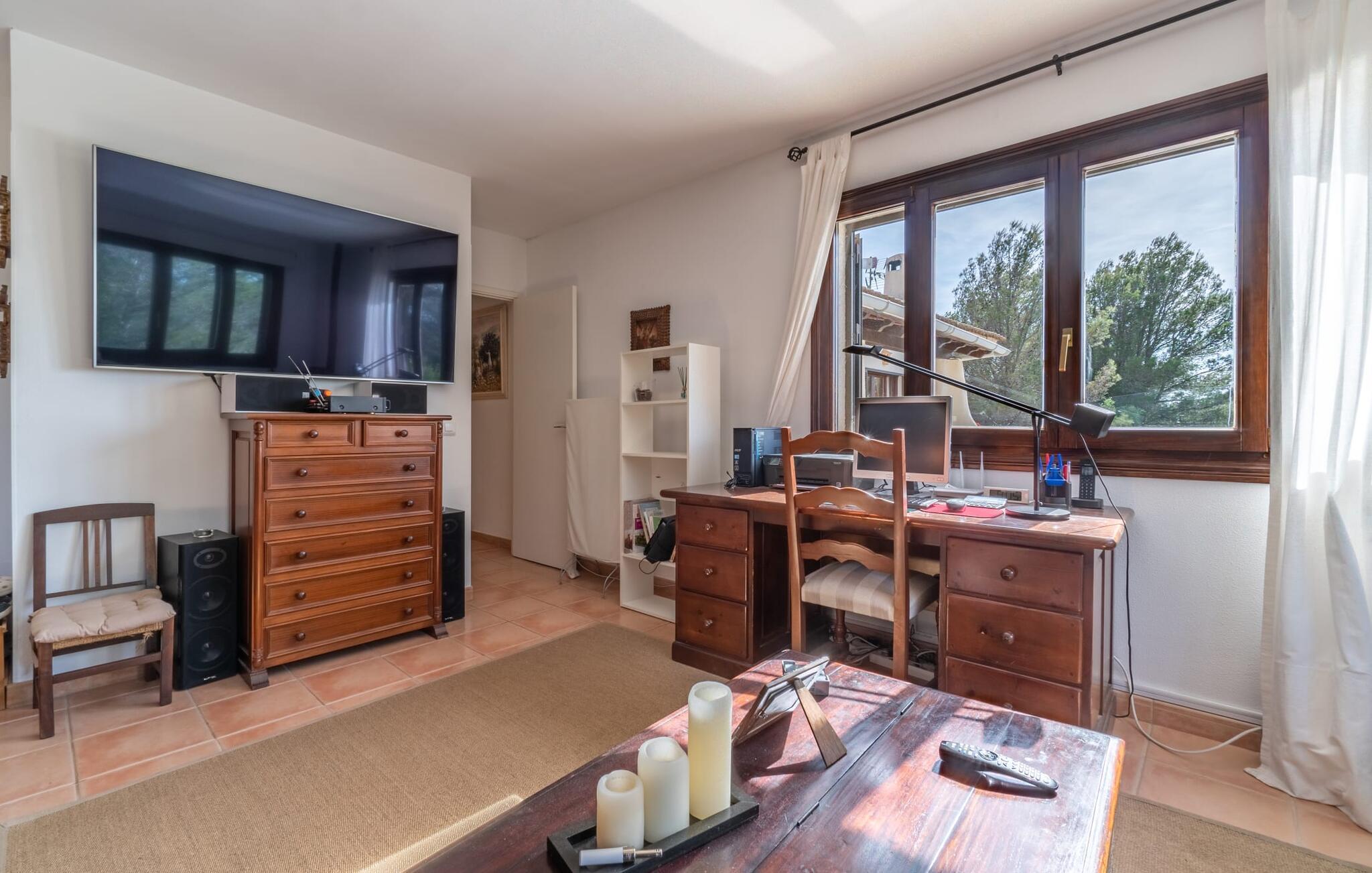 Das Innere dieser gemütlichen Ferienvilla ist mit einer geschmackvollen Auswahl an antiken Holzmöbeln ausgestattet. Im Erdgeschoss befinden sich ein einladendes Wohnzimmer mit Kamin und einer verführerischen Sofaecke, zwei Doppelschlafzimmer und ein separates Badezimmer. Der große Wintergarten im Erdgeschoss ist ein toller Ort zum Verweilen an regnerischen Tagen, ohne auf viel Tageslicht verzichten zu müssen. Eine Treppe im Eingangsbereich führt in das Obergeschoss. Hier haben wir ein helles Esszimmer mit Zugang zu zwei in verschiedene Richtungen ausgerichteten Terrassen. Beide Terrassen eignen sich auch für gemütliche Essbereiche im Freien. Über einen großzügigen, von einem Balkon gesäumten Flur gelangen Sie in die rustikale, voll ausgestattete Küche sowie in ein freundliches Hauptschlafzimmer mit eigenem gemütlichen Wohnbereich mit Kamin und Büro. Die Ferienvilla „Romani“ liegt im ruhigen Küstenort Betlem an der Südspitze der Bucht von Alcúdia. Die Felsenküste ist 7 Gehminuten entfernt; Der lange Naturstrand von Son Serra Marina mit schönen Restaurants mit Meerblick ist eine 14-minütige Autofahrt entfernt. Die schöne Stadt Artà liegt 15 km weiter im Landesinneren und bietet Einkaufsmöglichkeiten und einen schönen Wochenmarkt (dienstags).