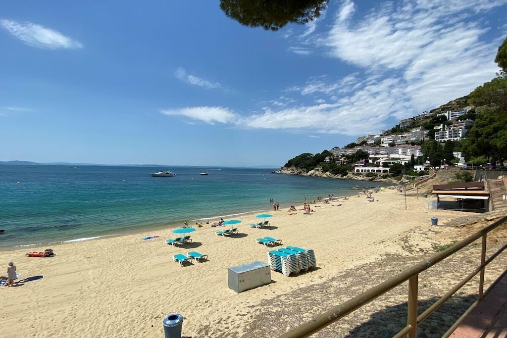 Strand fußläufig in 4 Minuten Die Wohnung hat insgesamt 100 m² - starten Sie den Tag mit einem Frühstück bei Meerblick auf der 30 m² großen Terrasse. Goldener Sand und das kristallblaue Meer zeichnen Canyelles Petites aus. Parkmöglichkeiten vor der Tür oder auf einem kostenpflichtigem großen Parkplatz (etwa 400 m entfernt) Surfen Sie mit mobilem WLAN- Sie kaufen Vorort eine SIM-Karte (150 GB =19,90 EUR bei Vodafone in Rosas.)