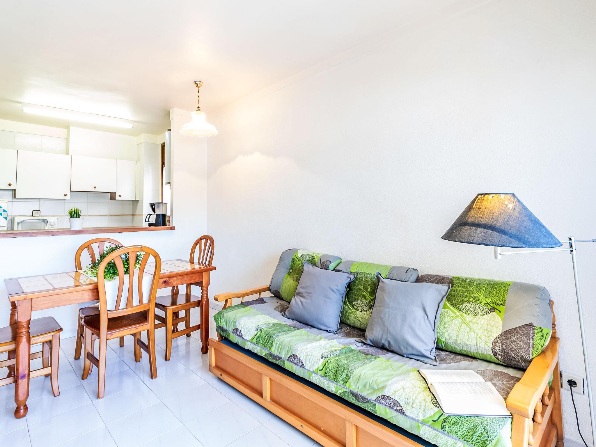 2-Zimmer-Wohnung 45 m2, im Erdgeschoss. Einfach eingerichtet: Wohn-/Esszimmer mit 1 Doppeldiwanbett und TV. 1 Zimmer mit 2 Betten. Offene Küche (2 Kochplatten, Mikrowelle, Tiefkühler) mit Bar. Bad, sep. WC. Keine Heizmöglichkeit. Terrasse. Terrassenmöbel. Sicht auf das Schwimmbad. Bitte beachten: Maximal 1 kleines Haustier/Hund erlaubt. TV nur FR. HUTG010224 // Reg. Nr.: ESFCTU00001701900028130200000000000000HUTG-010224-728