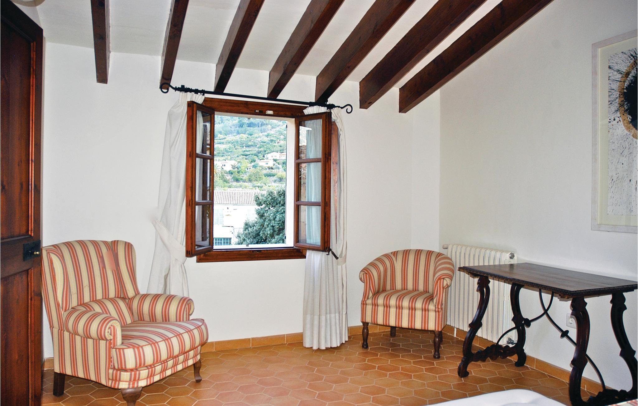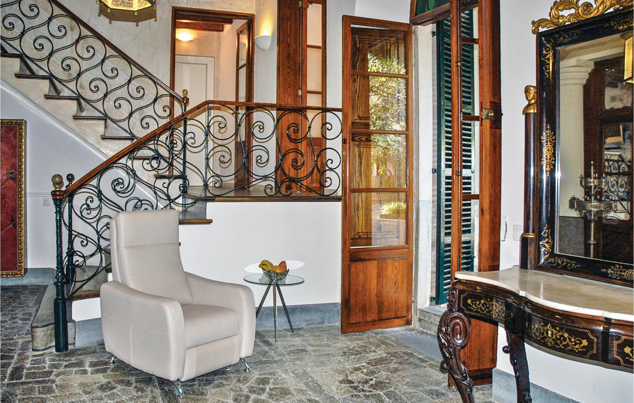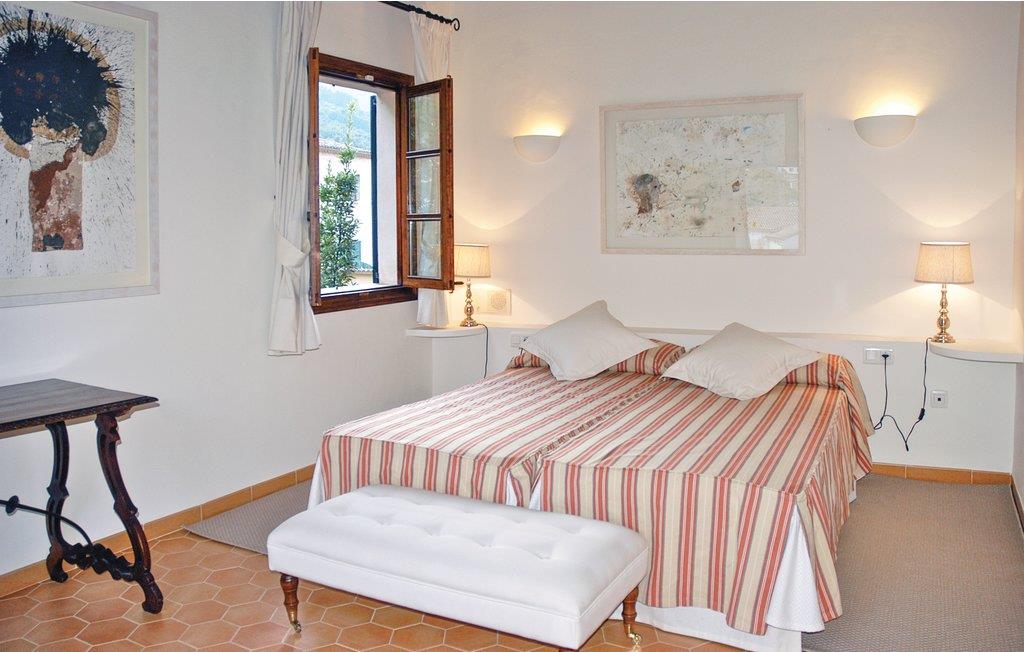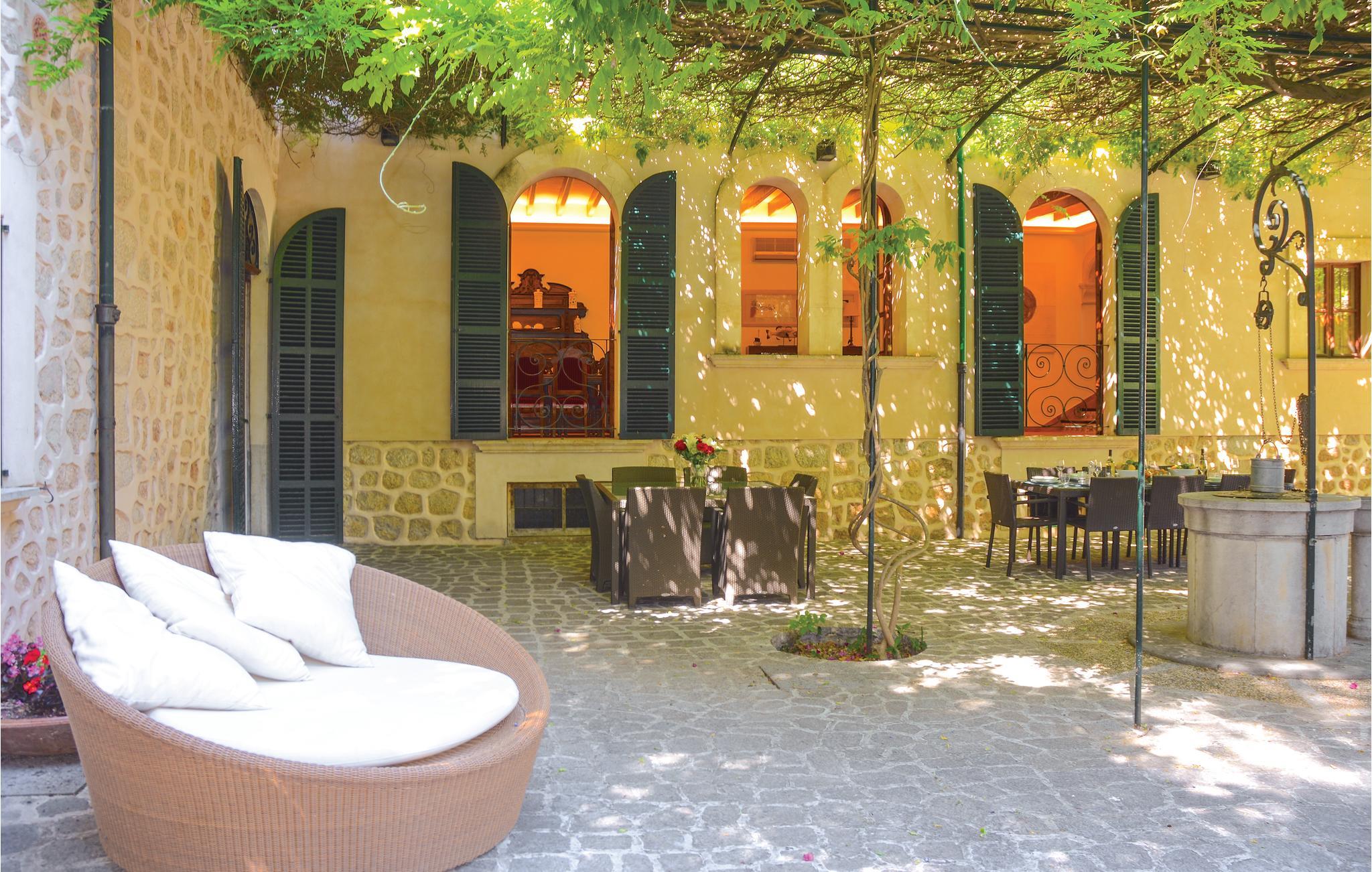 Die Superlative der Ferienhäuser – ein Kleinod für anspruchsvolle und verwöhnte Gäste. Das gepflegte Herrschaftshaus liegt wie eine erfrischende Oase im Herzen des legendären Bergdörfchens im Tal der Orangenplantagen. Ein großzügiges Reiheneckhaus mit romantischem Garten, gepflegter Poolanlage sowie einer Hausangestellten erwartet Sie für einen einzigartigen Urlaub. Die jahrhundertealte Steineiche, die gepflegten Rasenflächen sowie das lauschige Laubdach über der Sommerterrasse laden zum Entspannen ein. Obwohl Sie im Bergdörfchen wohnen, genießen Sie dennoch relativ viel Privatsphäre, da das Grundstück an eine stillgelegte Weberei grenzt. Dort haben die Mallorquinerinnen früher die landestypischen Stoffe hergestellt. Heute wartet das Gebäude auf einen zukünftigen, noch weit entfernten Umbau in ein Eisenbahn-Museum. Im Haus stehen Ihnen 7 elegante Schlafzimmer en suite zur Verfügung. Caty hilft Ihnen von Mo-Sa bei der Zubereitung des Frühstücks (deckt den Tisch, bereitet Kaffee und frischen Orangensaft zu), macht die Betten und reinigt das Haus. Mit einem kleinen Spaziergang erreichen Sie das Zentrum von Soller – dort finden Sie gemütliche Cafés, gute Restaurants und eine viel besuchte Eisdiele mit lokal hergestellten Eisspezialitäten. Eine Shopping-Tour in Palma? Steigen Sie einfach in den romantischen Zug und reisen Sie durch die traumhafte Landschaft in die Inselhauptstadt. Die wunderschöne Bucht von Puerto Soller (4 km) erreichen Sie in ein paar Minuten per Auto oder mit der antiken Straßenbahn – ein wahres Erlebnis. In der Bucht von Soller können Sie das Strandleben genießen, in einem der bekannten Fischrestaurants essen oder an der beliebten Strandpromenade flanieren. Durch die praktische Tunnelverbindung kann Palma in nur 20 Minuten erreicht werden. In der Nähe des Pools steht den Gästen auch ein praktisches Garten-WC zur Verfügung. Strom inklusive. Gruppen (ausgenommen Familien und Pärchen ü30) auf Anfrage und mit Spezialkaution.
