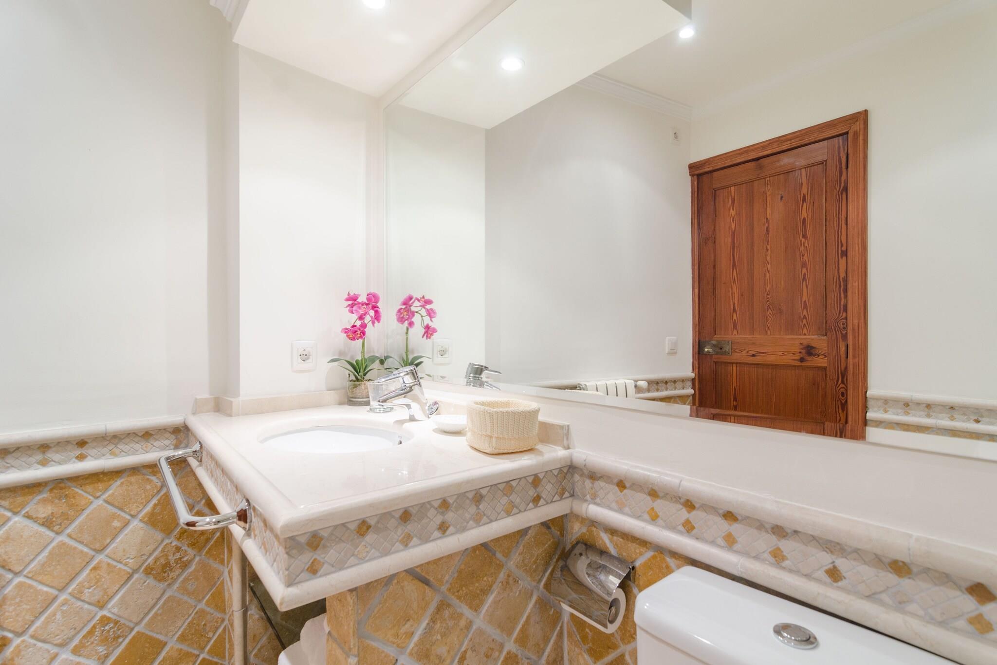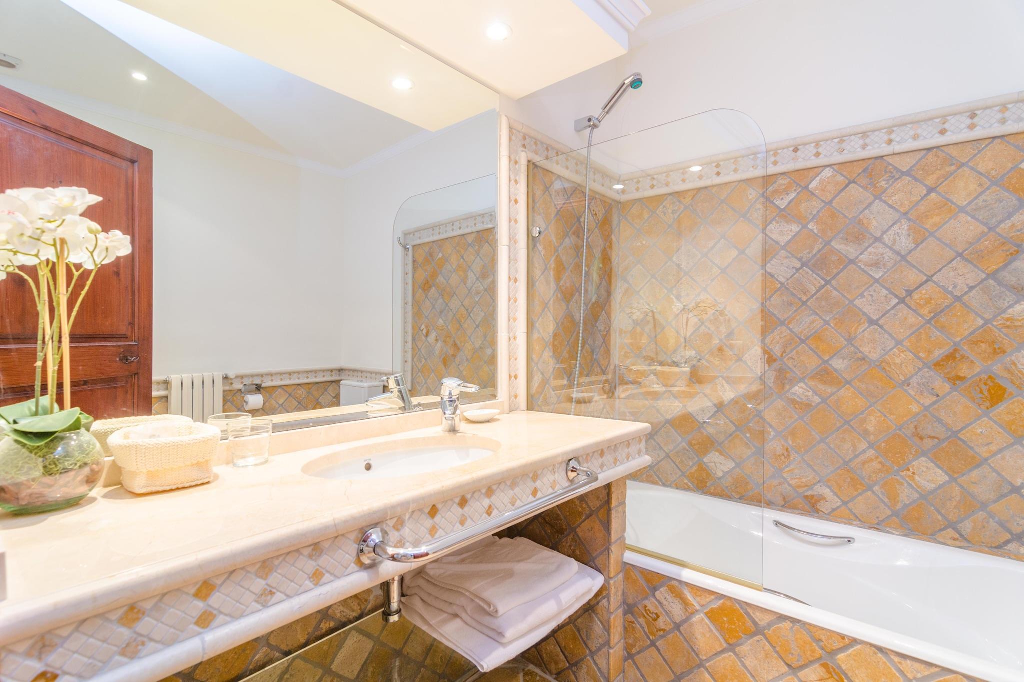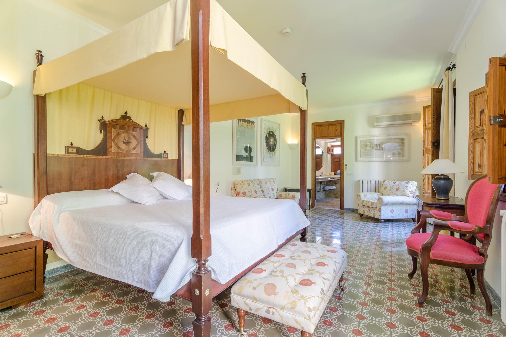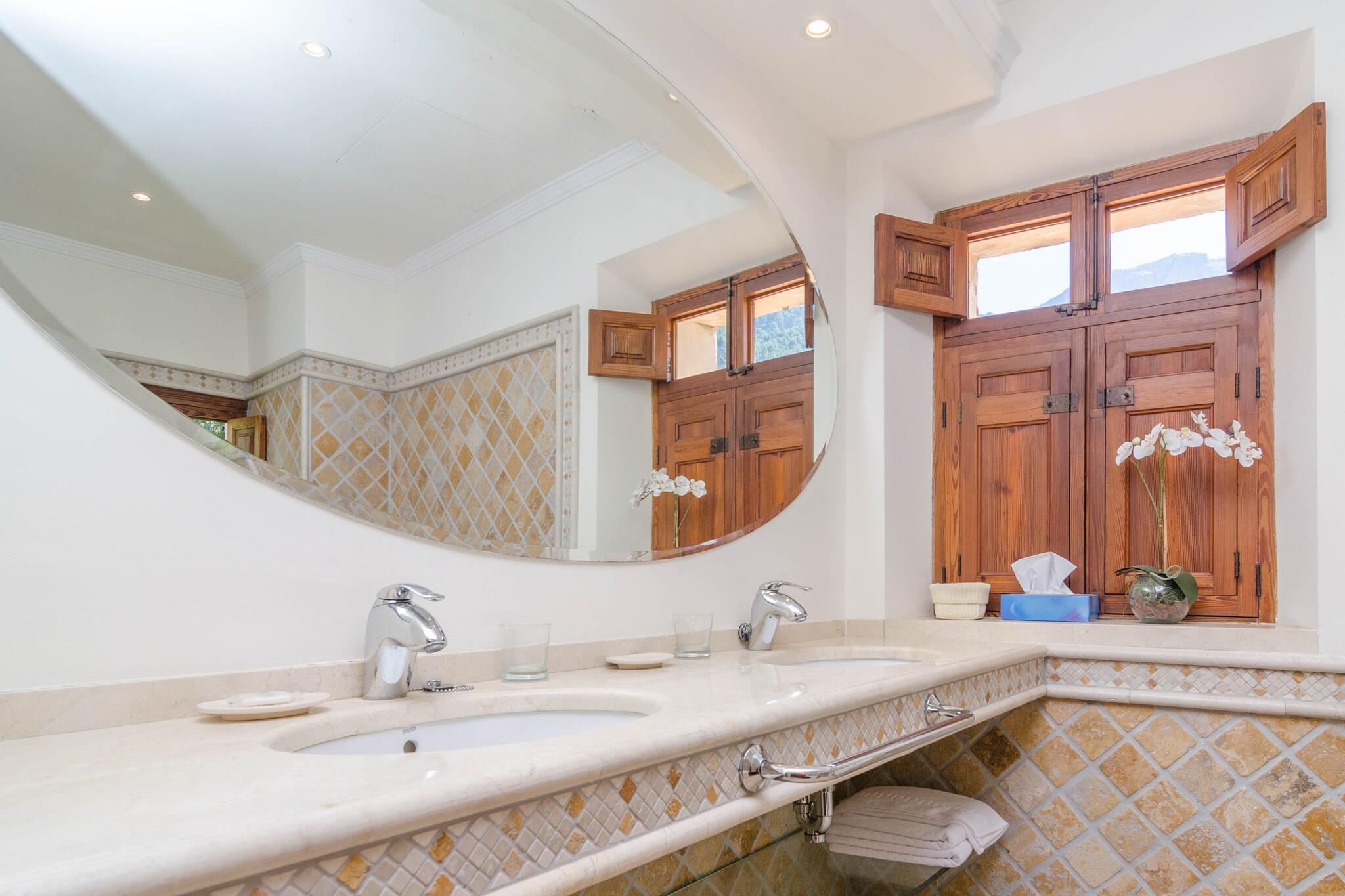 Dieses große einmalige Herrenhaus besteht aus zwei Gebäuden mit einer traumhaften Aussenanlage, einem Pool von 9 x 4 m und einer Tiefe von 1,20 bis 1,80, mit gechlortem Wasser, umgeben von weitläufigen Rasenflächen und verschiedenen Terrassen, wo Sie entweder bei einem Kaffee entspannen können, einfach das Lesen geniessen können mit einem schönen Buch oder der Musik fröhnen, all das ist stellt ein reines Vergnügen dar. Hier werden Ihre Abende zu einem unvergesslichen Erlebnis begleitet von einem leckeren Barbecue. Das große Haus verteilt seine Zimmer auf drei Etagen, darunter ein schönes Wohnzimmer mit Sat-TV, einem großen Speisesaal mit Platz bis zu 18 Personen, einer Industrieküche mit einem Gasherd mit allen notwendigen Geräten und sieben Schlafzimmern mit jeweils eigenem Bad mit Badewanne. Fast alle Schlafzimmer verfügen über ein Doppelbett, nur eines mit zwei Einzelbetten und einem Kleiderschrank. Klimaanlage und Zentralheizung im ganzen Haus vorhanden. Drei von ihnen befinden sich in der ersten Etage, drei in der zweiten Etage und das Siebte in der dritten Etage. Es gibt einen Waschraum mit Waschmaschine, Trockner, Bügeleisen und Bügelbrett. Für die kleinsten der Familie, können wir bis zu zwei Kinderbetten und zwei Kinderhochstühle kostenfrei anbieten. Dieser Traum befindet sich im Herzen von Sóller, einem kleinen Dorf in der Sierra de Tramuntana mit allen Annehmlichkeiten einer kleinen Stadt. Die bedeutendsten Gebäude der Stadt ist die Kirche von Sant Bartomeu, deren Anfänge auf 1236 zurück gehen. In Sóller heute finden Sie eine Vielzahl von Restaurants, Cafés und Supermärkten. Tram oder Bus befördern Sie zum Port de Sóller und seinem wunderschönen Sandstrand. Rund um Soller bieten sich Ihnen viele schöne Routen und Ausflüge; der wohl spektakulärste ist die Fahrt mit dem alten Holzzug nach Palma, der Inselhauptstadt, durch wunderschöne Landschaft und authentische Dörfer. Das Tramuntana Gebirge birgt meist felsige Buchten wie Cala Deià, Llucalcari oder Port des Canonge. Hinweis: Diese Finca wird nicht an Kunden unter 20 Jahren vermietet, ausgenommen selbstverständlich Kinder, die in Begleitung Ihrer Eltern reisen.Ausweiskopien zur Vorlage bei der Anmietung ist Pflicht. Zimmerservice von Montag bis Freitag steht zur Verfügung. Bitte beachten Sie, dass das Zisternenwasser zum Verzehr ungeeignet ist. Das Nebengebäude ist nicht verfügbar. Hinweis: Diese Unterkunft richtet sich an Familien und Gäste über 20 Jahre, die einen ruhigen Aufenthalt suchen. Buchungen für Partys oder Feiern werden nicht akzeptiert. Eine Kopie des Ausweisdokuments aller Gäste ist erforderlich, um die Reservierung zu bestätigen. Eventuelle Nebenkosten müssen beim Anbieter nachgefragt werden. Haustiere sind verboten. Partys oder ähnliche Veranstaltungen sind nicht gestattet. Es gibt Freiluftparkplätze für 3 Autos. Entfernungen Strand: 13.3 km - Cala Deia Flughafen: 34.7 km - Son Sant Joan Golfplatz: 18 km - Son Termens Ortsmitte: 0.4 km - Soller Bahnhof: 0.4 km - Soller Bushaltestelle: 0.4 km - Ctra. de Desviament, Soller Fähre: 40 km - Port de Palma Krankenhaus: 34 km - Son Espases Touristen Lizenz: TI/48Einheitsregister: ESFCTU00000702800010761400000000000000000000000TI/488Bei der Anreise muss die Ecotasa (Touristensteuer der Balearen) bar bezahlt werden. Der zu zahlende Betrag beträgt zwischen 0.55EURO pro Nacht und Gast in der Nebensaison und 2.2EURO pro Nacht und Gast in der Hochsaison. Ab dem 9. Tag reduziert sich die Steuer um die Hälfte. Personen unter 16 Jahren sind davon ausgenommen. Stromverbrauch (Jan - Dezember): 0.26 EUR/Kw (obligatorisch)