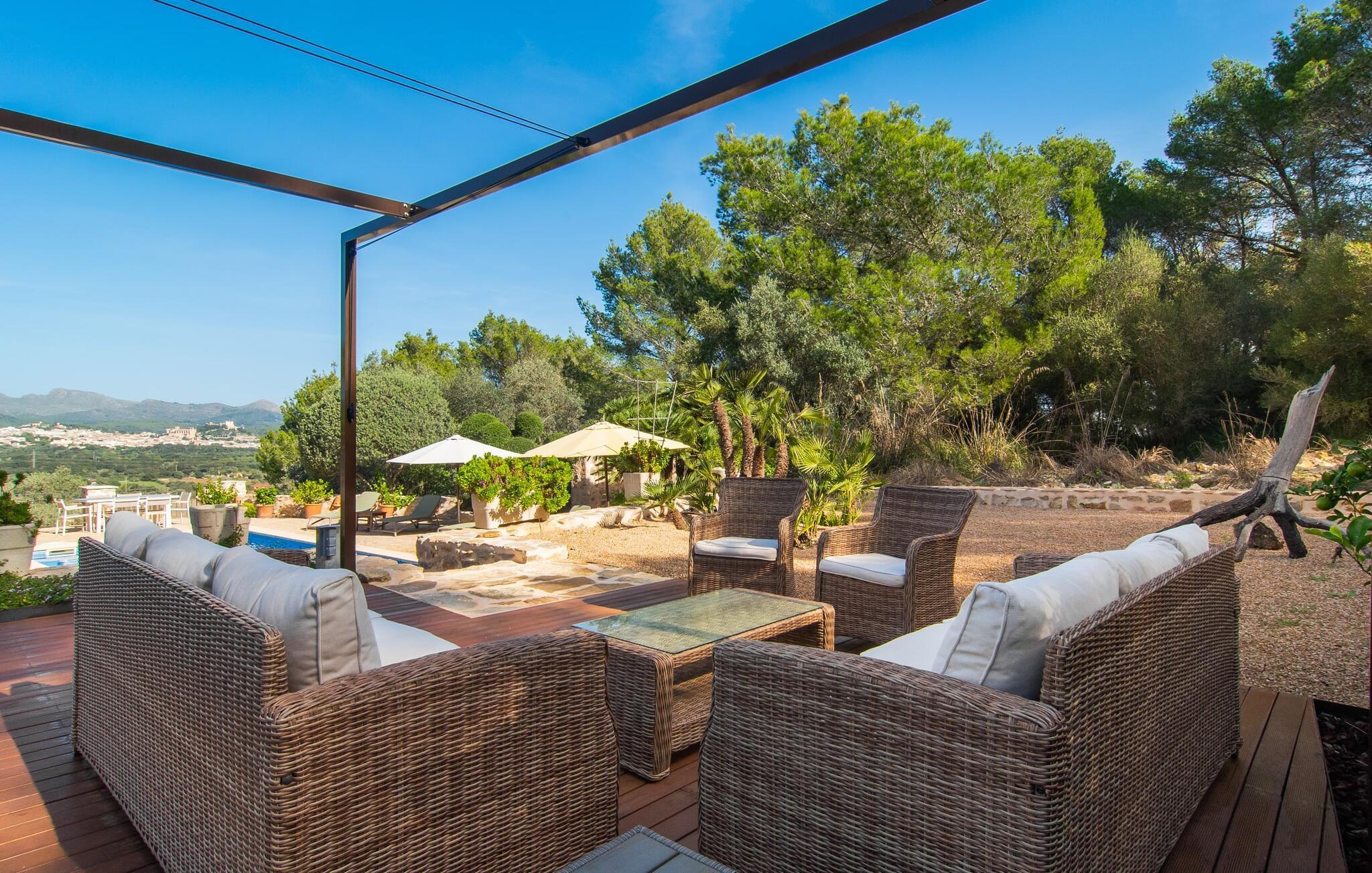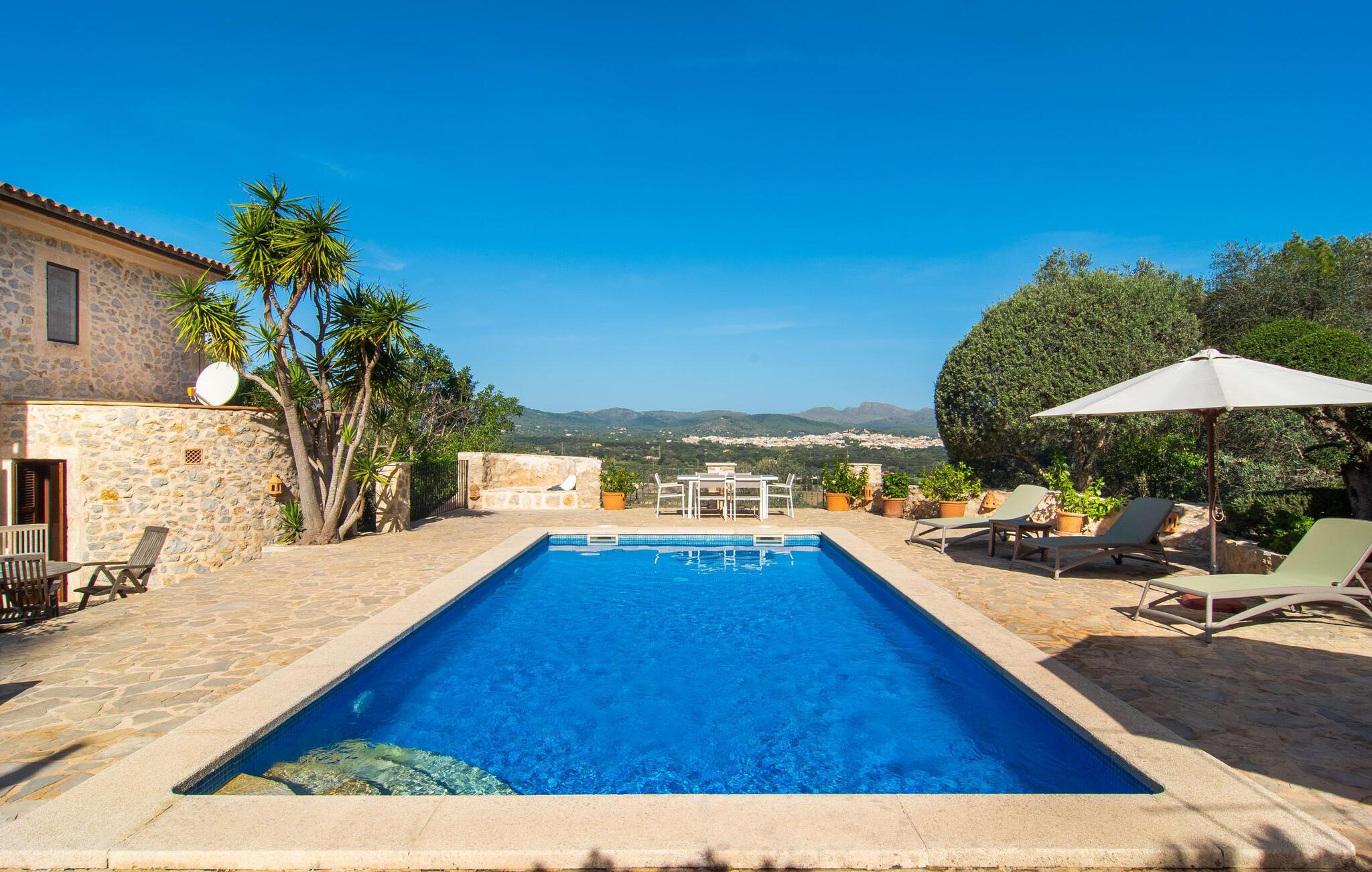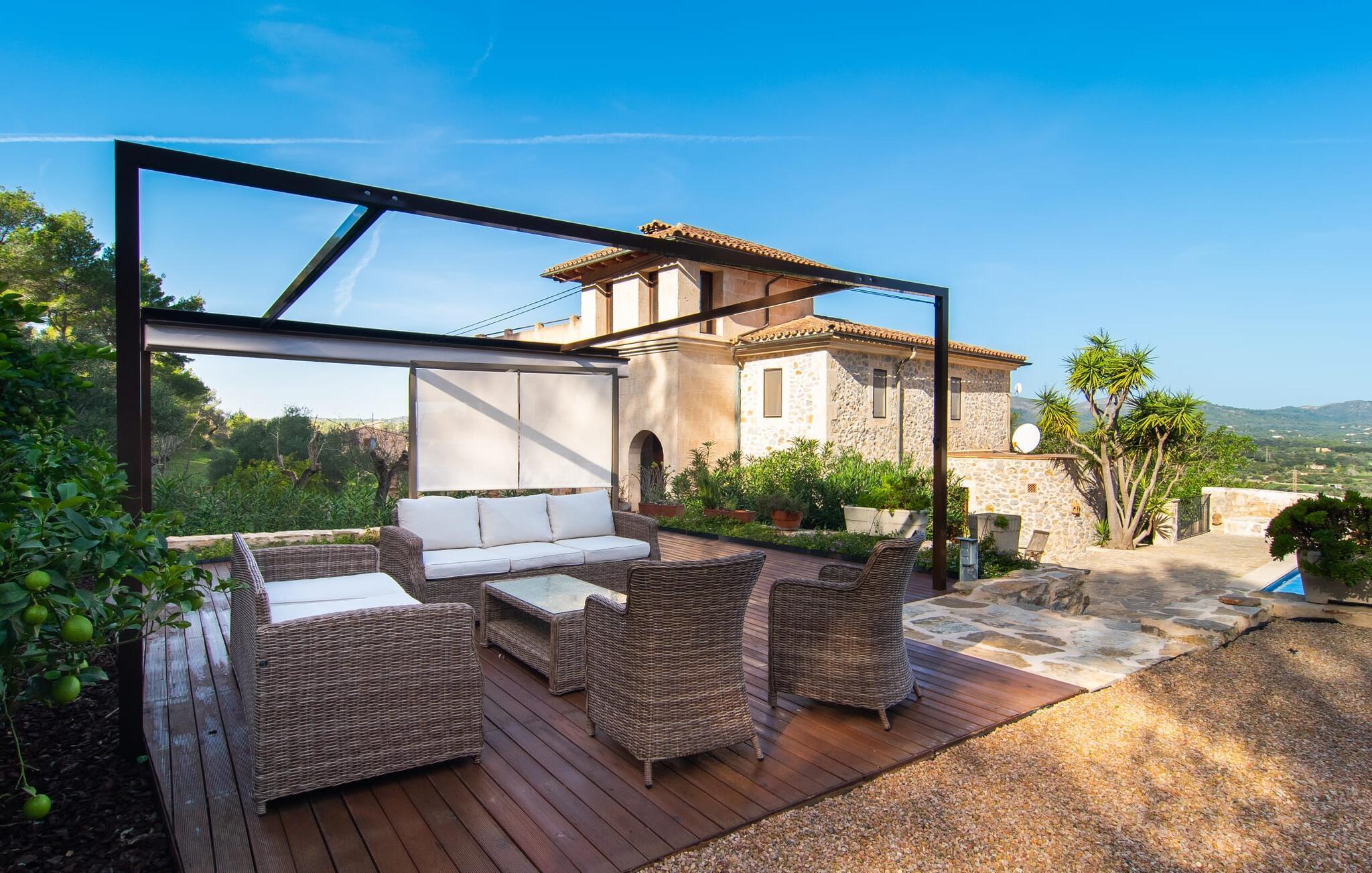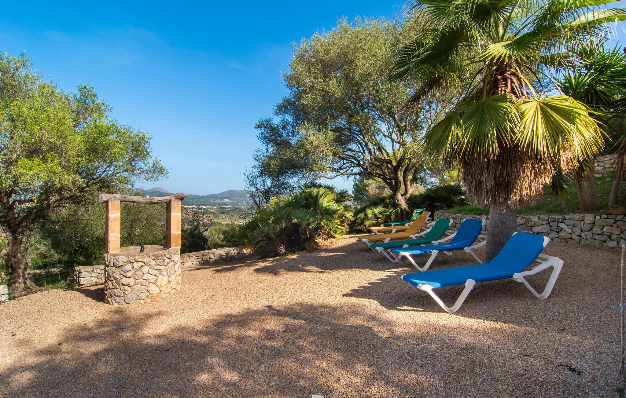 In herrlicher Alleinlage bei Artà heißt die Finca „S'Estelrica“ ihre Gäste willkommen, in der Sie in absoluter Privatsphäre eine rundum erholsame Zeit verbringen können. Mit mediterranem Flair empfängt Sie das Anwesen, wenn Sie durch eine Allee von Oleanderbüschen auf das Haus zufahren. Das umliegende Areal ist angenehm naturbelassen, und der alte Baumbestand mit Mandel-, Oliven- und Feigenbäumen verleiht der Umgebung ein typisch mallorquinisches Flair. Auf der offenen Terrasse, die das Haus umgibt, finden sich viele schöne Plätze zum Verweilen und Genießen. Vor dem Wohnzimmer und der für Hobbyköche hervorragend ausgestatteten Küche befindet sich ein überdachter Terrassenbereich. Der gepflegte Pool variiert in seiner Tiefe zwischen 1,20?m und 2?m und verfügt über eine Gegenstromanlage. Rundherum kann man sich sowohl in der Sonne als auch im Schatten von Bäumen und Sonnenschirmen den schönsten Platz zum Relaxen suchen, die mediterrane Stimmung auf sich wirken lassen und vor allem den herrlichen Ausblick auf Artà genießen. Die gemauerte Außendusche ist neben dem blau gekachelten Pool ein besonderer Blickfang in diesem Bereich.
