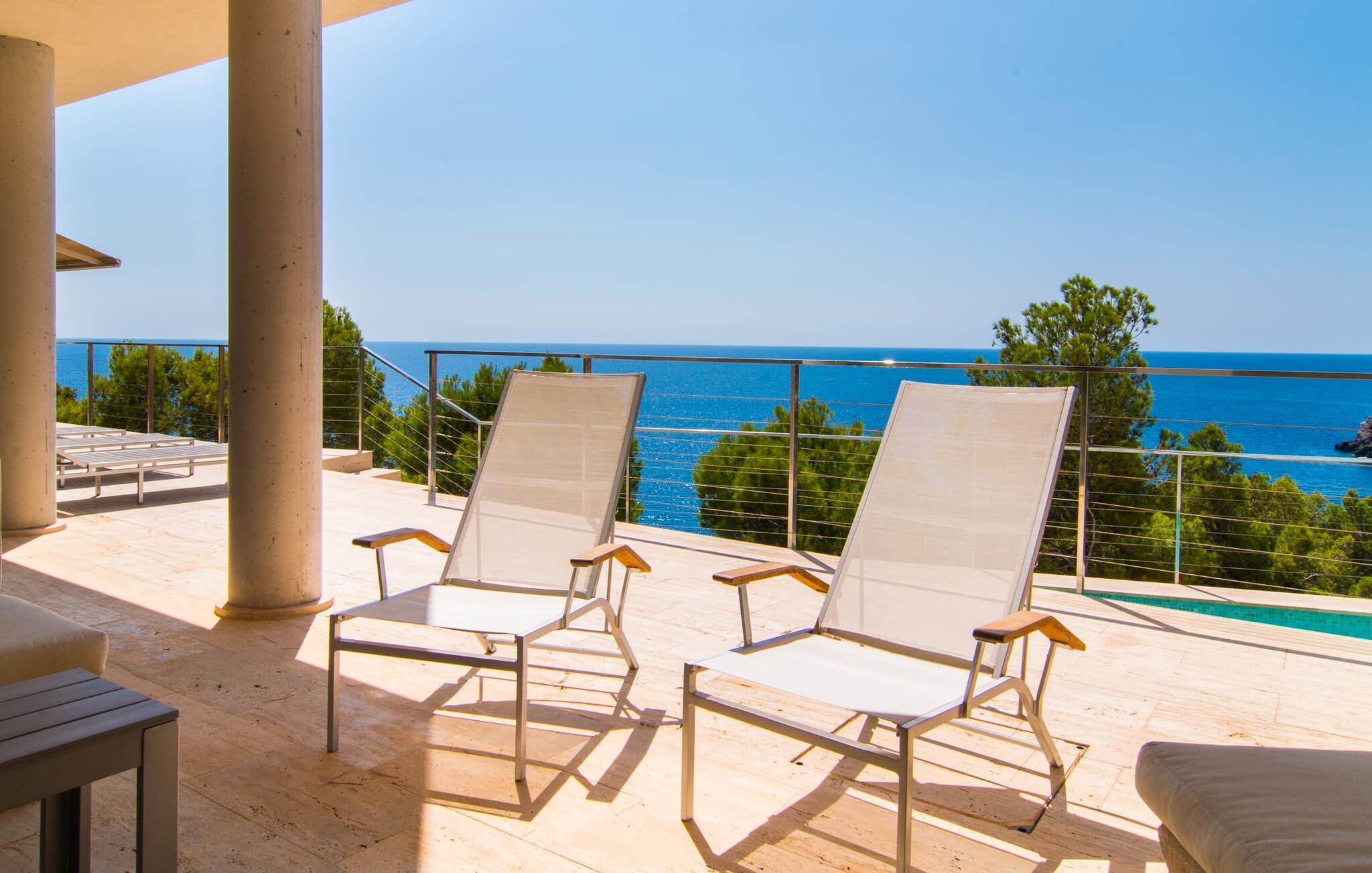 Dank ihrer majestätischen Hanglage bietet die moderne Ferienvilla „S'Estoneta“ einen atemberaubenden Blick über die Ostküste Mallorcas bei Canyamel. Die großzügige Sonnenterrasse mit einladendem Pool, einem luftigen Außenessbereich mit Grill und einer überdachten Chill-out-Lounge ist über die gesamte Länge dem Meer zugewandt. Hier gibt es ausreichend Platz für eine Gruppe von bis zu 10 Urlaubern, um den ganzen Tag entspannt in der frischen und salzigen Brise zu verbringen. Frühaufsteher können entspannt in den Tag starten und wunderschöne Sonnenaufgänge genießen. Tagsüber lädt die Terrasse zum stundenlangen Sonnenbaden ein. Und das Schöne daran: Viel Licht durchflutet auch das Innere dieser exklusiven Villa auf Mallorca.