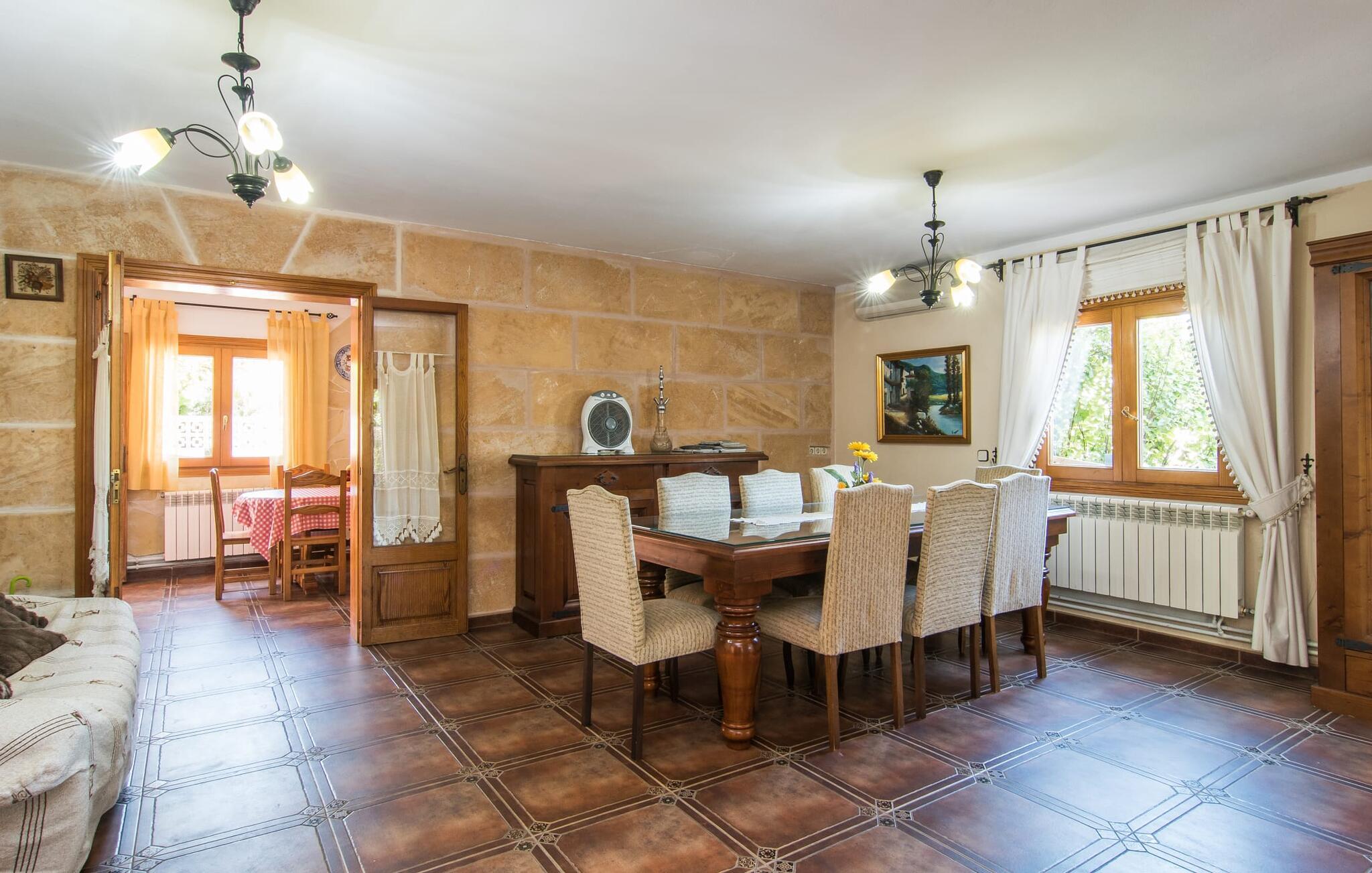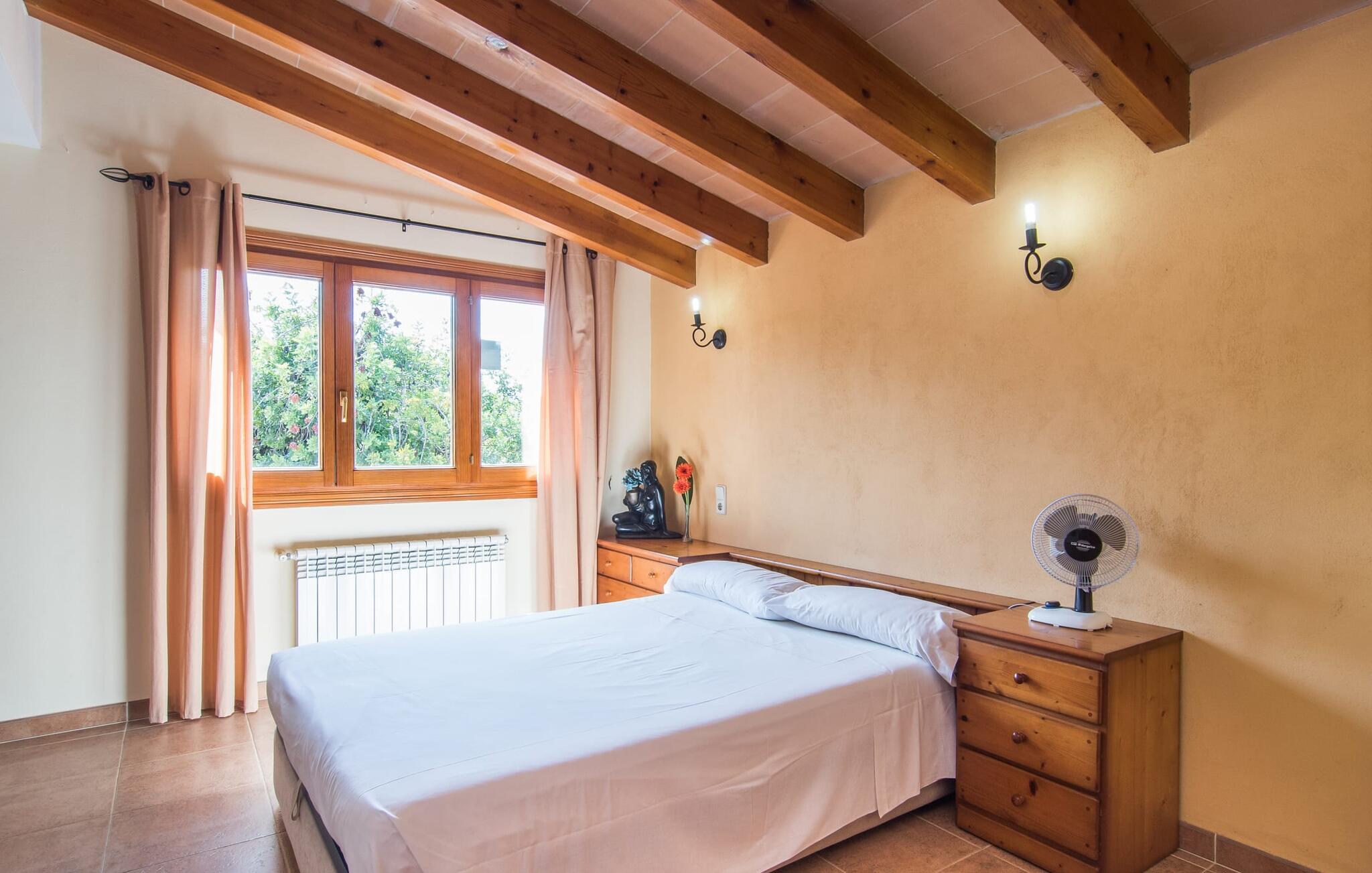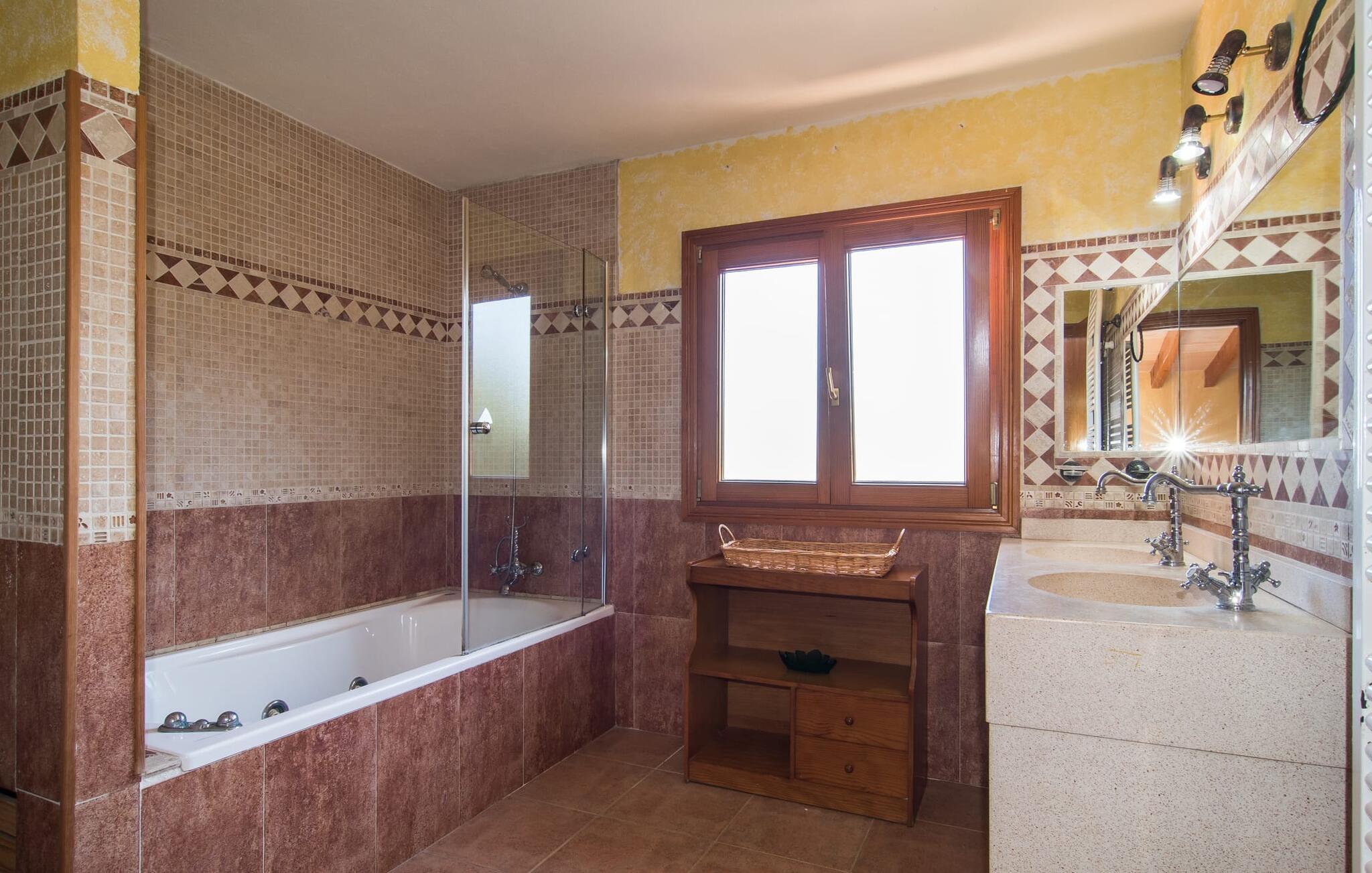 Im Inneren Ihres Ferienhauses erwartet Sie ein gelungener, für Mallorca typischer Stilmix. Rustikale Elemente wie Natursteinwände, warmes, dunkelbraunes Holz und Fliesenböden werden im „S’Hort de Cal Rei“ mit hellen Farben, modernen und traditionellen Möbeln und sorgfältig ausgewählten, individuellen Wohnaccessoires kombiniert, sodass eine gemütliche, einladende Atmosphäre entsteht Überall im Haus entsteht Wohlfühlatmosphäre. Im Erdgeschoss befinden sich neben dem Eingangsbereich ein halboffener Wohn- und Essbereich, ein modernes Badezimmer und die Küche, die weiteren Platz zum gemeinsamen Sitzen und Essen bietet. Alle angenehm dezent eingerichteten Schlafzimmer und zwei weitere Badezimmer, eines davon en Suite, befinden sich im Obergeschoss. Stadt- und strandnah: Die Villa „S'Hort d Cal Rei“ in Cala Ratjada ist so traumhaft gelegen. Das Ferienhaus für bis zu sieben Personen liegt in einer teilweise akustisch zu hörenden Wohnstraße am Ortsrand – und verfügt neben verschiedenen Terrassenbereichen mit einladenden Sitzgelegenheiten auch über einen eigenen, sicht- und blickgeschützten Pool verfügt über einen integrierten Whirlpool. Einkaufsmöglichkeiten sowie Restaurants und die wunderschöne Bucht mit der Platja de Son Moll liegen jeweils nur wenige hundert Meter von Ihrem Ferienhaus entfernt.