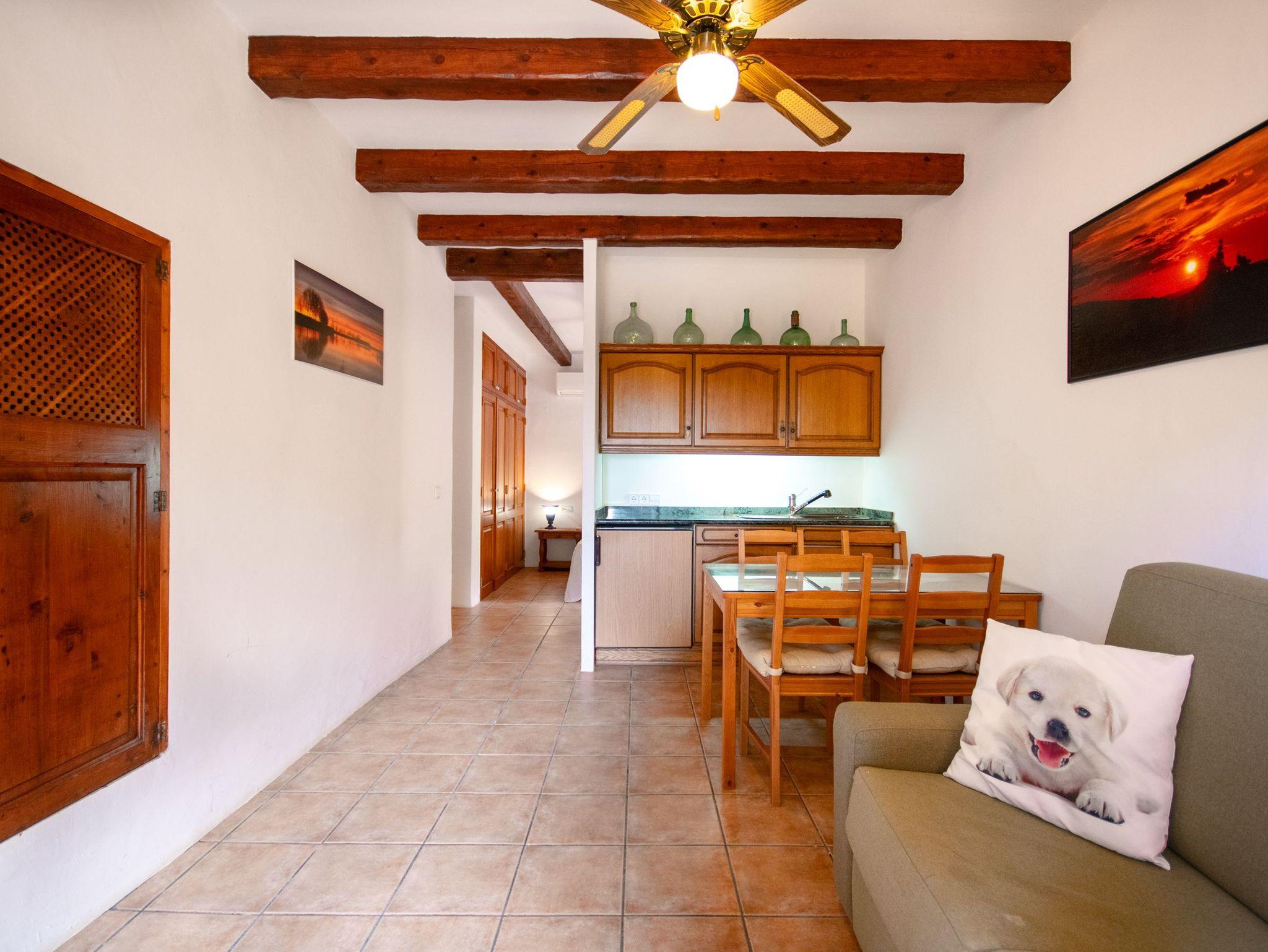 Das 40 qm große Apartment bietet Ihnen 2 Schlafzimmer (das 2. Schlafzimmer für die dritte und vierte Person befindet sich ca. 50m vom Apartment entfernt, direkt hinter dem Poolhaus) ein Badezimmer, ein Wohnbereich mit Küchenzeile und ein Schlafsofa. Ab 2020 ist das Wohnzimmer klimatisert.