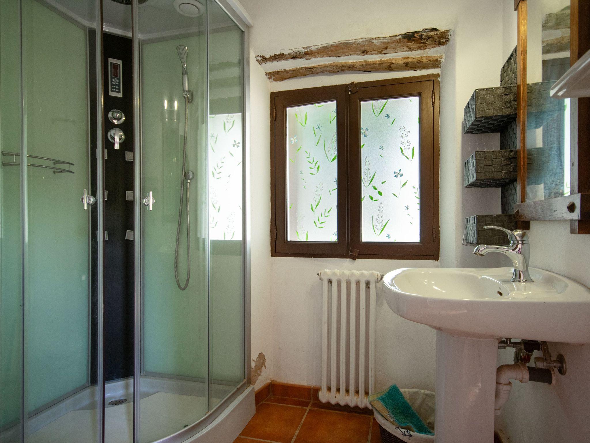 Das zweite Schlafzimmer mit Bad en Suite befindet sich nicht im sleben Gebäude, sondern hinter dem Poolhaus.