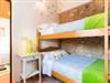 Im Inneren des Wohnraums steht der Komfort mit hellen Tönen und farbenfrohen Akzenten im Vordergrund. Das großzügige Wohn-/Esszimmer dient als multifunktionaler Bereich für Entspannung, Unterhaltung und Mahlzeiten. Angrenzend befindet sich eine voll ausgestattete Küche mit modernen Geräten, darunter ein Holzofen für kühlere Abende und direkter Zugang zum Essbereich im Freien. Die Villa verfügt über zwei Doppelzimmer, eines davon mit Etagenbett, und ein stilvolles Badezimmer mit hochwertiger Ausstattung, die allen Gästen einen komfortablen Aufenthalt garantieren.