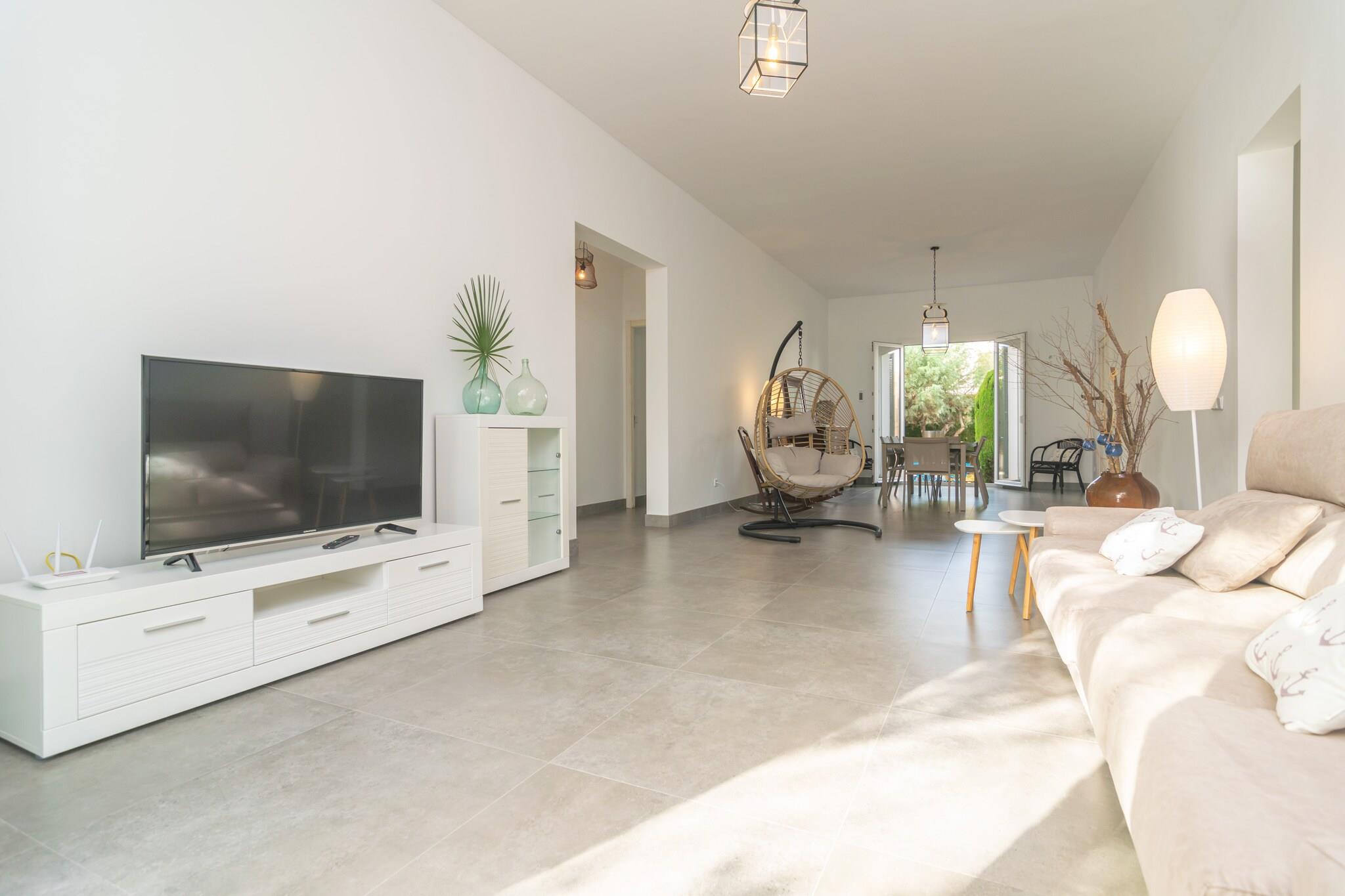 Wohnzimmer, Küche(Kochherd, Kaffeemaschine, Backofen), Schlafzimmer(2x Einzelbett), Schlafzimmer(Einzelbett, Einzelbett), Schlafzimmer(Doppelbett), Badezimmer, Badezimmer, Mikrowelle, Spülmaschine, Kühl-/Gefrierkombination, Dusche, Dusche, Waschbecken, Waschbecken, Toilette, Toilette, Klimaanlage, Klimaanlage, Klimaanlage, Garten, Gartenmöbel, Grill, Kinderbett, Hochstuhl