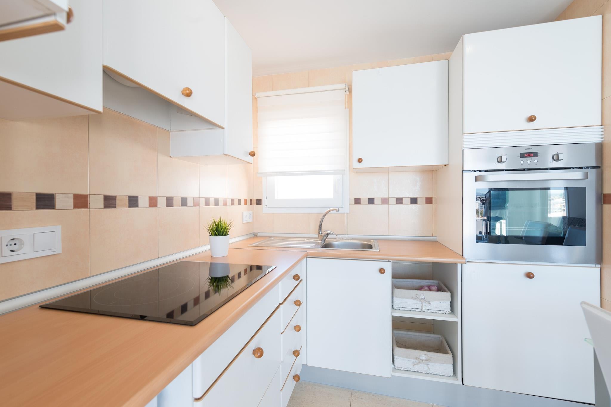Mit einem atemberaubenden Blick auf den Strand von S'Illot und das herrliche Meer wird die möblierte Terrasse Ihr Lieblingsplatz während des Urlaubs. Gleich morgends decken Sie den Tisch draußen um die herrliche Aussicht zu genießen. Nachmittags gönnen Sie sich eine Pause und relaxen auf den gemütlichen Gartensofas. Und zwischendurch freuen Sie sich auf vergnügliche Stunden am Strand und schwimmen im blauen Meer. Die Wohnung liegt im 7ten Stock eines Apartmenthauses mit Aufzug und überzeugt mit moderner Einrichtung. Sie betreten den hellen Wohn - Essraum mit offener Küche und fühlen sich gleich wie zu Hause. Ein bequemes Sofa lädt Sie ein sich auszuruhen oder einen Film im Smart TV zu schauen. In der Küche kochen Sie auf einem Cerankochfeld und haben dafür alle wichtigen Geräte und Utensilien zur Verfügung. Zum Essen decken Sie hier den Tisch. Die verdiente Ruhe finden Sie in einem der 2 Schlafzimmer mit je einem Doppelbett und Kleiderschrank. Das Bad der Wohnung hat eine Dusche. Natürlich gibt es auch eine Waschmaschine, Bügelbrett und Bügeleisen und wenn Sie mit einem Baby reisen wird auf Anfrage gerne ein Babybett und Hochstuhl bereit gestellt. S'Illot ist ein kleiner Küstenort in der Gemeinde von Manacor mit einem unglaublichen Sandstrand. Im Ort gibt es eine Vielzahl von Geschäften, Bars, Restaurants und alle weiteren Dienstleistungen die Sie für einen unabhängigen Urlaub brauchen. Golfspieler freuen sich auf eine Partie auf dem Golfplatz Canyamel in ca. 13,9km Entfernung. Eventuelle Nebenkosten müssen beim Anbieter nachgefragt werden. Haustiere sind verboten. Partys oder ähnliche Veranstaltungen sind nicht gestattet. Entfernungen Strand: 0.10 km - S'Illot Flughafen: 68.3 km - Son Sant Joan Golfplatz: 13.9 km - Canyamel Golf Ortsmitte: 0.100 km - S'Illot Bahnhof: 17 km - Manacor Bushaltestelle: 0.17 km - S'Illot Fähre: 49.7 km - Port d'Alcúdia Krankenhaus: 17.2 km - Hospital de Manacor Touristen Lizenz: ETVPL/14367Einheitsregister: ESFCTU00000702300110988900000000000000000ETVPL/143675Auf den Balearen gibt es eine Touristensteuer, die Ecotasa genannt wird. Diese Steuer muss vom Gast bezahlt werden. Der zu zahlende Betrag beträgt zwischen 0.55EURO pro Nacht und Gast in der Nebensaison und 2.2EURO pro Nacht und Gast in der Hochsaison. Ab dem 9. Tag reduziert sich die Steuer um die Hälfte. Personen unter 16 Jahren sind davon ausgenommen