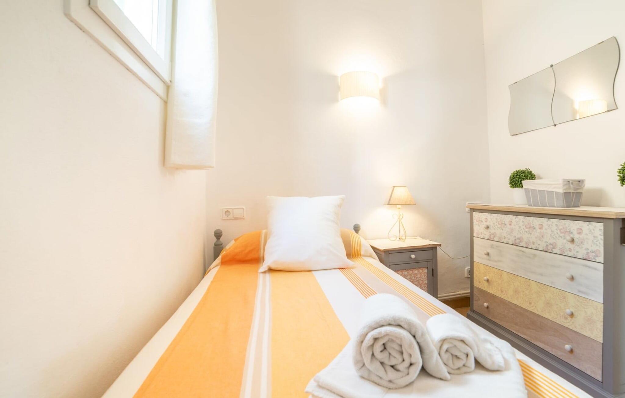Diese ehemalige Fischerwohnung, bezaubernd direkt an der Cala Santanyí gelegen, heißt "Sa Barca" und verfügt über einen privaten Zugang zur türkisfarbenen, sandigen Lagune direkt davor. Es befindet sich am Fuße eines 800 m² großen Grundstücks, das mit Pinien und Palmen bewachsen ist. Von hier aus kann man tatsächlich bis zum Sandstrand schwimmen. Bars, Restaurants und Supermärkte erreichen Sie sehr schnell zu Fuß.