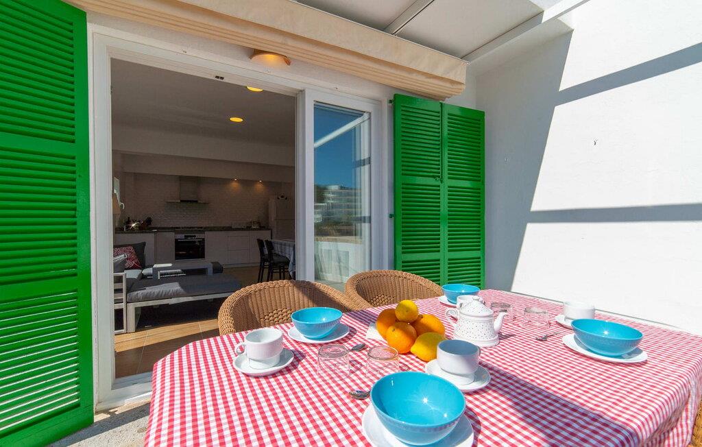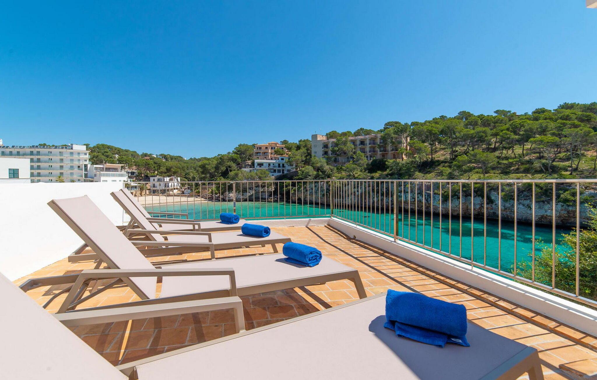Das Dach wurde in eine spektakuläre Dachterrasse verwandelt, die einen atemberaubenden Blick auf die Lagune bietet, die sich davor erstreckt. Unten führen die Terrassen direkt zum Meer, wo das kristallklare Wasser einen sandigen Meeresboden und Schwärme kleiner Fische offenbart. Schnorcheln in Cala Santanyí ist ein absolutes Muss, denn entlang der Klippen gibt es viel zu entdecken.