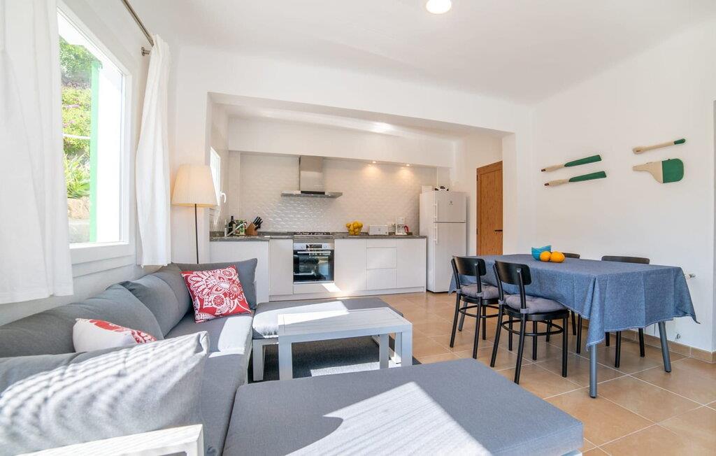 Die Villa befindet sich am Fuße eines größeren Anwesens in Hanglage, das von Pinien und Palmen umgeben ist. Über eine Treppe von der Straße oben erreichbar, gelangen Sie zunächst auf die Dachterrasse und dann weiter hinunter in das Erdgeschoss, wo sich ein gemütlicher Wohn- und Essbereich in die Küche und den Schlafbereich öffnet. Es gibt ein Badezimmer mit Dusche, WC und Waschbecken. Das dritte Schlafzimmer der Villa ist zwar klein, aber je nach Gruppe eine praktische Ergänzung. "Sa Barca" bewahrt seinen rustikalen, unprätentiösen Charme, mit einem Design, das sich nahtlos in die natürliche Landschaft einfügt. Seine unglaubliche Lage am Meer ist sein größter Schatz und bietet Ihnen einen echten mediterranen Rückzugsort.