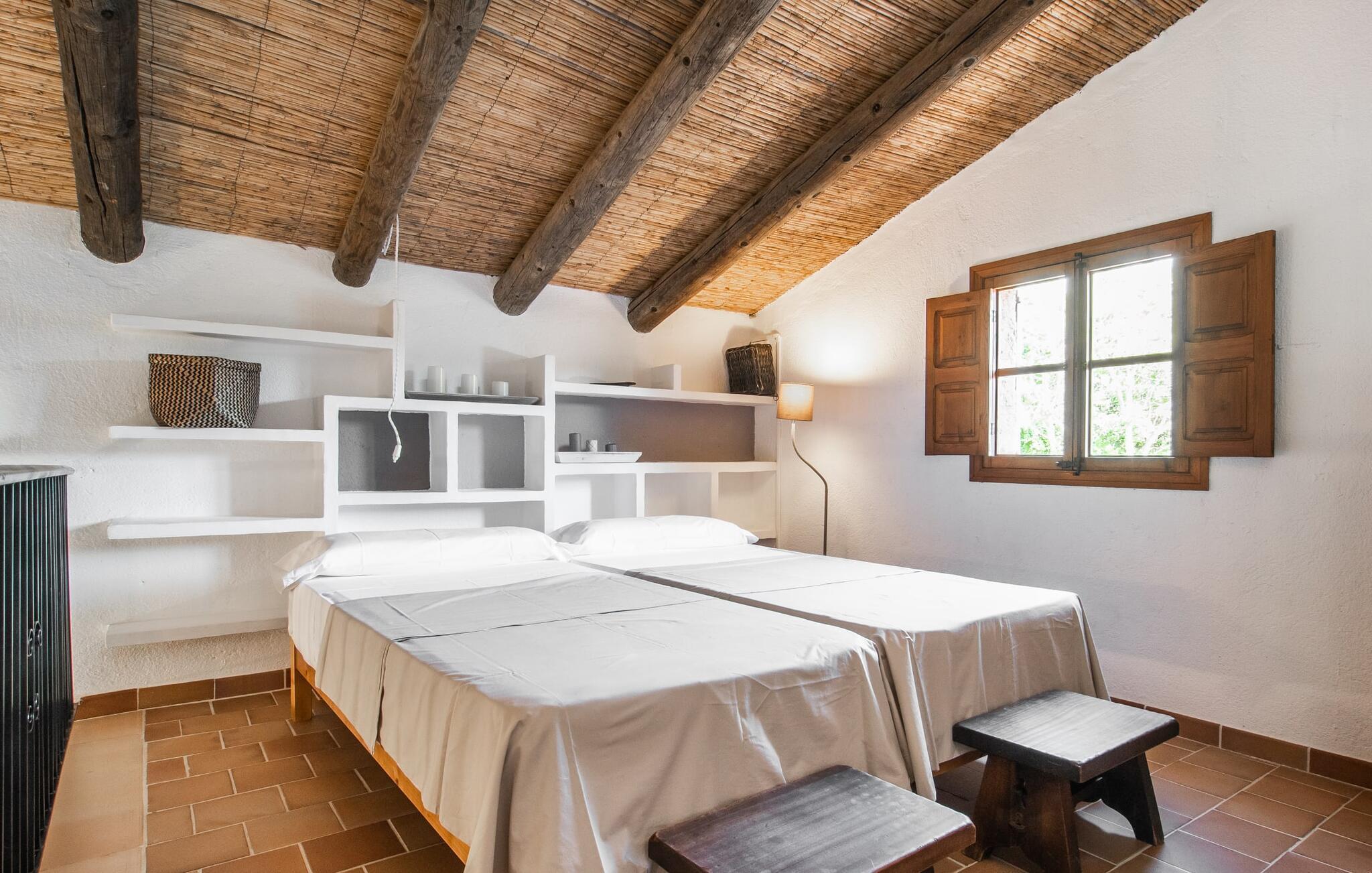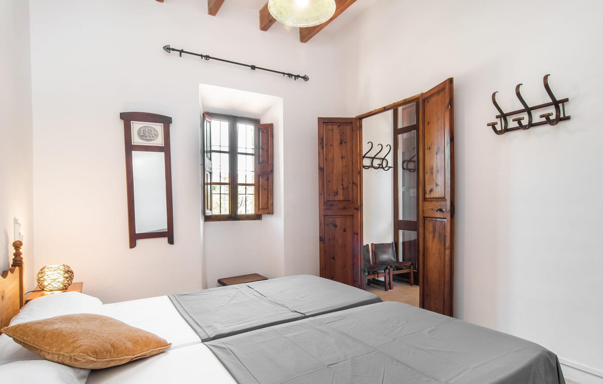 Das traditionell eingerichtete Haus verfügt über klassische mallorquinische Holzbalkendecken, helle Farbtöne an den Wänden und Natursteinelemente. In Kombination mit einigen rustikalen Möbeln entsteht ein uriges Ambiente, das zum Verweilen einlädt. Von beiden Seiten führt ein schöner Eingang zu einem Schlafzimmer. Weiter unten auf der linken Seite befindet sich die Treppe zum Obergeschoss. Wie die Badezimmer auf dieser Etage bietet auch die Küche alles, was Sie brauchen, einschließlich eines Wasserkochers und einer Filterkaffeemaschine. Interessanterweise erstreckt sich das Wohnzimmer über zwei Ebenen. Auf der unteren Ebene gibt es außerdem einen Essbereich, um drinnen eine gemeinsame Mahlzeit zu genießen. Hier ist auch der Flachbildfernseher mit Satellitenanschluss installiert. Auf den bequemen Sofas können Sie es sich nach Lust und Laune bequem machen und entspannen. Für Ihre Unterhaltung stehen Bücher, Spielzeug und ein DVD-Player zur Verfügung – obwohl Sie ohnehin wahrscheinlich nicht auf der Strecke bleiben werden – und das etwas schwache Internetsignal reicht aus, um wichtige What'sapp-Nachrichten an Ihre Lieben zu Hause zu senden. In der obersten Etage, die als separate Wohneinheit genutzt wird, befindet sich ein offenes Wohn-/Esszimmer mit angeschlossener kleiner Küche. Eine Tür zur Terrasse gibt Ihnen die Möglichkeit, direkt nach draußen zu gehen. Auf dieser Etage befinden sich zwei Schlafzimmer und ein Badezimmer. Dieser obere Teil des Hauses mit eigenem Eingang ist komplett in einem moderneren Stil eingerichtet. Die Schlafzimmer des Hauses sind individuell gestaltet und vermitteln jeweils eine heimelige Atmosphäre. Wir sind sicher, dass hier jeder seinen persönlichen Ruheplatz findet. Die Badezimmer sind funktional und geschmackvoll gestaltet. Für Ihren Komfort stehen Ihnen ein Bügeleisen und ein Haartrockner zur Verfügung. Da die Villa in zwei Wohnbereiche aufgeteilt ist, eignet sie sich ideal für mehrere Familien, die ihren Urlaub gerne gemeinsam verbringen und gleichzeitig ein gewisses Maß an Privatsphäre bewahren möchten.