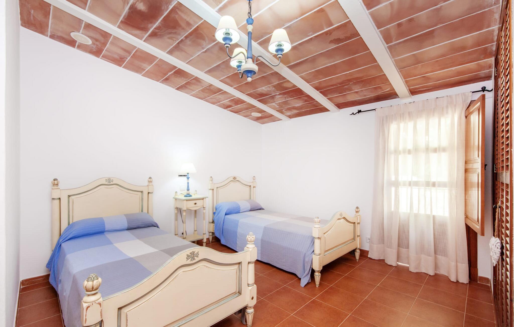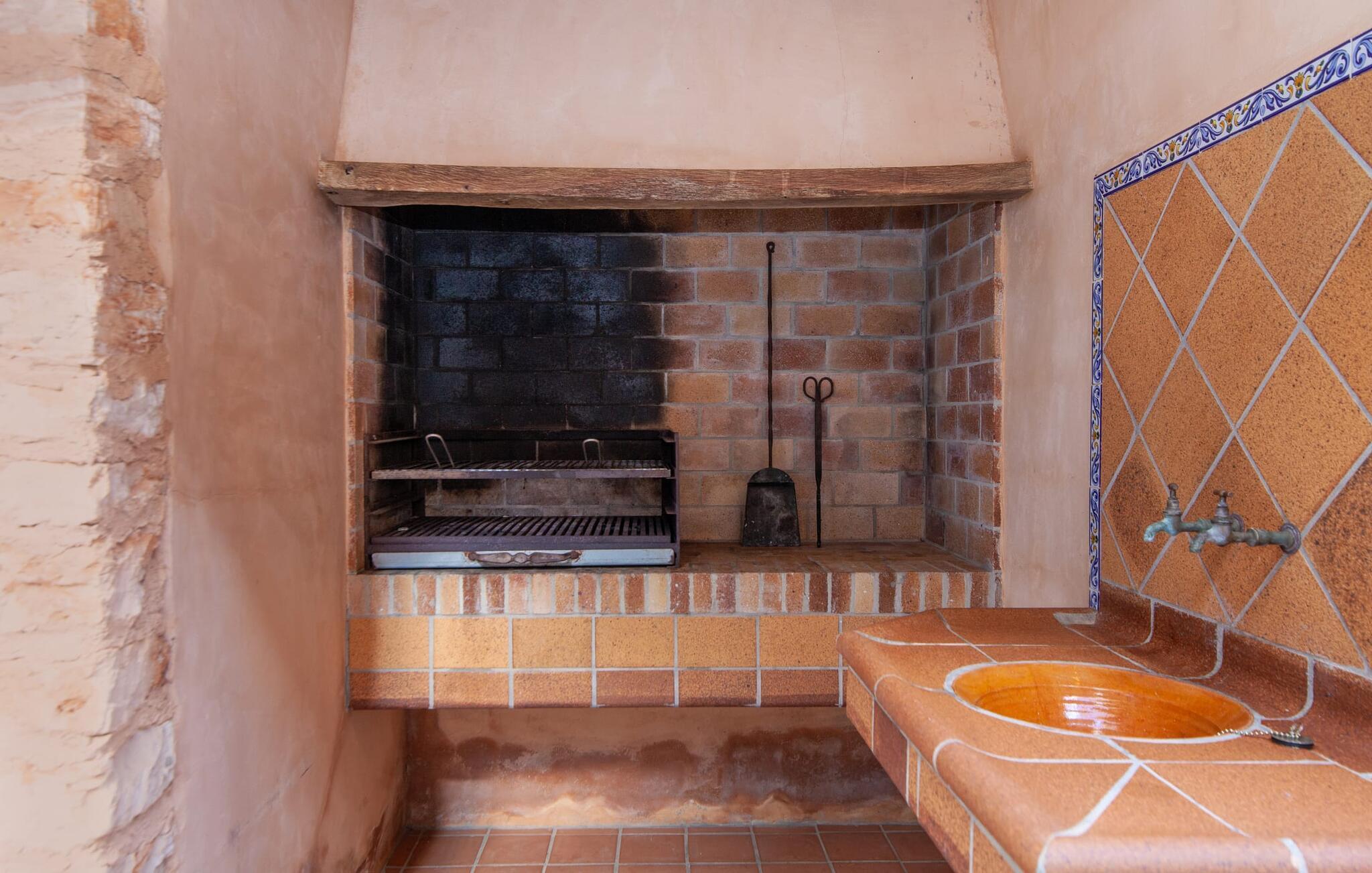 Dass diese hübsche und absolut private Finca auf Mallorca liegt, merkt man auch an der geschmackvollen Ausstattung des Hauses. Die Mischung aus teils antiker und traditioneller Einrichtung in Kombination mit modernem Landhausdesign ergibt den unverwechselbaren Stil, in dem sich unsere Urlaubsgäste einfach wohlfühlen. Übersetzt bedeutet „Sa Caseta d’Or“ so viel wie „die goldene Hütte“ – das trifft einerseits auf die Wertigkeit zu, hat aber vielleicht auch etwas mit der unglaublich tollen Lage zu tun, die man hier genießen kann ein typisch rustikales Ambiente mit modernem Landhausstil. Diese finden Sie nicht nur im gemütlichen Wohnzimmer mit Kamin, sondern auch in der voll ausgestatteten, hochmodernen Küche. Handbemalte Fliesen mit Blumenmuster sowie Terrakottaböden im gesamten Haus sorgen für eine harmonische Note. Wenn Sie mit vier Personen oder der Familie reisen, haben Sie besten Komfort mit zwei Badezimmern (eines davon im Erdgeschoss) gebucht. Die beiden klimatisierten Schlafzimmer befinden sich im Obergeschoss. Das zweite Badezimmer liegt en suite und ist von beiden Schlafzimmern aus zugänglich. Das Beste zum Schluss: Diese einzigartige Finca ist das ganze Jahr über buchbar und auch in den milden Nebensaisonmonaten ein unglaublich schöner Rückzugsort. Die Finca „Sa Caseta d’Or“ liegt inmitten der Natur in erhabener Hanglage. Umgeben von Pinien bietet Ihnen die spektakuläre Lage einen phänomenalen Blick auf das Meer und Portocolom. Durch die Nähe zur Landstraße, die sich nur bei Wind bemerkbar macht, erreicht man den Küstenort in 7 Minuten mit dem Auto quasi auf direktem Weg. Auch die umliegenden Dörfer wie S'Horta oder Felanitx laden zum Besuch und Genießen toller Wochenmärkte ein. Weiße, familienfreundliche Sandstrände wie Cala Marçal sind nur 6 km entfernt.