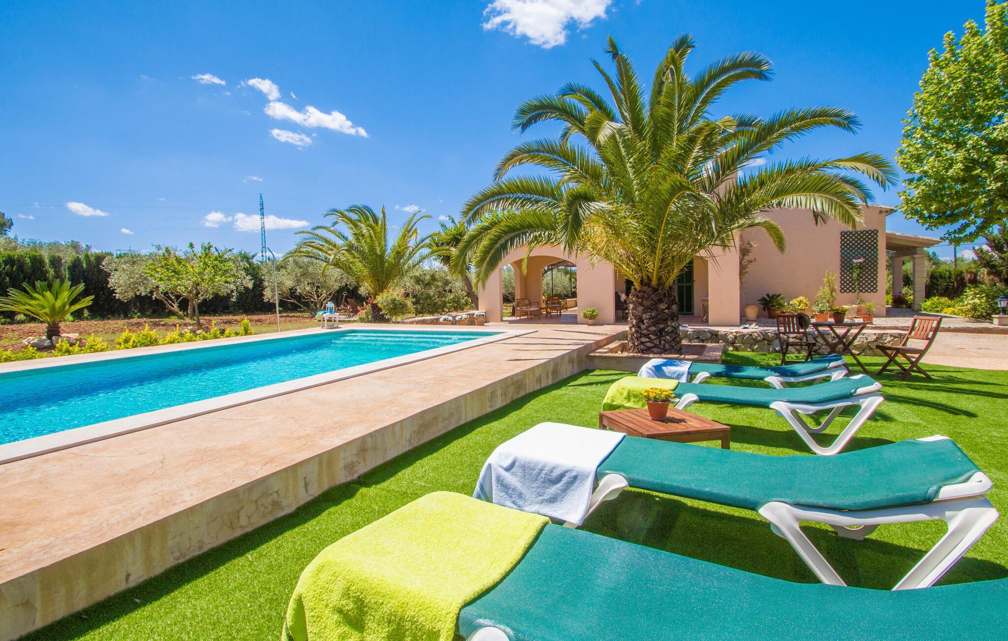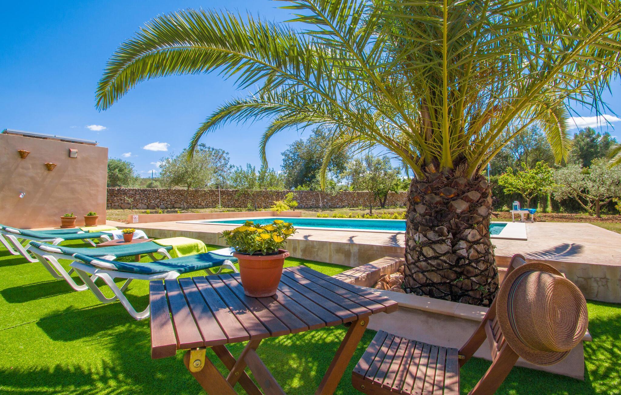 In der Villa „Sa Creueta de Son Fangos“ erwartet Sie ein Außenbereich, der Ihr Herz höher schlagen lässt: Der Pool lädt zum Verwöhnen ein, während der Garten jede Menge gemütliche Plätzchen bietet, wie zum Beispiel den entspannenden Hängesessel im Schatten von Bäumen mit Blick auf den Garten.