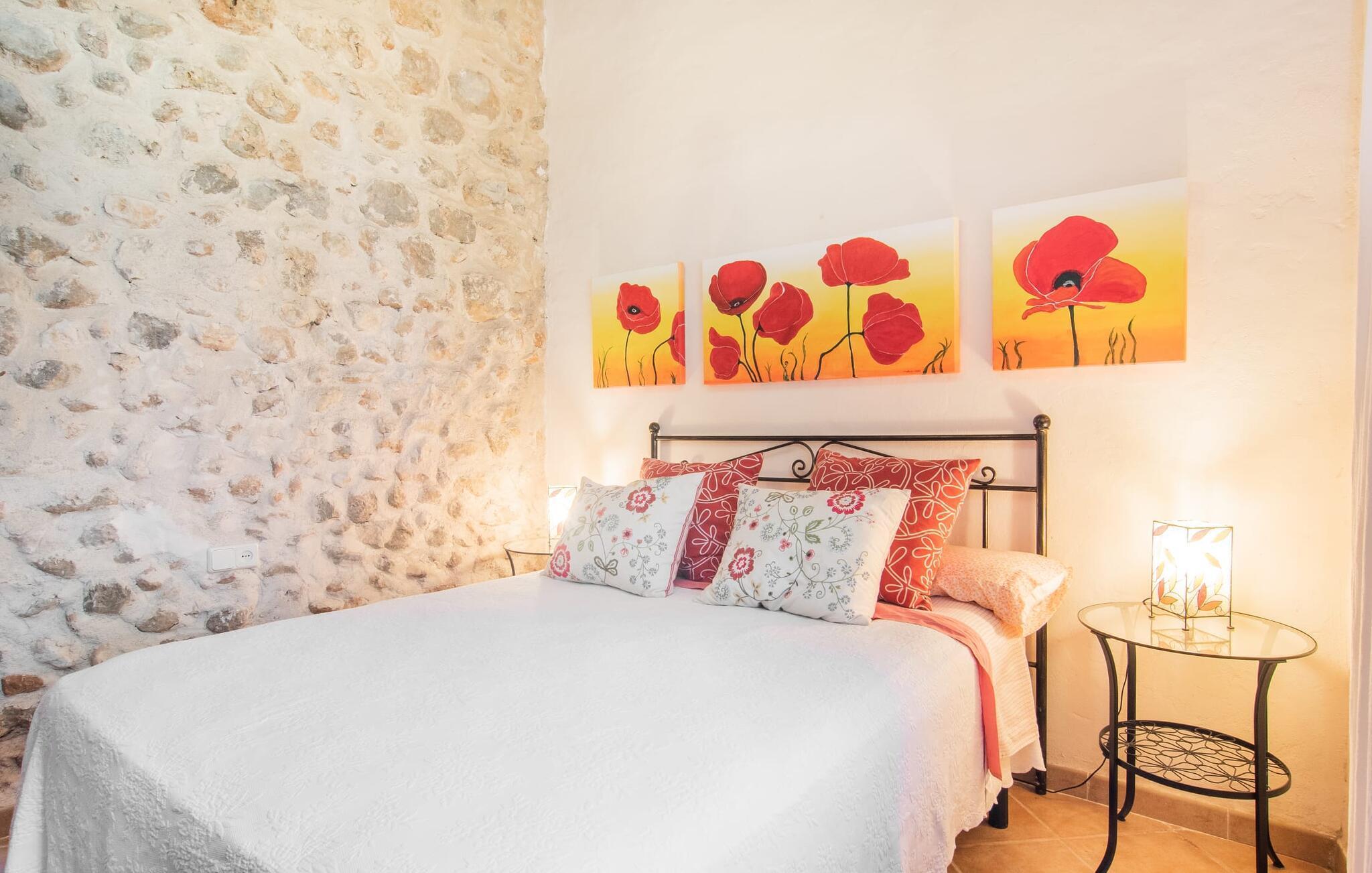 Die Terrasse führt direkt in das gemütliche Wohn- und Esszimmer mit Kamin. Terrakottafliesen, Natursteinelemente und Sichtbalkendecken umrahmen die typisch mallorquinischen Möbel und Accessoires. Es ist offensichtlich, dass die Eigentümer Wert darauf legen, den klassischen Charme eines Landhauses zu bewahren. Die rustikale Küche ist in den Raum integriert und komplett ausgestattet mit allem, was Sie für die Selbstversorgung im Urlaub benötigen. Zwei Doppelschlafzimmer, eines mit Doppelbett und eines mit zwei Einzelbetten, versprechen einen erholsamen Schlaf. Ein Duschbad komplettiert die Ausstattung dieses Bauernhauses im Norden Mallorcas. Das Bauernhaus „Sa Figuera Blanca“ empfehlen wir besonders für ein oder zwei Paare oder eine kleine Familie. Dieses sehr gemütliche Bauernhaus liegt auf einem sehr großen Grundstück gut 2 km westlich von Búger im Norden Mallorcas. Zum Einkaufen kann man einfach in den Ort fahren, der neben kleinen Supermärkten auch Bars, Restaurants etc. bietet. Die Strände des Nordens, insbesondere die in der langen Bucht von Alcúdia, erreicht man nach etwa 20 km.