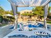 Der mit mallorquinischem Kalkstein verzierte private Pool lädt zu einem erfrischenden Bad ein, während sanfte Stufen einen einfachen Zugang ermöglichen. Gönnen Sie sich eine Unterwassermassage zum Entspannen, gefolgt von leichtem Yoga auf einer Liege an einem der vielen ruhigen Plätze rund um die Villa. Für kulinarische Genüsse sorgt die Außenküche mit Steingrill und großzügigem Essbereich, der sich perfekt für Snacks und Abendessen eignet.