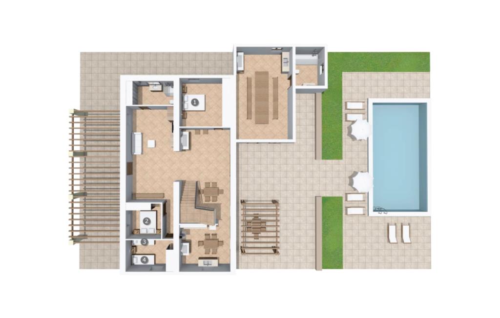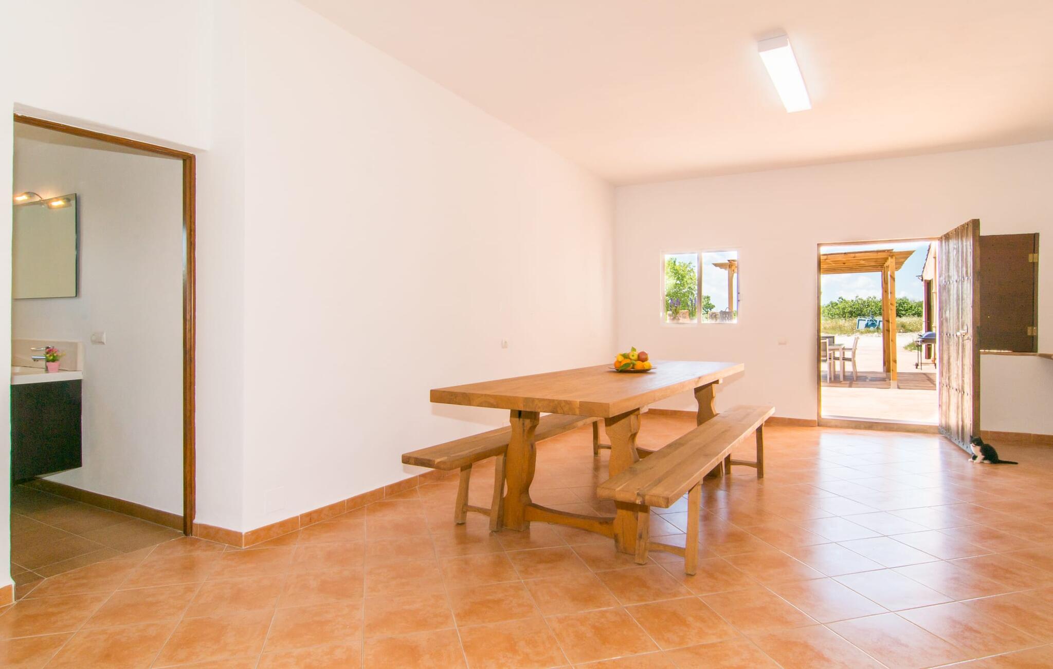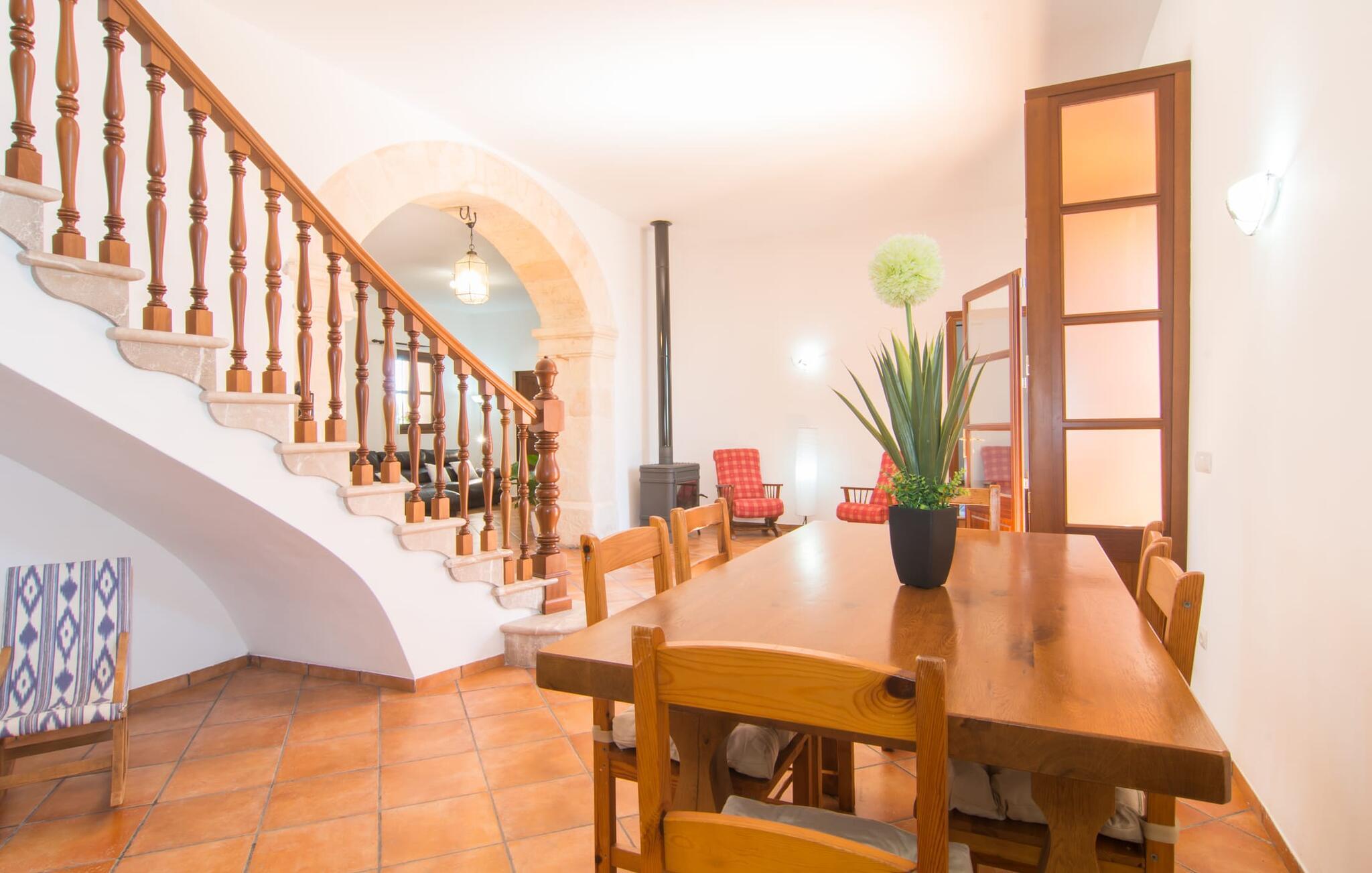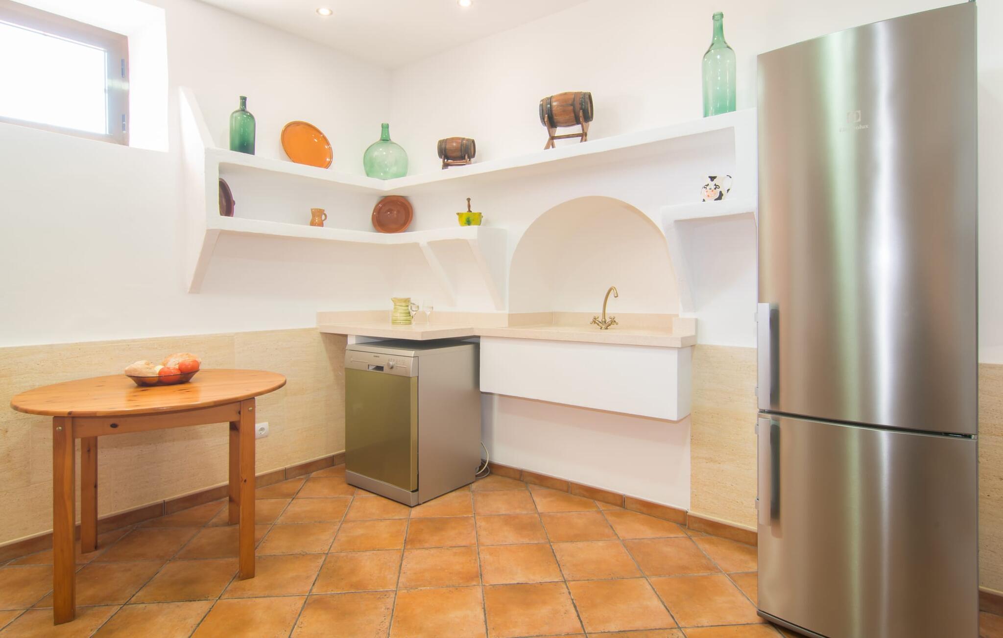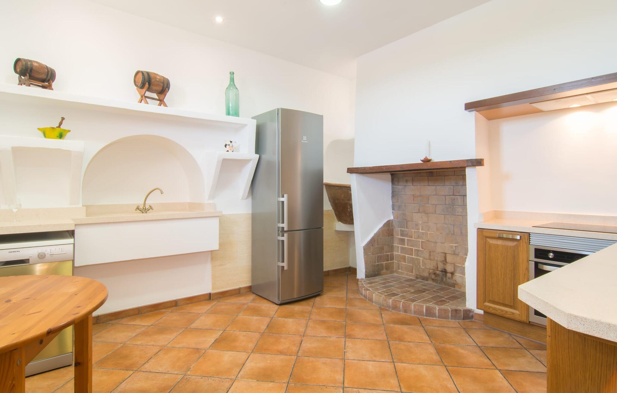Und auch im Inneren gibt es viel Platz zum Atmen. Selbst wenn Sie mit sechs Personen und zusätzlich zwei Babys reisen, finden Sie in der unteren Etage, in der Sie übernachten, ausreichend Platz für alle, auf den Sie gerade im Urlaub nicht verzichten möchten. Der luftige Innencharme des Ortes wird durch helle Wände, Terrakotta-Bodenfliesen und eine bewusst zurückhaltende Einrichtung und Dekoration geprägt. Wohn- und Esszimmer sind durch einen beeindruckenden Torbogen verbunden und die voll ausgestattete Küche mit teilweise unverputzten Ziegelelementen sorgt für eine angenehm kühle Atmosphäre, die im luxuriösen Kühl-/Gefrierschrank ihren konkreten Ausdruck findet. Der Holzofen bietet zusammen mit einigen hübschen, mit Karomuster gepolsterten Stühlen einen weiteren sehr gelungenen Kontrast. Bei so viel Ruhe und Frieden um Sie herum werden Sie in den beiden Schlafzimmern mit Doppelbetten sowie dem Schlafzimmer mit zwei Einzelbetten wunderbar schlafen. Ausreichend Platz für Duschen etc. finden Sie in den beiden vorhandenen Badezimmern mit Tageslicht, eines davon liegt praktischerweise im Nebengebäude am Pool, wo sich auch ein zweiter großer Essbereich befindet, so dass Sie bei schönem Wetter hier entspannen können Genießen Sie das Schlemmen drinnen und draußen.