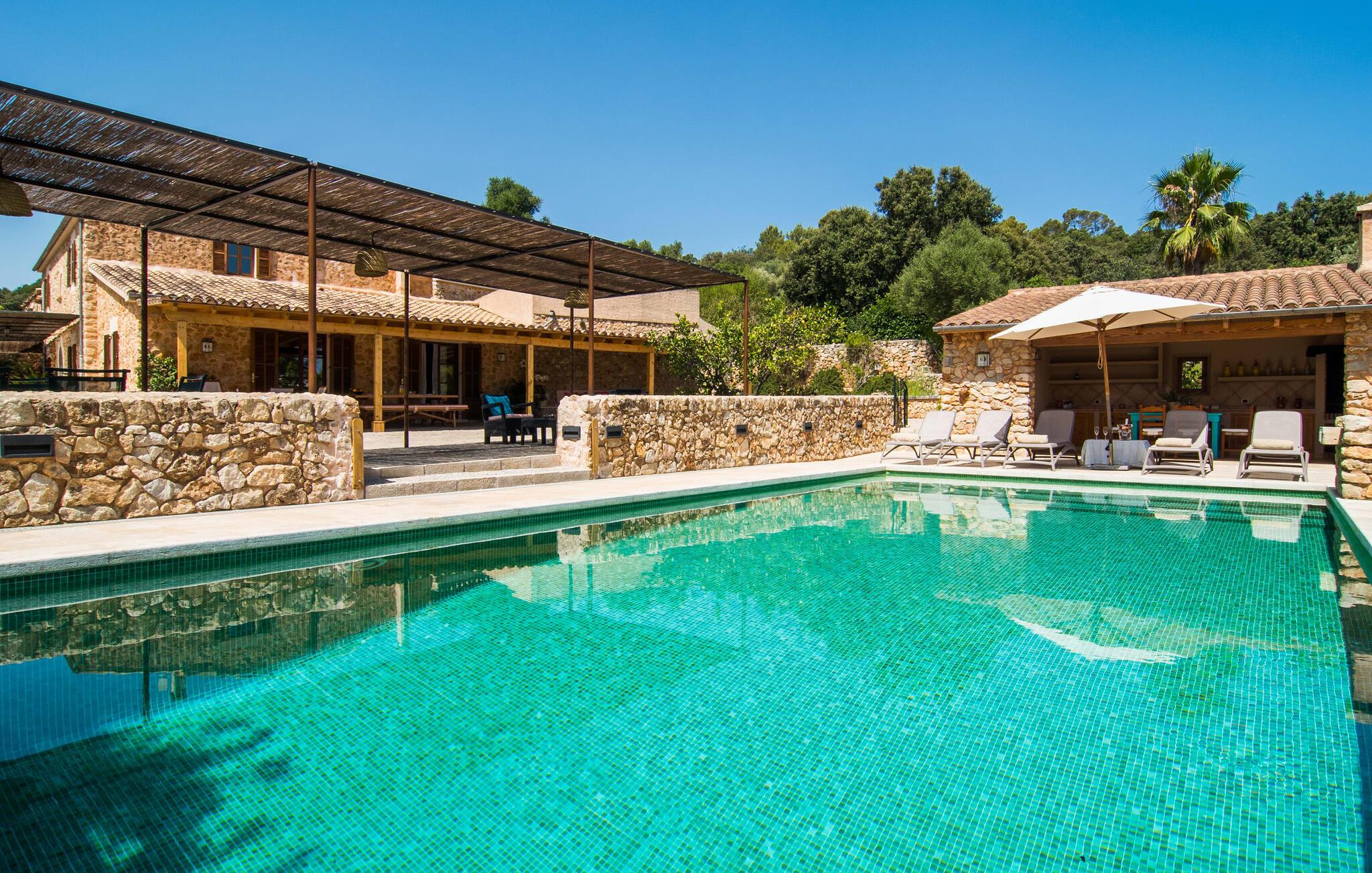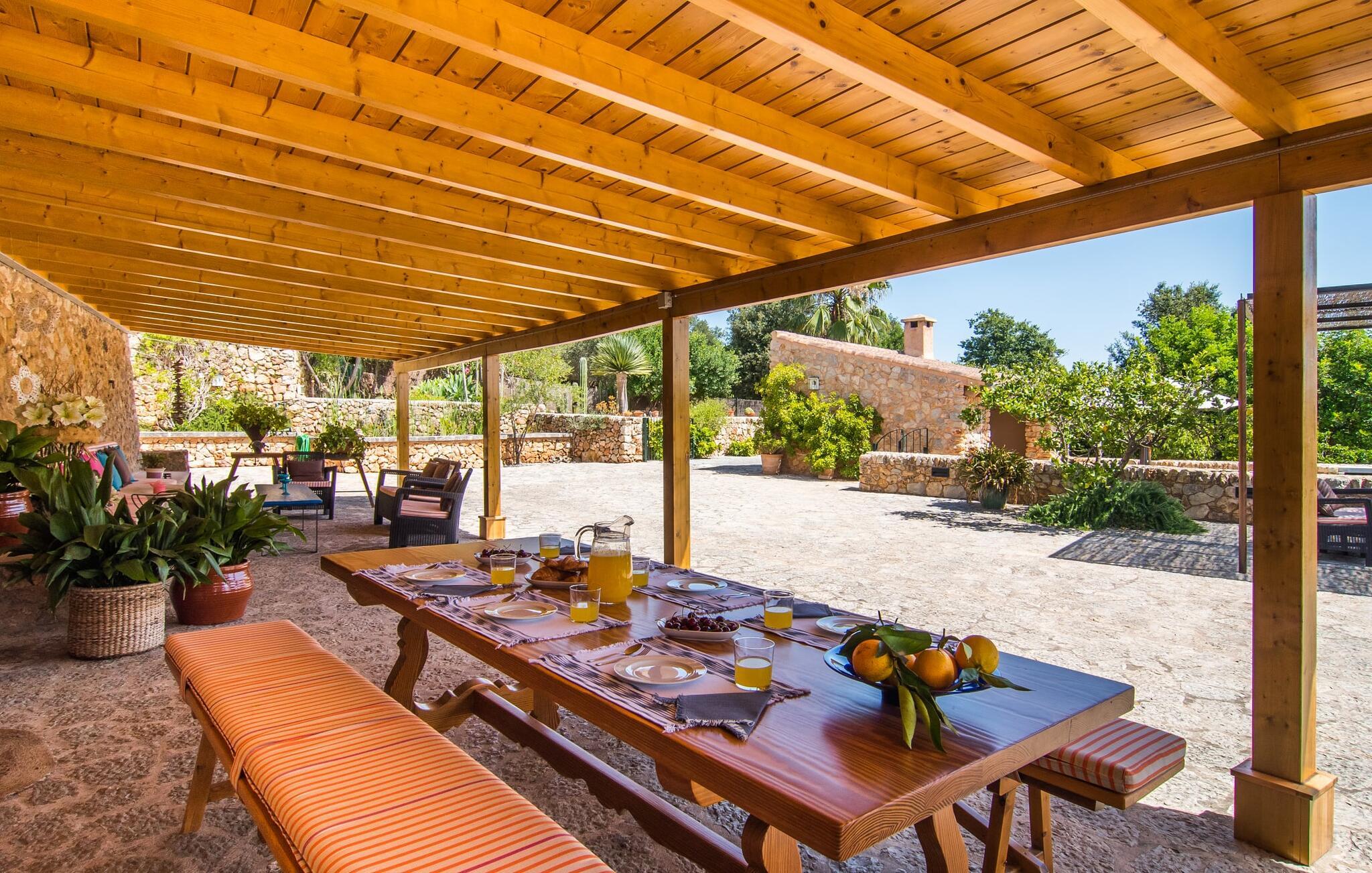 Eingebettet in einen ruhigen Hang bietet die wunderschön restaurierte Finca "Sa Mata Grossa" einen atemberaubenden Blick auf das landschaftlich gestaltete Anwesen und die umliegende Landschaft.