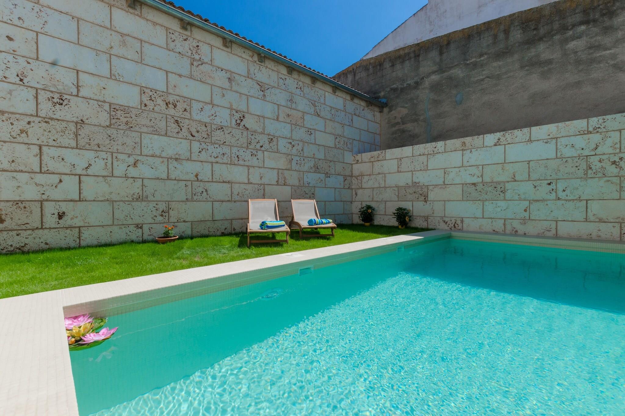 Im Innenhof des tollen Hauses wird es an Spiel und Spaß nicht mangeln. Der 6,3 x 2,7m große Süßwasserpool mit einer Wassertiefe von 1,35 bis 1,7m sorgt für unvergessliche Momente. Umgeben ist er von einer Rasenfläche mit Liegen und Liegestühlen, ideal um sich von der Sonne verwöhnen zu lassen. Am Abend bereiten Sie das Essen auf dem Grill zu und genießen das milde Klima. Von der Terrasse betreten Sie den klimatisierten Wohnbereich mit gemütlichen Sofas und Fernsehen mit Satelliten Empfang. Ein grosser Torbogen führt Sie ins Esszimmer. Anschließend kommen Sie in die Wohn-Küche mit Gasherd, Essecke und allen wichtigen Geräten und Utensilien. Es gibt 3 klimatisierte Schlafzimmer von denen 2 je ein Doppelbett und eins 2 Einzelbetten hat. Für die Kleinsten der Familie wird auf Anfrage gerne ein Babybett und Hochstuhl bereitgestellt. Alle Bewohner teilen sich 2 Bäder, eins mit Dusche, das andere mit Wanne. Natürlich gibt es auch eine Waschmaschine, Bügelbrett und Bügeleisen. Im Winter kann mit Zentralheizung geheizt werden. Das Haus befindet sich im Dorf Sa Pobla, im Norden der Insel. Sie können durch die Strassen schlendern, sich auf dem Dorfplatz ein Eis gönnen oder typische Spezialitäten in einem der Restaurants probieren. Alle wichtigen Dienstleistungen sind im Ort zu finden. Jeden Sonntag findet der traditionelle Markt statt und Sie können frische, einheimische Produkte, sowie Kunsthandwerk oder Souvenirs kaufen. Der nächste Strand ist Playa de Muro, ca. 11,4 km entfernt. Hinweis: Diese Unterkunft richtet sich an Familien und Gäste über 25 Jahre, die einen ruhigen Aufenthalt suchen. Buchungen für Partys oder Feiern werden nicht akzeptiert. Eine Kopie des Ausweisdokuments aller Gäste ist erforderlich, um die Reservierung zu bestätigen. Eventuelle Nebenkosten müssen beim Anbieter nachgefragt werden. Haustiere sind verboten. Partys oder ähnliche Veranstaltungen sind nicht gestattet. Es gibt Parkplätze für 1 Autos in der Garage. Entfernungen Strand: 11.4 km - Platja de Muro Flughafen: 48.8 km - Son Sant Joan Golfplatz: 19.2 km - Alcanada Golf Ortsmitte: 0 km - Sa pobla Bahnhof: 2.8 km - Sa Pobla Bushaltestelle: 0.750 km - Sa Pobla Fähre: 17.1 km - Puerto de Alcúdia Krankenhaus: 12.8 km - Hospital comarcal d'Inca Touristen Lizenz: ETV/12706Einheitsregister: ESFCTU0000070300001049440000000000000000000ETV/127060Auf den Balearen gibt es eine Touristensteuer, die Ecotasa genannt wird. Diese Steuer muss vom Gast bezahlt werden. Der zu zahlende Betrag beträgt zwischen 0.55EURO pro Nacht und Gast in der Nebensaison und 2.2EURO pro Nacht und Gast in der Hochsaison. Ab dem 9. Tag reduziert sich die Steuer um die Hälfte. Personen unter 16 Jahren sind davon ausgenommenDie Kaution ist bei Ankuuft direkt an den Eigentümer zu übergeben.
