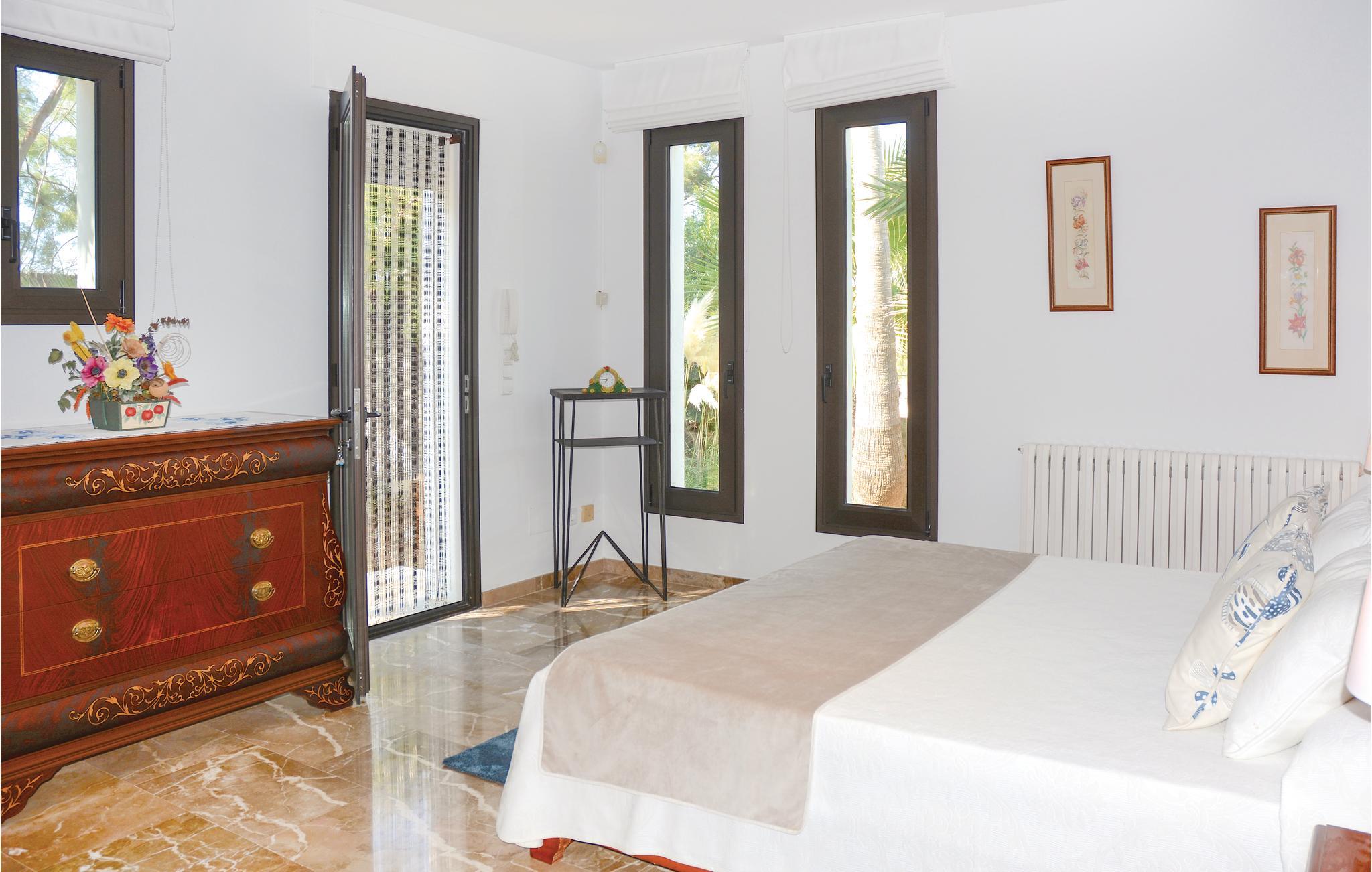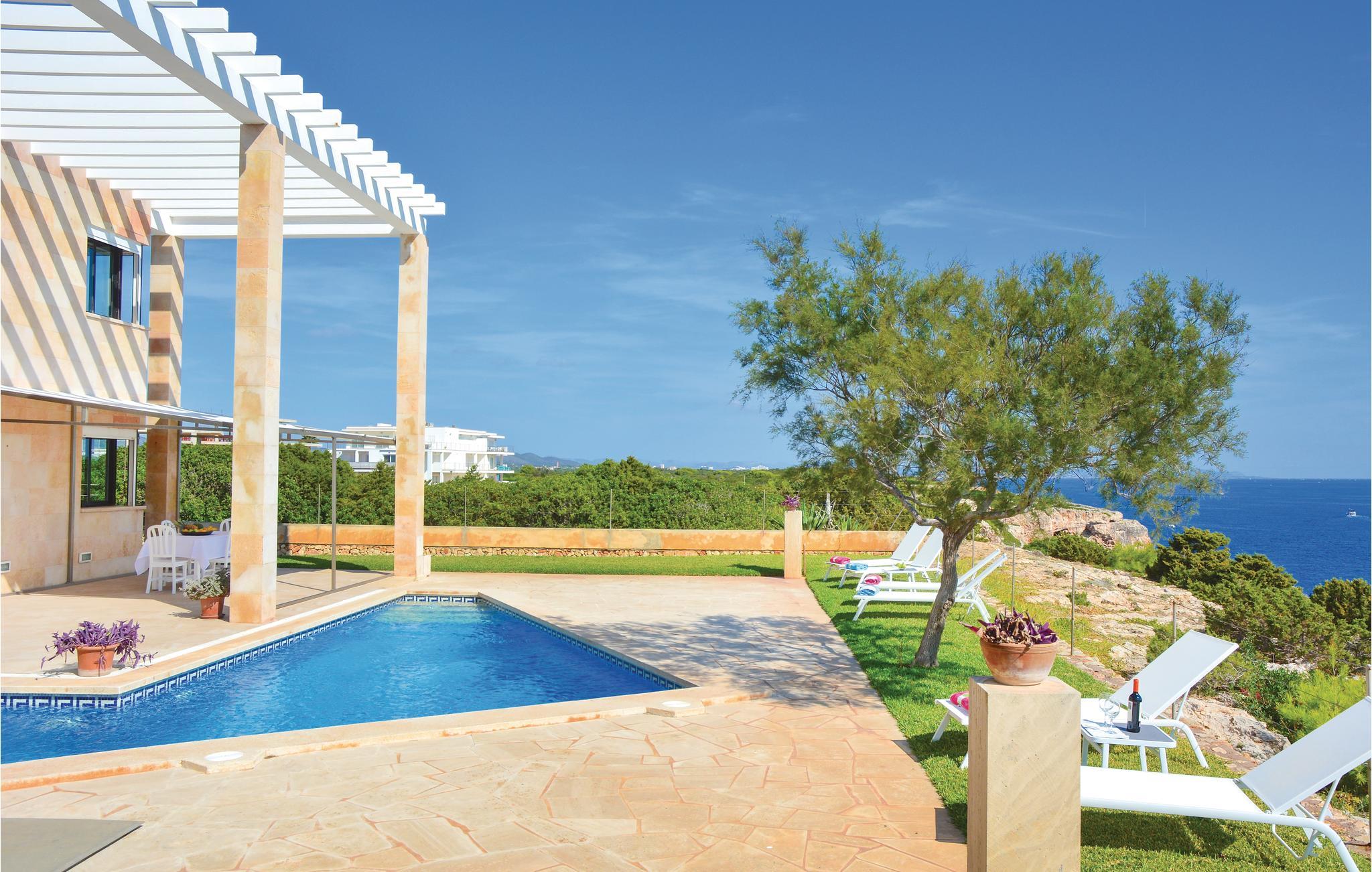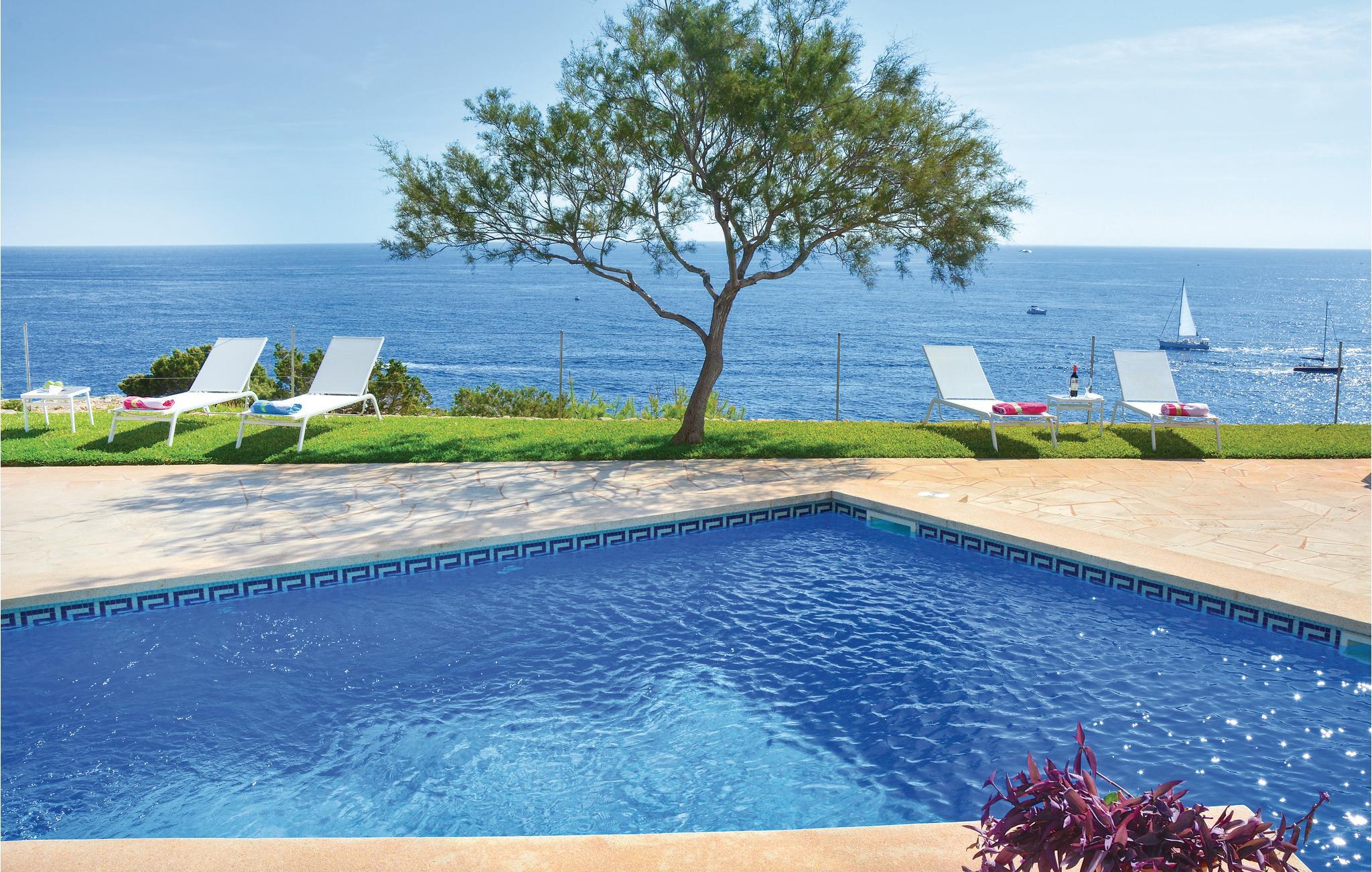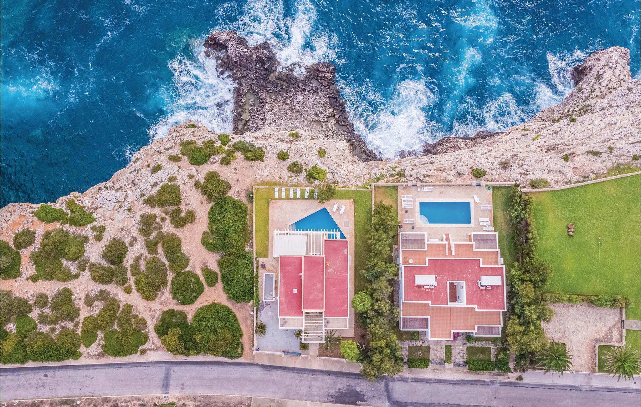 In dieser extravaganten Villa werden Sie einen unvergesslichen und erholsamen Urlaub direkt in 1. Meereslinie mit Ihren Liebsten oder Ihren Freunden verbringen. Die sanfte Brise und der freie Blick auf das tiefblaue Mittelmeer vermitteln Ihnen den Eindruck, auf einer Luxusyacht zu reisen. Der Innenbereich ist geräumig und die Einrichtung gemütlich. Dank der interessanten Architektur verfügt der Wohnbereich über die doppelte Deckenhöhe und ist daher, so wie das ganze Haus, angenehm Licht durchflutet und ansprechend. Die Schlafzimmer sind alle mit einer Klimaanlage ausgestattet. An den nahegelegenen Stränden mit kristallklarem Wasser können Sie herrliche Badetage verbringen und dann wieder in Ihre schöne Urlaubsoase zurückkehren. Auf der Terrasse über der romantischen Meeresküste können Sie es sich in der schönen Chill-out-Sitzecke bequem machen. Lassen Sie dort Ihre Seele baumeln, genießen Sie die traumhafte Sicht auf das Mittelmeer oder erfrischen Sie sich im vorgelagerten, eleganten Pool. Im Garten finden Sie außerdem ein zusätzliches Badezimmer mit Dusche und eine Freiluftdusche mit Warmwasser. Und falls Sie mal Lust auf ein leckeres Meeresfrüchte- oder Fischmahl haben, können Sie das entzückende Dörfchen Porto Colom leicht mit einem Spaziergang erreichen. Dort locken die guten Restaurants mit ihren Spezialitäten. Natürlich werden hier, nebst vielen anderen Gerichten, Fisch, Meeresfrüchte und Paellas angeboten. Diese kulinarischen Highlights dieses ehemaligen Fischerdörfchens sind inselweit bekannt. Nicht ideal für Kinder. Gruppen (ausgenommen Familien und Pärchen ü30) auf Anfrage und mit Spezialkaution. Lizenznummer: VT/104173