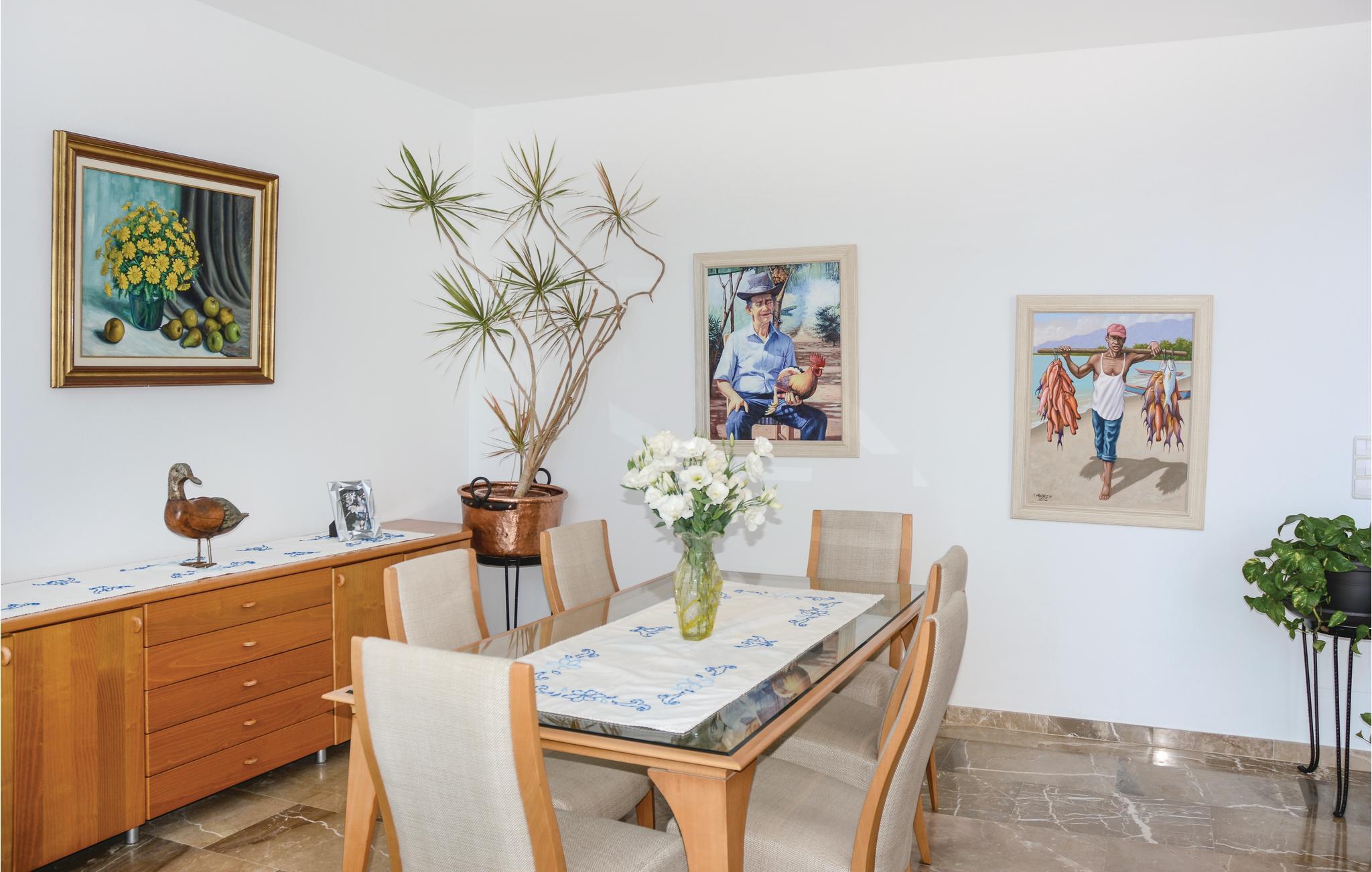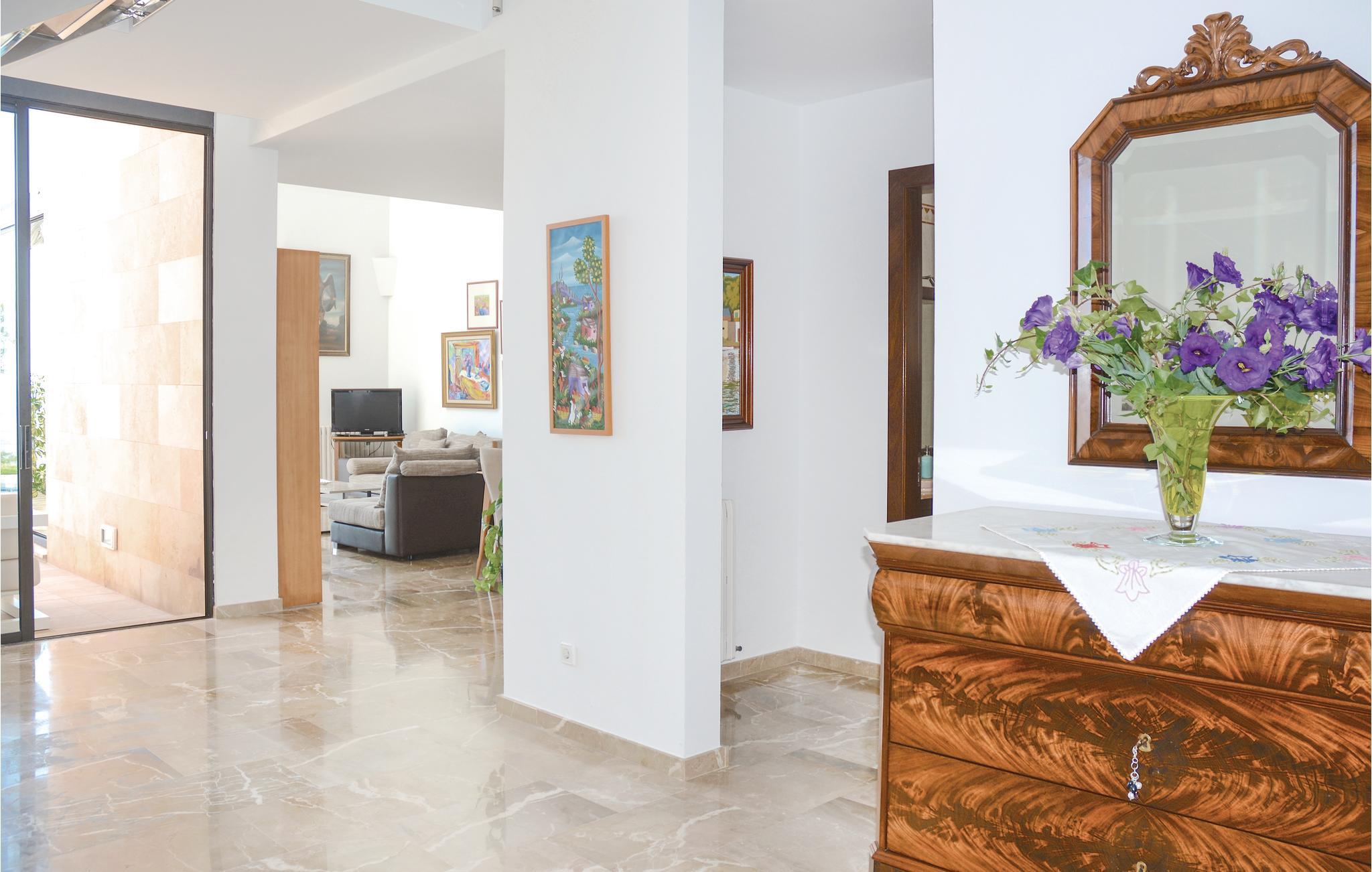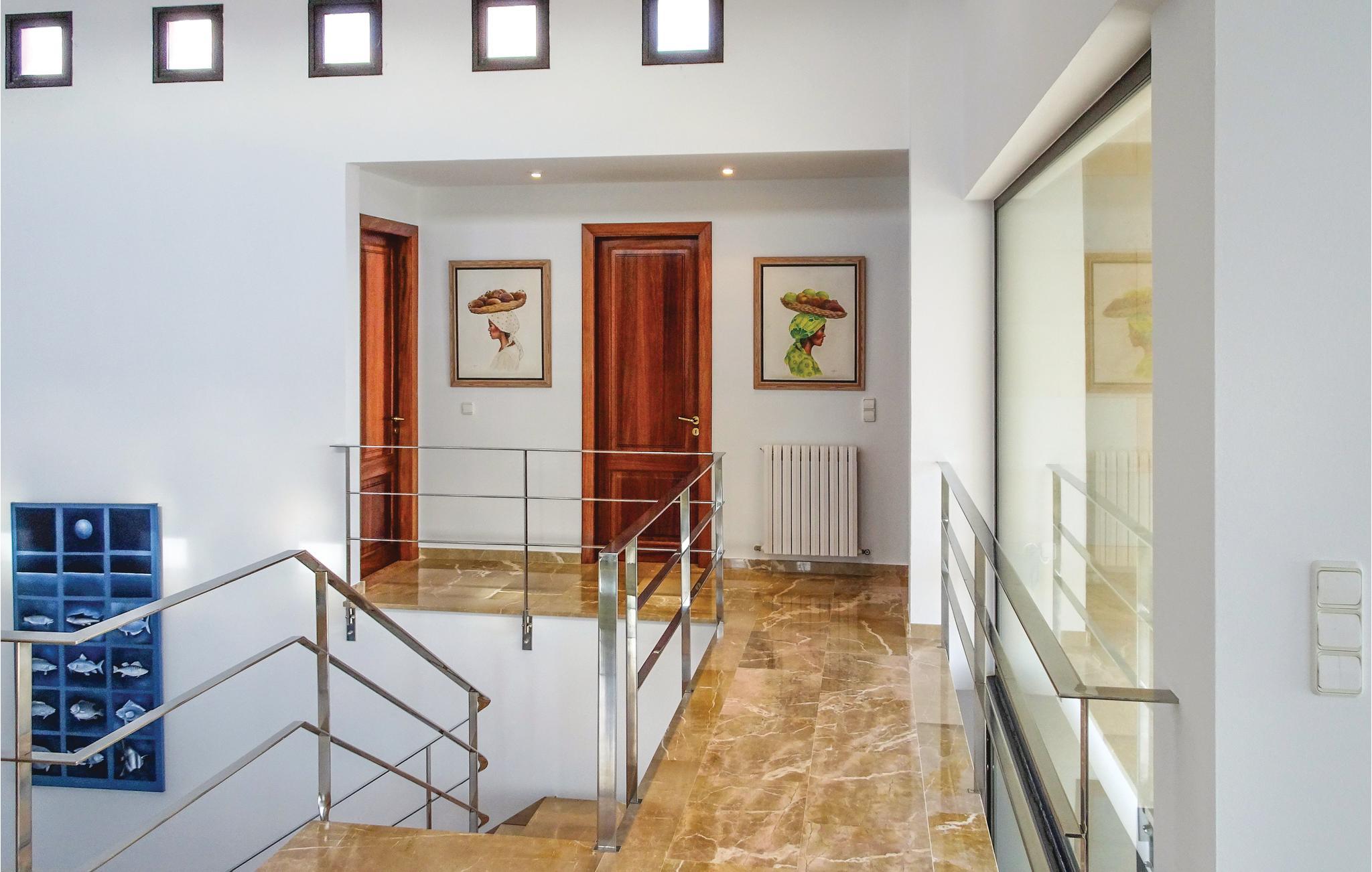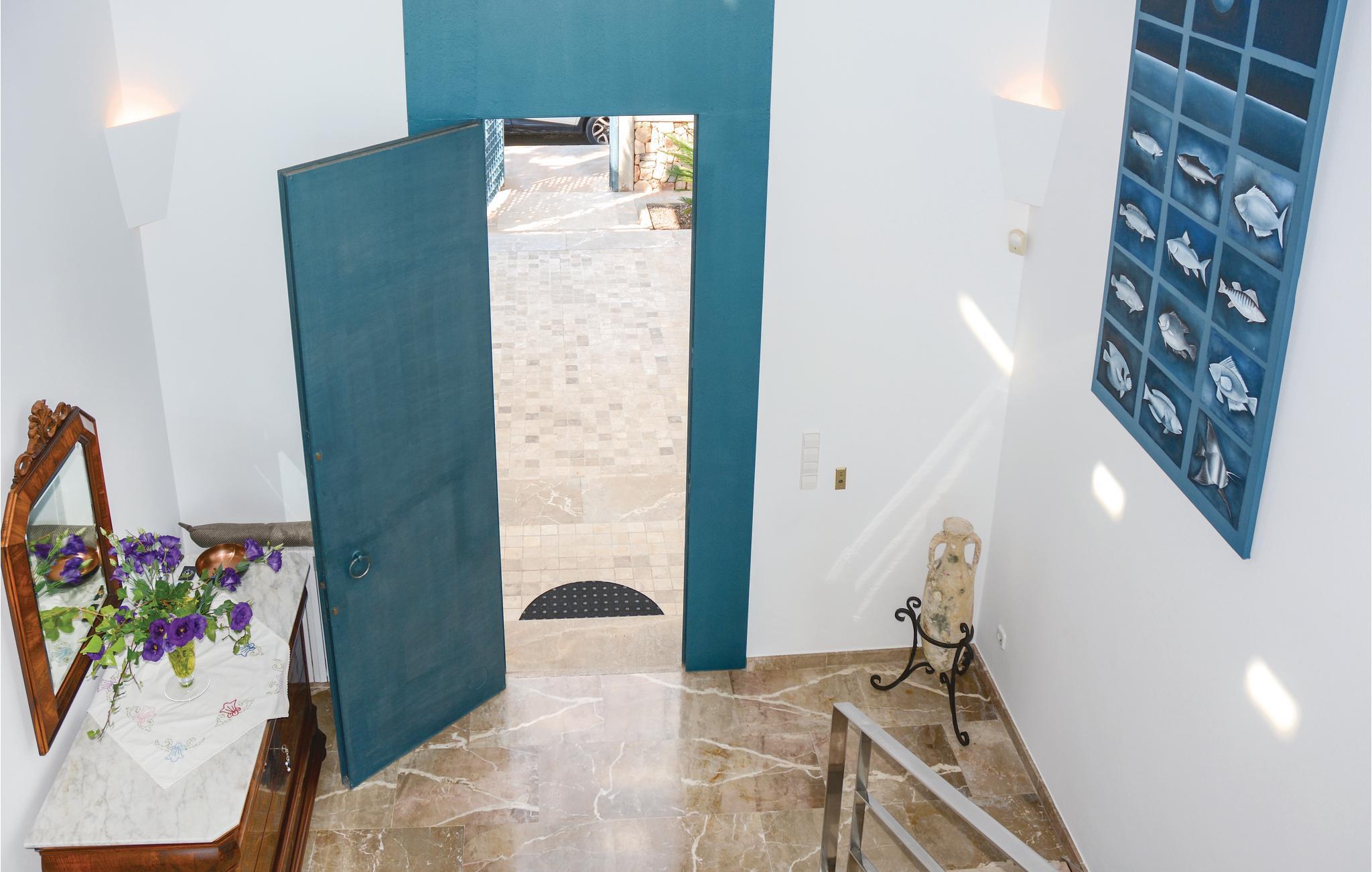 In dieser extravaganten Villa werden Sie einen unvergesslichen und erholsamen Urlaub direkt in 1. Meereslinie mit Ihren Liebsten oder Ihren Freunden verbringen. Die sanfte Brise und der freie Blick auf das tiefblaue Mittelmeer vermitteln Ihnen den Eindruck, auf einer Luxusyacht zu reisen. Der Innenbereich ist geräumig und die Einrichtung gemütlich. Dank der interessanten Architektur verfügt der Wohnbereich über die doppelte Deckenhöhe und ist daher, so wie das ganze Haus, angenehm Licht durchflutet und ansprechend. Die Schlafzimmer sind alle mit einer Klimaanlage ausgestattet. An den nahegelegenen Stränden mit kristallklarem Wasser können Sie herrliche Badetage verbringen und dann wieder in Ihre schöne Urlaubsoase zurückkehren. Auf der Terrasse über der romantischen Meeresküste können Sie es sich in der schönen Chill-out-Sitzecke bequem machen. Lassen Sie dort Ihre Seele baumeln, genießen Sie die traumhafte Sicht auf das Mittelmeer oder erfrischen Sie sich im vorgelagerten, eleganten Pool. Im Garten finden Sie außerdem ein zusätzliches Badezimmer mit Dusche und eine Freiluftdusche mit Warmwasser. Und falls Sie mal Lust auf ein leckeres Meeresfrüchte- oder Fischmahl haben, können Sie das entzückende Dörfchen Porto Colom leicht mit einem Spaziergang erreichen. Dort locken die guten Restaurants mit ihren Spezialitäten. Natürlich werden hier, nebst vielen anderen Gerichten, Fisch, Meeresfrüchte und Paellas angeboten. Diese kulinarischen Highlights dieses ehemaligen Fischerdörfchens sind inselweit bekannt. Nicht ideal für Kinder. Gruppen (ausgenommen Familien und Pärchen ü30) auf Anfrage und mit Spezialkaution. Lizenznummer: VT/104173