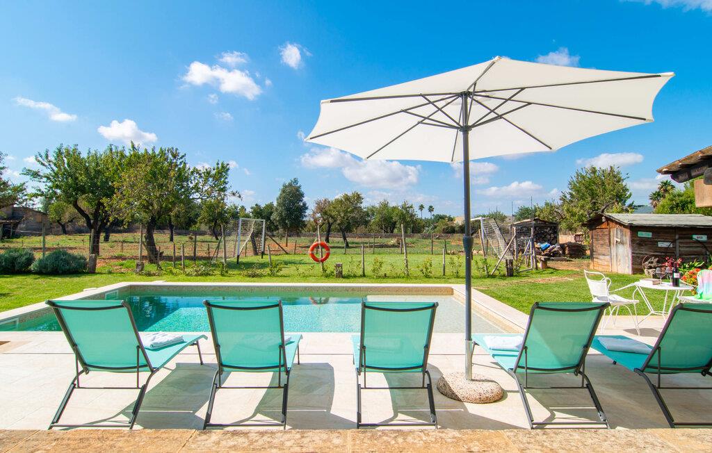 Sie befinden sich im Zentrum der Insel, der sogenannten „Kornkammer Mallorcas“, was bedeutet: Herrlich endlose Wiesen, Felder, Mandel- und Olivenhaine, ideal zum Spazierengehen, Radfahren, Abschalten und Entspannen. Doch auch die nächste Stadt ist nicht weit entfernt: Inca, vor allem für seine Lederprodukte bekannt, liegt nur 3 km von Ihrer Unterkunft entfernt und ist mit dem Mietwagen schnell zu erreichen. Hier finden Sie alles für den täglichen Bedarf und können den einen oder anderen Einkaufsbummel unternehmen. Einen Besuch auf dem Wochenmarkt, der jeden Donnerstag stattfindet, sollten Sie sich nicht entgehen lassen. Hier finden Sie nicht nur die berühmten Lederwaren, sondern auch viele weitere interessante Marktstände. Sehr beliebt sind auch die zahlreichen Kellerrestaurants mit traditionell mallorquinischer Atmosphäre und köstlichen lokalen Gerichten; Für einen Tag am Strand fährt man am besten die 28 km in die abwechslungsreiche Bucht von Alcúdia, die verschiedene Strandabschnitte für jeden Geschmack bietet. Die sonnengelbe Villa „Sa Tanqueta“ liegt inmitten einer wunderschönen mediterranen Landschaft, ohne unmittelbare Nachbarn und dennoch angenehm stadtnah. Auf dem familienfreundlichen, großzügigen Grundstück – neben dem Pool stehen Ihnen auch Rasenflächen, Fußballtore und eine Schaukel für die Kinder zur Verfügung – genießen Sie absolute Ruhe. Um Lebensmittel einzukaufen, Restaurants zu besuchen und für Einkaufstouren können Sie die 3 km nach Inca, der drittgrößten Stadt der Insel, fahren. Die nächstgelegenen Strände, wie die Bucht von Alcúdia und Playa de Muro, sind etwa 28 km entfernt.