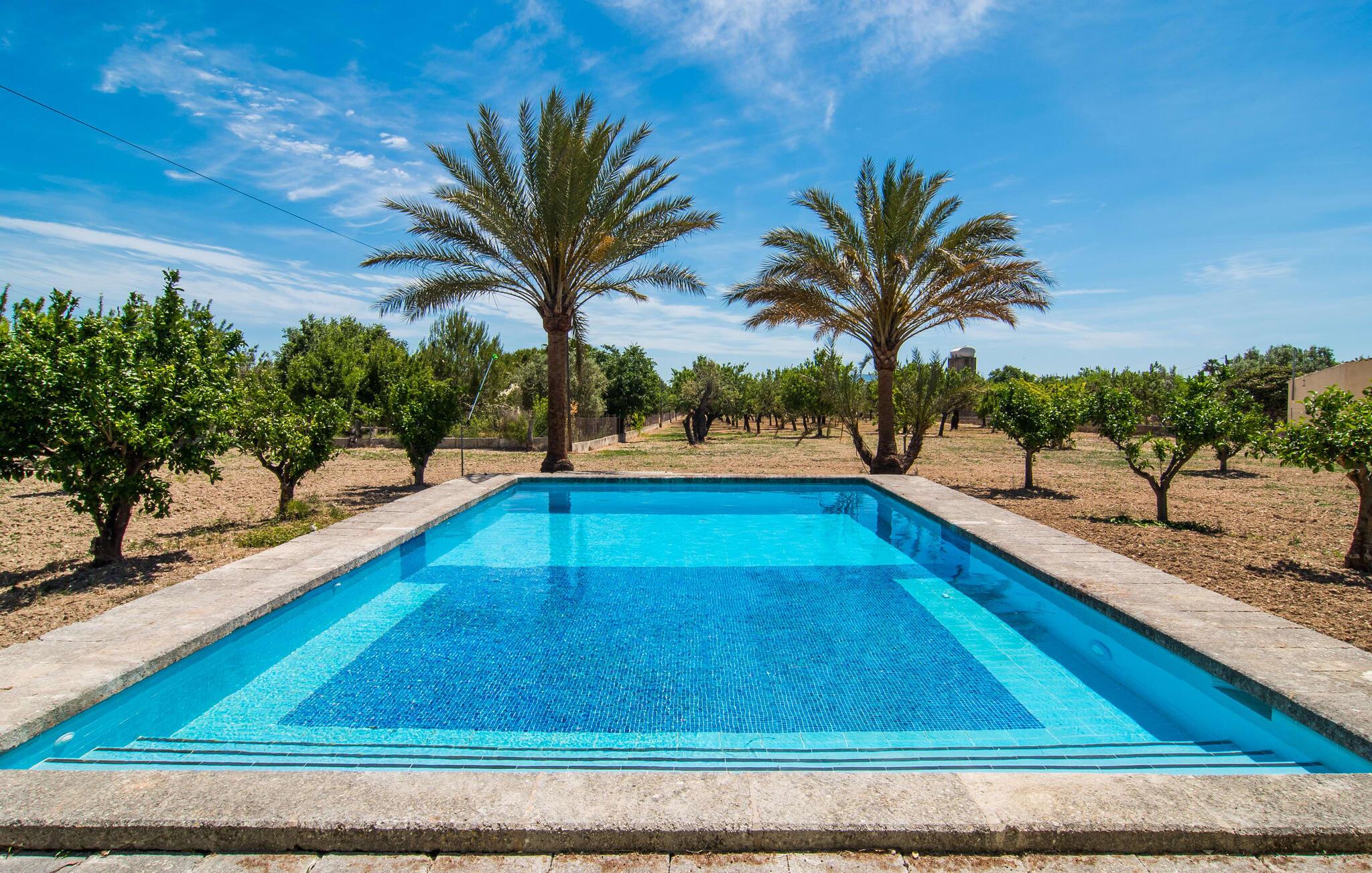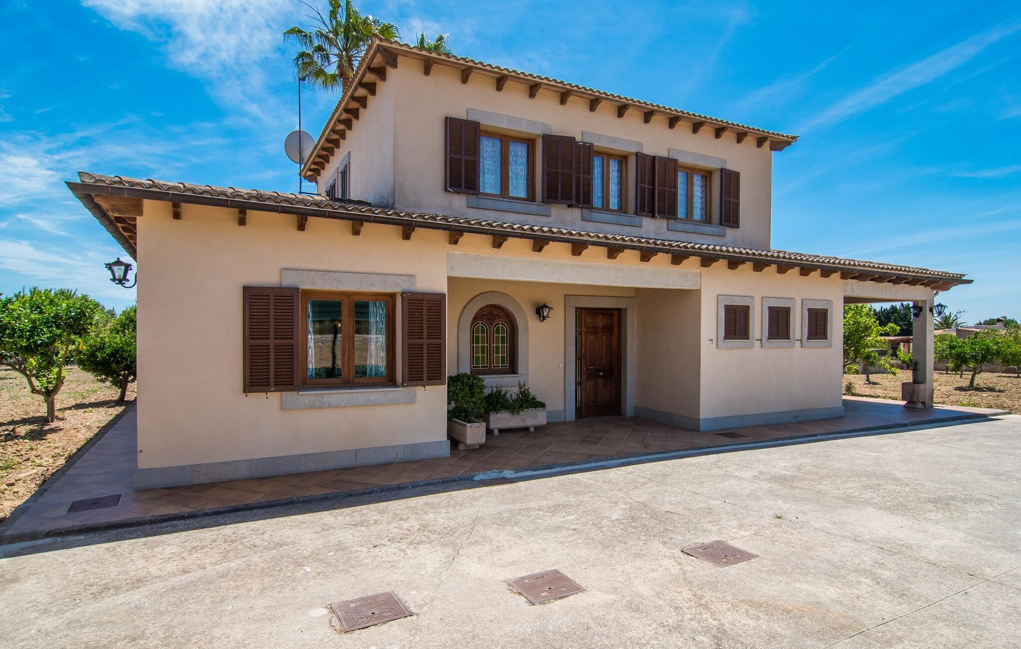 Die liebevoll renovierte Villa „Sa Terra Grosa“ ist von einem großen Obstgarten umgeben. Das Anwesen liegt nördlich von Binissalem, einer ruhigen Kleinstadt im Zentrum der Insel. Auch zu Fuß kann man in die Stadt gehen, wo freitags auf dem Kirchplatz ein bunter Wochenmarkt stattfindet. Aufgrund der zentralen Lage in der Mitte der Insel sind die Hauptstadt Palma und ihre Strände, darunter Passeig del Molinar und Ciutat Jardí, leicht zu erreichen.