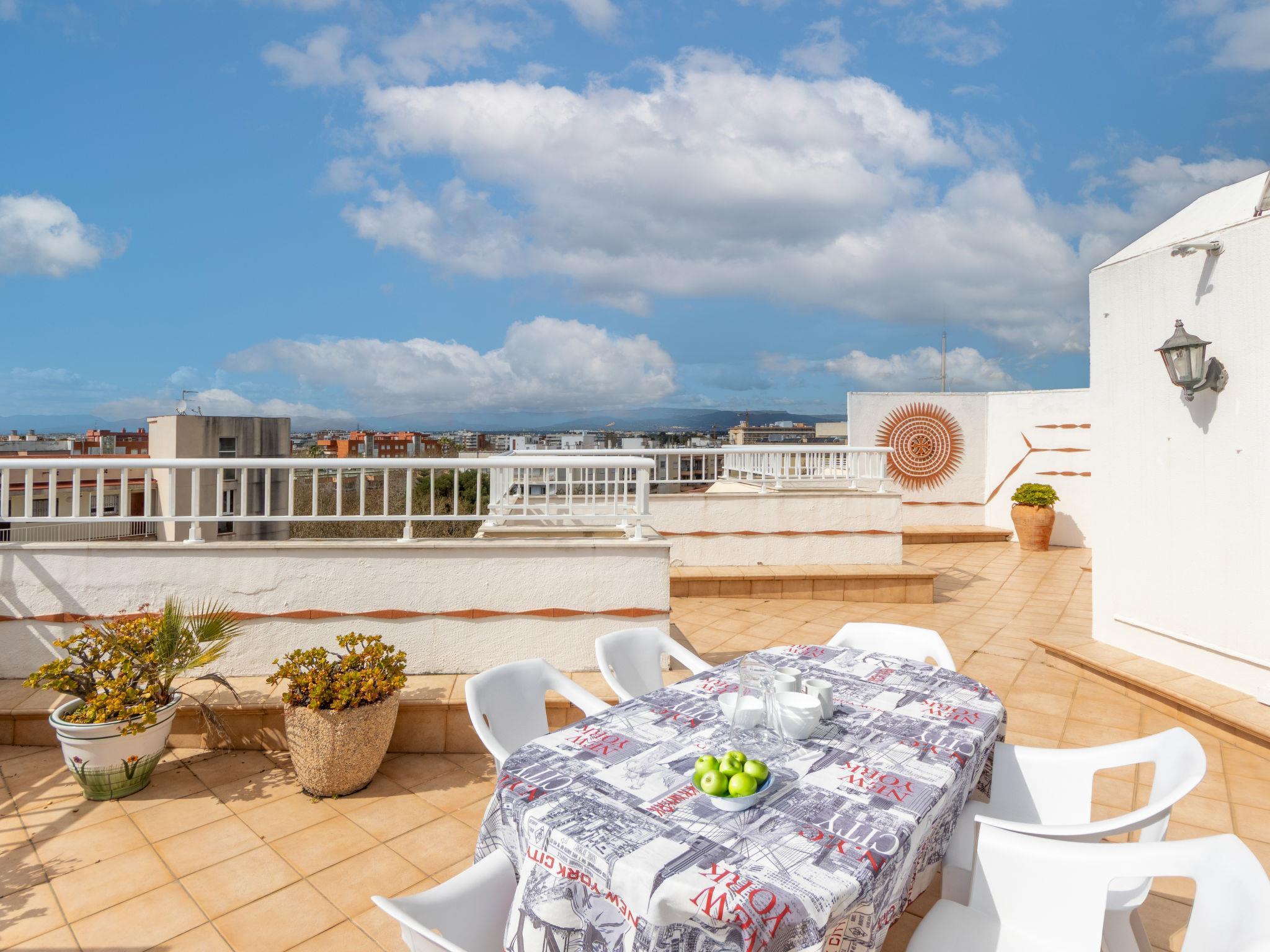 "Jazmin", 4-Zimmer-Attikawohnung 120 m2 auf 2 Stockwerken. Geräumig, zweckmässig eingerichtet: Wohn-/Esszimmer mit Digital-TV. Ausgang zur Terrasse. 1 Zimmer mit 1 franz. Bett (1 x 150 cm, Länge 190 cm), Bad/WC. Küche (Backofen, 3 Glaskeramikplatten, Toaster, Wasserkocher, Mikrowelle, Tiefkühler, elektrische Kaffeemaschine, Kapseln für die Kaffeemaschine (Dolce Gusto) extra) mit Boiler (100 Liter). Sep. WC. Keine Heizmöglichkeit. Unteres Geschoss: 1 Zimmer mit 2 Betten (90 cm, Länge 190 cm), Ventilator. 1 Zimmer mit 1 franz. Bett (1 x 150 cm, Länge 190 cm), Ventilator. Bad/WC. Grosse Terrasse. Terrassenmöbel. Sehr schöne Sicht auf das Meer. Zur Verfügung: Waschmaschine, Bügeleisen, Haartrockner. Parkplatz Nr. 1 y 11. Bitte beachten: Nichtraucher-Unterkunft. TV nur ES. HUTT-002027