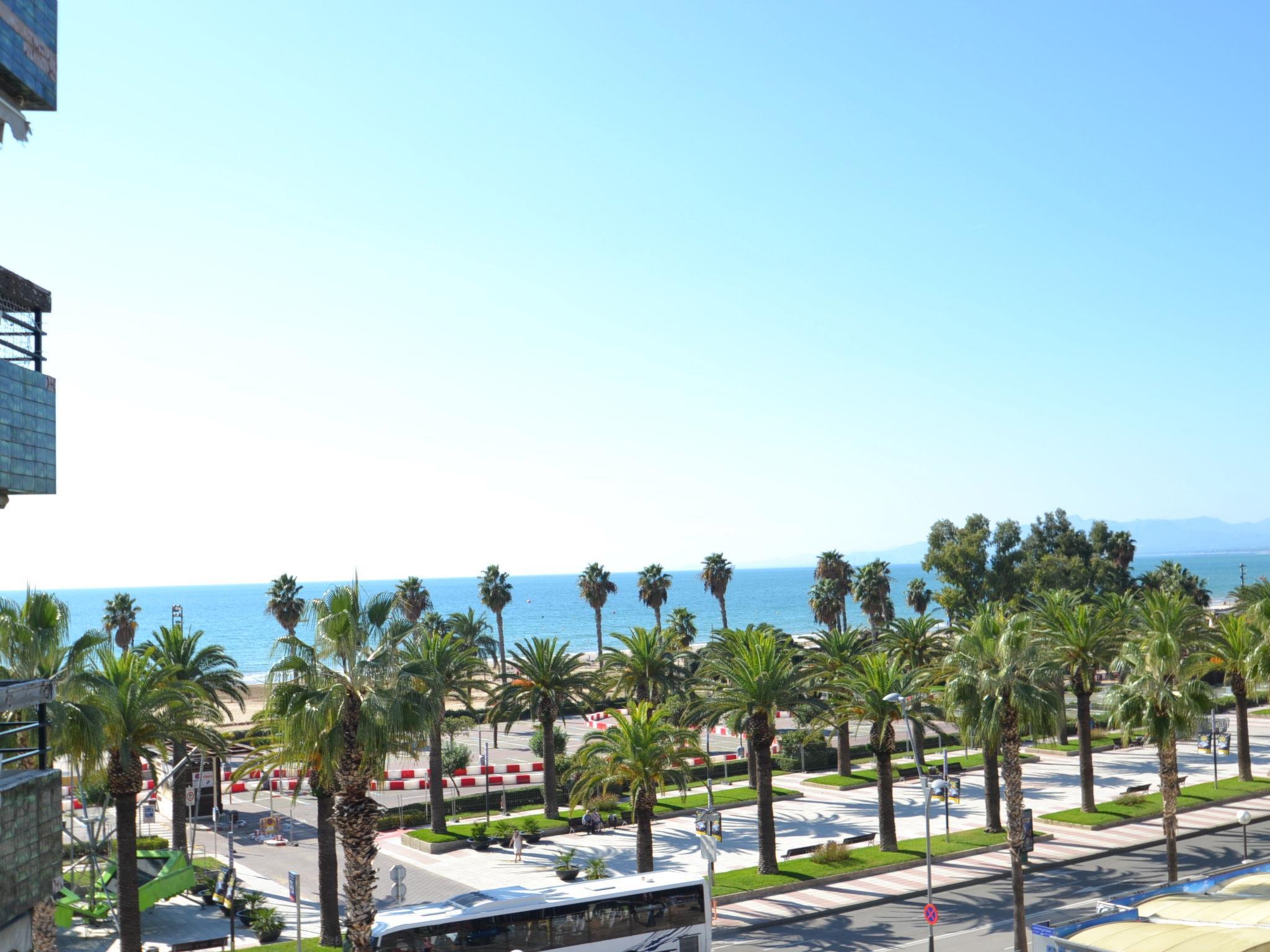 3-Zimmer-Wohnung 70 m2 im 6. Stock. Hell, komfortabel und schön eingerichtet: Wohn-/Esszimmer mit Esstisch, Digital-TV und Klimaanlage. Ausgang zur Terrasse. 1 Zimmer mit 1 Doppelbett (2 x 90 cm, Länge 190 cm), TV und Klimaanlage. Ausgang zur Terrasse. 1 Zimmer mit 1 Bett (80 cm, Länge 190 cm), 1 x 2 Etagenbetten (80 cm, Länge 190 cm), Dusche/WC und Klimaanlage. Küche (Backofen, Geschirrspüler, 3 Glaskeramikplatten, Toaster, Wasserkocher, Mikrowelle, Tiefkühler, elektrische Kaffeemaschine). Dusche/Bidet/WC. Klimaanlage, Warmluftheizung. Terrassenmöbel. Panoramasicht auf das Meer. Zur Verfügung: Waschmaschine, Bügeleisen, Haartrockner. Internet (WLAN, gratis). Garage Nr. 12, Höhe 200 cm, Breite 205 cm. HUTT-009536 // Reg. Nr.: ESFTCU000043024000158405000000000000000000HUTT0096367