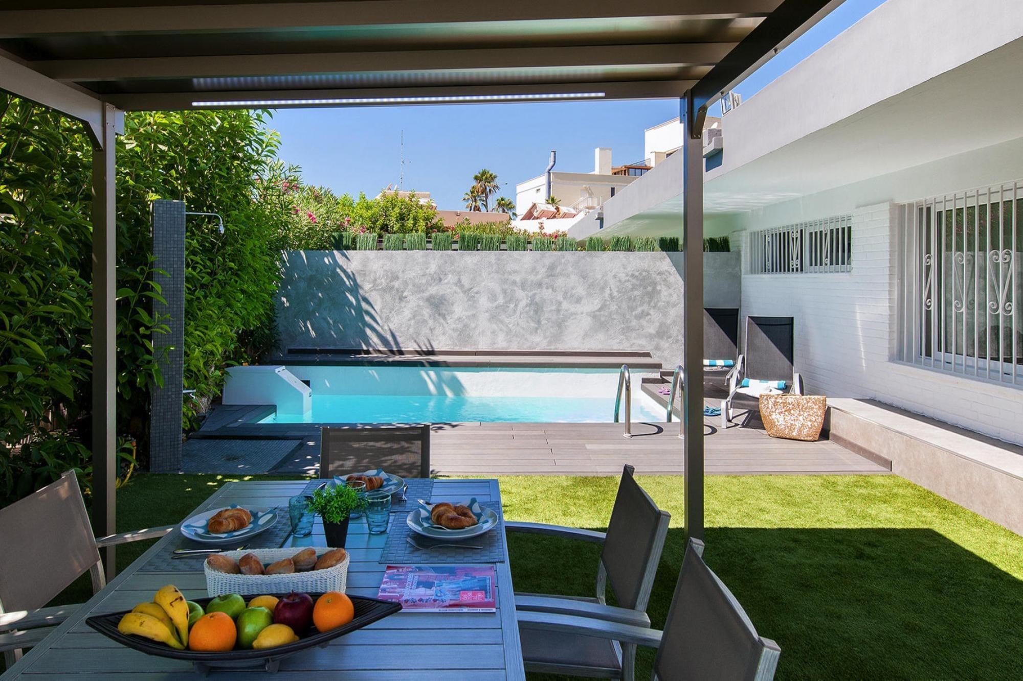 Badeurlauber kommen hier ganz auf Ihre Kosten, denn der hell und freundlich eingerichtete Bungalow verfügt über einen privaten Außenpool und liegt nur etwa 700 Meter vom schönen Sandstrand von San Agustín entfernt. Verbringen Sie schöne Tage am Meer und genießen Sie im Anschluss daran entspannte Abende auf der sichtgeschützten Terrasse. Wohlfühlen werden Sie sich auch im Inneren des renovierten Bungalows, der Ihnen mit aktuellen Unterhaltungsmöglichkeiten im Wohnzimmer, einer modernen Küche und zwei Bädern viel Komfort bietet. Der Strand von San Agustín ist etwa 670 Meter lang, etwas abschüssig und auch gut gegen die Wellen geschützt, sodass Sie hier optimal Schnorcheln und Tauchen können. Entlang der Promenade Paseo Costa Canaria können Sie einen herrlichen Spaziergang bis zum circa dreieinhalb Kilometer entfernten Hauptstrand von Playa del Inglés unternehmen. Genießen Sie dabei den tollen Blick auf den Atlantik. Darüber hinaus finden Sie an der Promenade einige ausgezeichnete Fischrestaurants sowie eine Auswahl an Cafés, Bars und Geschäften.
