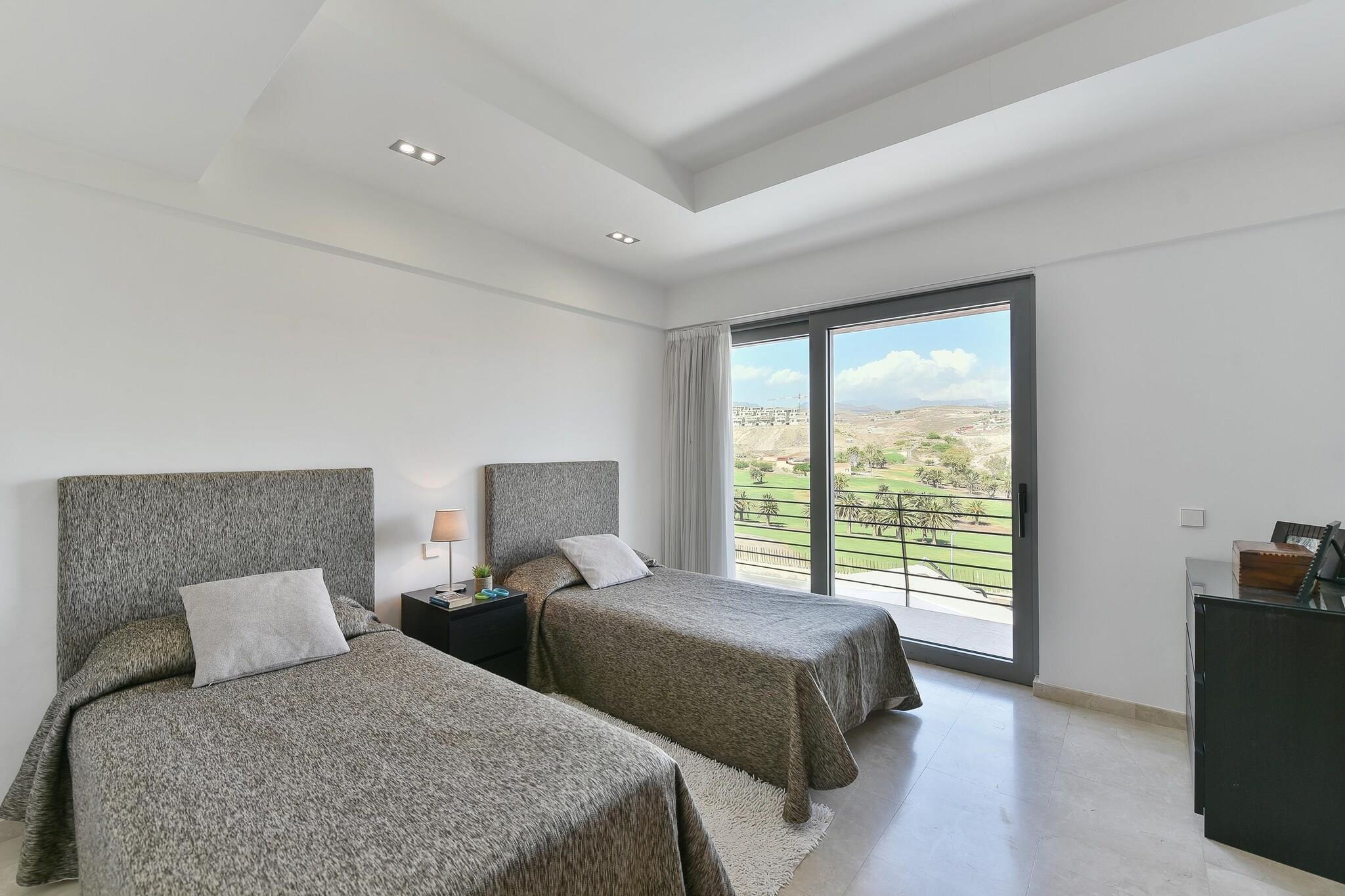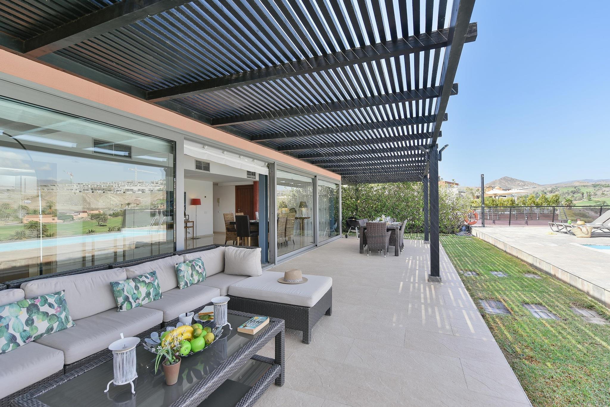 Hier brauchen Sie auf nichts zu verzichten und haben außerdem noch einen schönen Blick auf die Berge und den Golfplatz. Die moderne und komfortable Villa bietet Ihnen sowohl im Haus, als auch im Außenbereich viel Platz. Jedes Schlafzimmer verfügt über eine Klimaanlage sowie über ein eigenes Bad und in der gut ausgestatteten Küche lässt sich der ein oder andere Kochabend verbringen. Etwas Schatten spendet die Pergola, unter der Sie es sich entweder auf den Loungemöbeln gemütlich machen oder am Tisch Ihre frisch zubereiteten Speisen genießen können. Für eine Erfrischung sorgt der Privatpool, der an kälteren Tagen beheizbar (gegen Gebühr) ist. Ideal für Urlauber, die gern ihr Handicap verbessern möchten: zwei Golfplätze liegen in direkter Nachbarschaft. Maspalomas ist der älteste Ferienort an der Südküste Gran Canarias und bekannt durch seine riesigen Dünen, die sich über eine Länge von sechs und eine Breite von ein bis zwei Kilometern erstrecken. In den Dünen liegt das einzige offizielle FKK-Gebiet Gran Canarias. Stolz ragt sich der 68 Meter hohe Leuchtturm El Faro in die Lüfte, der bereits im Jahre 1889 errichtet wurde. Am Leuchtturm findet sich eine Oase „La Charca“, in der zahlreiche Wasservögel brüten. Sie steht ebenso wie die Dünen seit 1987 unter Naturschutz. Mit dem Auto sind es gerade mal 15 Minuten bis zu den schönsten Stränden von Maspalomas, Amadores und Puerto Rico oder nach Playa del Inglès.