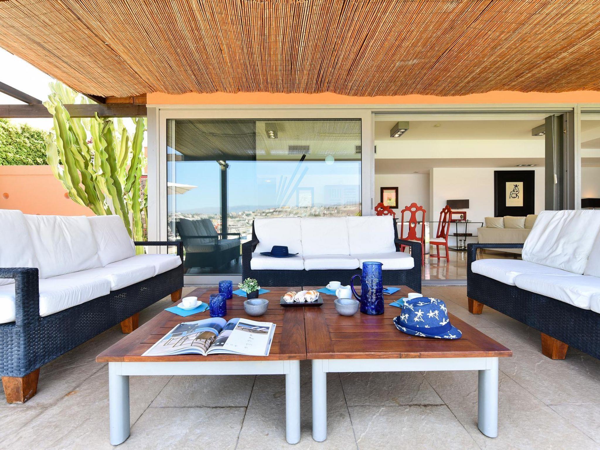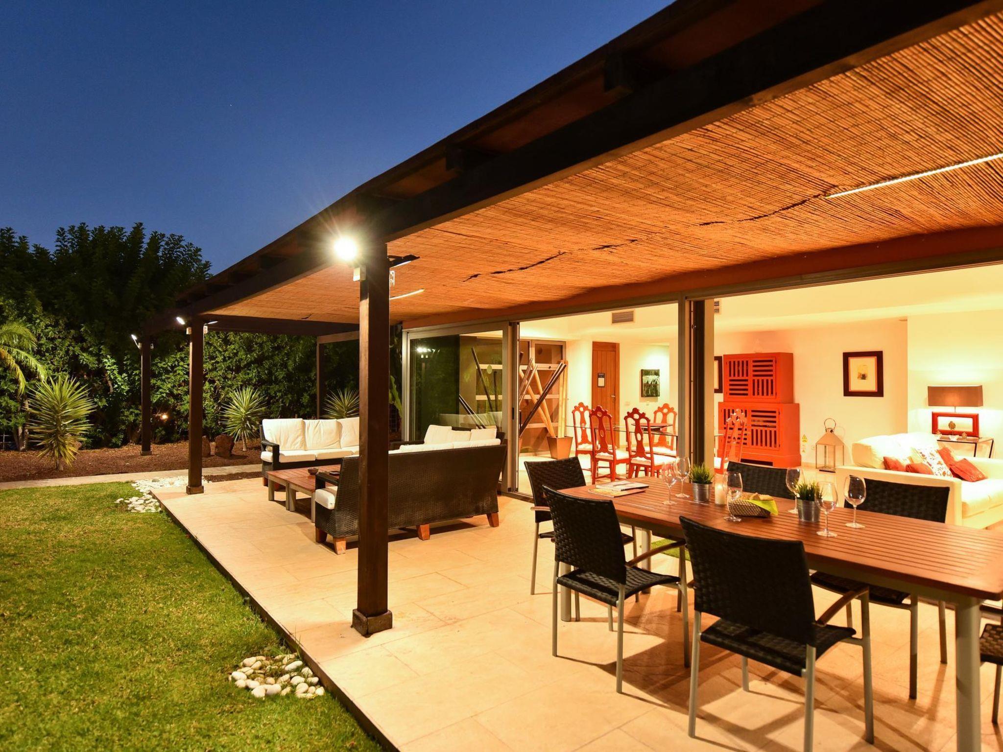 "Salobre Villa 3", 4-Zimmer-Haus 200 m2. Komfortabel und gemütlich eingerichtet: Wohn-/Esszimmer mit Esstisch, Digital-TV und Klimaanlage. Ausgang zum Gartensitzplatz, zum Schwimmbad. 1 Zimmer mit 2 Betten, Dusche/Bidet/WC und Klimaanlage. Ausgang zum Garten. Wohnküche (Backofen, Geschirrspüler, 3 Glaskeramikplatten, Toaster, Wasserkocher, Mikrowelle, Tiefkühler, elektrische Kaffeemaschine) mit Esstisch. Sep. WC. Obergeschoss: 2 Zimmer, jedes Zimmer mit 2 Betten, Dusche/WC und Klimaanlage. Gartensitzplatz. Terrassenmöbel, Gartengrill, Liegestühle. Sicht auf die Berge und den Golfplatz. Zur Verfügung: Waschmaschine, Safe, Bügeleisen, Kinderhochstuhl, Babybett bis 2 Jahre, Haartrockner. Internet (WLAN, gratis). Parkplatz (1 Auto). Maximal 1 Haustier/Hund erlaubt. 2024-T16459