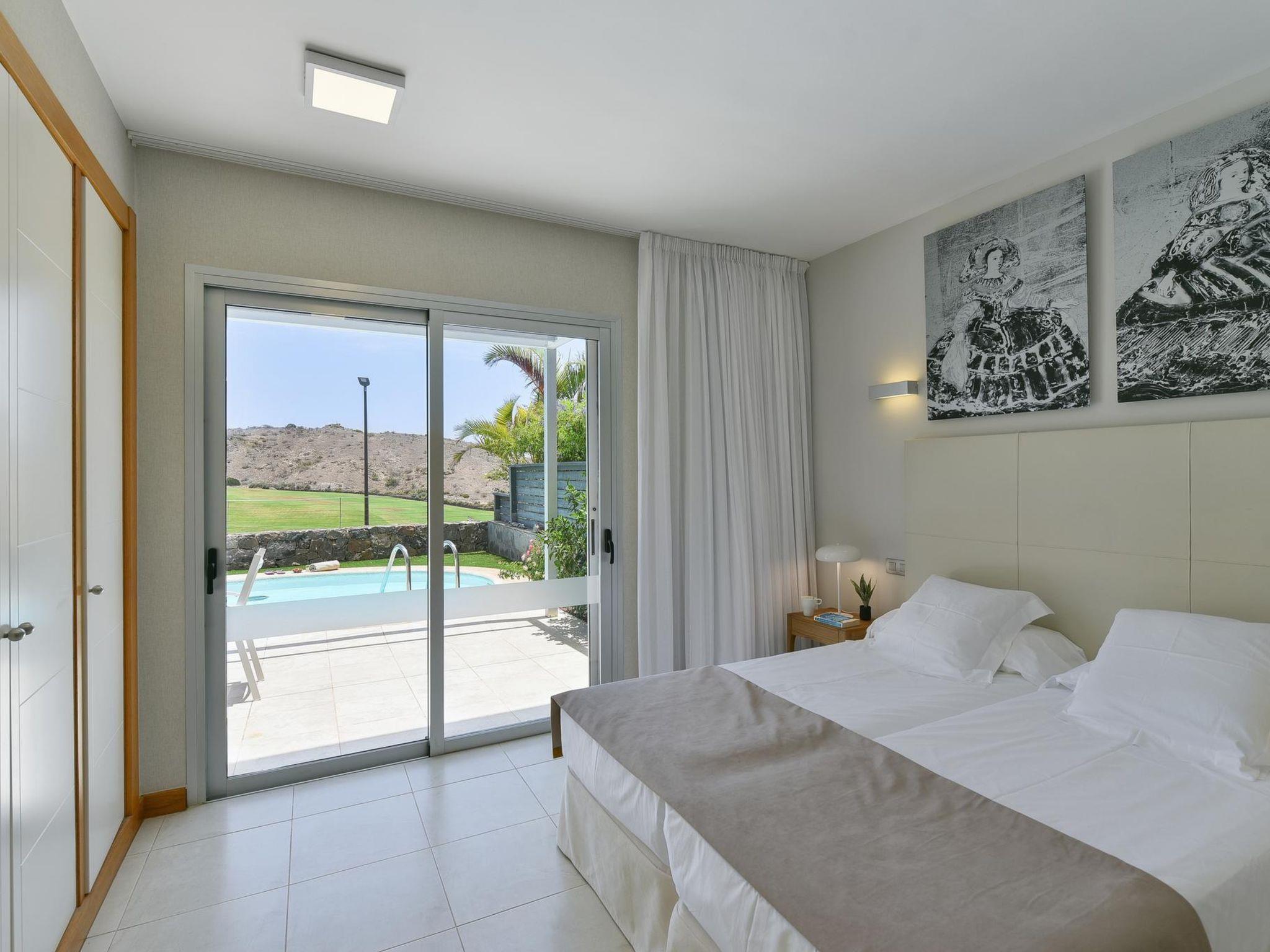 Moderne, komfortable Villa "Vista Golf 10". Im Ortszentrum von Salobre Golf Resort, ausserhalb des Ortes Maspalomas, alleinstehende, ruhige Lage. Zur Alleinbenutzung: Garten (eingezäunt) mit Rasen, Schwimmbad nierenförmig (5 x 3 m, 140 - 140 cm tief, saisonale Verfügbarkeit: 01.Jan. - 31.Dez.). Aussendusche, Grill. Im Hause: Sonnenterrasse, Klimaanlage. Parkplatz auf dem Grundstück, öffentliche Parkplätze auf der Strasse. Supermarkt 400 m, Restaurant 600 m, Bushaltestelle "Las Crucitas" 20 km. Der Besitzer akzeptiert keine Jugendgruppen. Bitte beachten: Flugplatz 25 km vom Haus. Die Nachbarschaft ist sehr lärmempfindlich. Ruhe und gutes Benehmen wird erwartet.