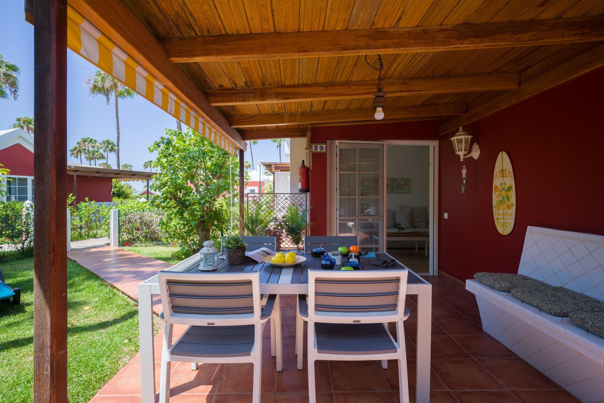 Dieser wunderschöne Bungalow bietet einen erholsamen Rückzugsort für bis zu vier Gäste. Er verfügt über ein Schlafzimmer mit Doppelbett und ein geräumiges Wohn-Esszimmer mit Schlafsofa für zwei Personen. Er bietet modernen Komfort wie Klimaanlage im Wohnzimmer, einen Deckenventilator im Schlafzimmer, Highspeed-WLAN und einen Smart-TV mit internationalen Kanälen. Haustiere sind willkommen, daher ist die Unterkunft haustierfreundlich. Große Fenster sorgen für viel Tageslicht und sorgen für einen hellen Innenraum. Das Badezimmer ist mit einer Dusche ausgestattet. Die private Terrasse mit Essbereich und Grill eignet sich perfekt für Mahlzeiten im Freien. Der Bungalow befindet sich in einer ruhigen Wohnanlage und ist nur wenige Gehminuten von verschiedenen Annehmlichkeiten entfernt. Ein Supermarkt und ein Restaurant befinden sich im Umkreis von 200 Metern, ein Einkaufszentrum und Unterhaltungsmöglichkeiten wie Bowling und Billard in 600 Metern Entfernung. Der atemberaubende Strand ist nur 3,5 km entfernt, und die pulsierende Stadt Maspalomas, bekannt für ihren Sandstrand und ihre lebhaften Cafés, befindet sich ebenfalls in der Nähe. Golfbegeisterte finden den Golfplatz nur 950 Meter entfernt. Dieser voll ausgestattete Bungalow verfügt über eine moderne Küche mit allen wichtigen Geräten wie Kühlschrank, Mikrowelle, Backofen und Geschirrspüler. Sie eignet sich perfekt für die Zubereitung Ihrer Mahlzeiten während Ihres Aufenthalts und bietet zusätzliche Annehmlichkeiten wie Kaffeemaschine, Toaster und Wasserkocher. Zur weiteren Ausstattung gehören eine Waschmaschine, ein Bügeleisen und ein Haartrockner.