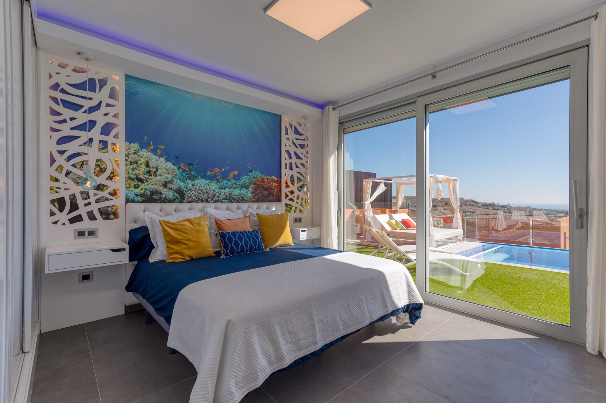 Dieses atemberaubende, neu erbaute, einstöckige Chalet bietet eine außergewöhnliche Mischung aus Komfort und Qualität. Es verfügt über einen privaten, beheizten Pool und liegt nur 8 Minuten vom Strand von Maspalomas entfernt. Eingebettet in einen modernen Komplex neben einem Golfplatz ist die Villa strategisch nach Westen ausgerichtet, sodass Gäste reichlich Sonnenschein und einen atemberaubenden Blick auf das Meer genießen können. Das Design legt Wert auf Großzügigkeit und natürliches Licht. Große Schiebetüren schaffen eine nahtlose Verbindung zwischen Innen- und Außenbereich. Die gut ausgestattete Wohnfläche umfasst zwei Schlafzimmer mit Einzelbetten und ein Doppelzimmer mit Smart-TV und eigenem Bad mit Dusche. Beide Schlafzimmer teilen sich ein zusätzliches Badezimmer. Der moderne Wohnbereich bietet ein bequemes Sofa, einen Smart-TV und einen Esstisch. Die voll ausgestattete Küche mit allen wichtigen Utensilien und einem Geschirrspüler sorgt für zusätzlichen Komfort. Die Villa ist mit Klimaanlage, Heizung, Safe, Grill und weiteren Annehmlichkeiten ausgestattet, damit sich die Gäste während ihres Aufenthalts wie zu Hause fühlen. Auch der Außenbereich des Chalets ist beeindruckend und besticht durch einen privaten, beheizten Pool, umgeben von Kunstrasen, einem balinesischen Bett und Sonnenliegen für ultimative Entspannung. Ein Essbereich im Freien mit Sitzgelegenheiten für sechs Personen und einem Gasgrill rundet das Erlebnis ab. Der beheizte Pool ist gegen Aufpreis verfügbar. Bitte beachten Sie jedoch, dass es sich um ein Wohngebiet mit strengen Lärmschutzbestimmungen handelt, um eine ruhige Umgebung zu gewährleisten. Mit 24-Stunden-Sicherheitsdienst, Kinderanimation und verschiedenen Annehmlichkeiten in der Nähe, darunter spezielle Golftarife, ist dieses Chalet der perfekte Rückzugsort, um die Insel zu erkunden. Für eine bequeme Anreise zu den Sehenswürdigkeiten der Region empfehlen wir ein Auto.