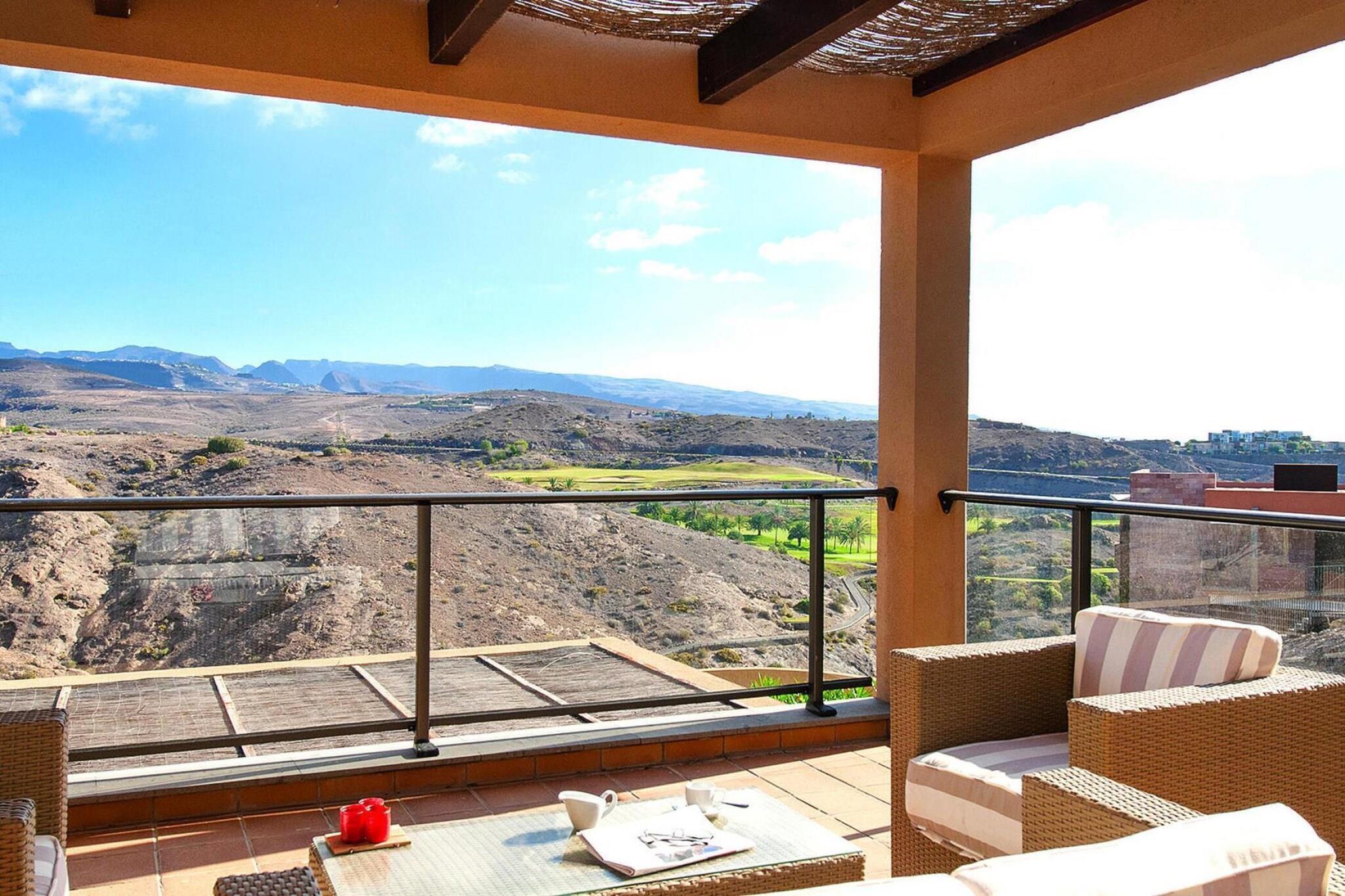 Wenn Sie im Urlaub das Besondere schätzen, dann haben Sie es mit diesem exklusiven Ferienhaus gefunden. Wo sonst haben Sie einen so spektakulären Blick, wenn nicht in den Bergen von Maspalomas? Doch das ist längst nicht alles, was das moderne Urlaubsdomizil Ihnen zu bieten hat. Die Einrichtung und Ausstattung der Villa am Rande des Golfresorts versprechen Ihnen ausgezeichneten Komfort sowie ein Höchstmaß an privater Atmosphäre. Im Pool vor Ihrer Terrasse können Sie jederzeit abtauchen, der gesamte Außenbereich lädt zu ausgelassenen Stunden im Freien ein. Sie können hier Golf spielen - müssen Sie aber nicht. Sie können einfach nur die Ruhe genießen, Sie können sich aber auch ins Abenteuer stürzen. Vieles ist rund um dieses malerisch gelegene Ferienhaus möglich und eines steht fest: Sie werden sich hier entspannen. Für den täglichen Bedarf können Sie sich im Supermarkt in unmittelbarer Nähe versorgen, ein Restaurant verwöhnt Sie mit kulinarischen Köstlichkeiten. Die beliebten Touristenzentren Maspalomas und Playa del Ingles erreichen Sie mit dem Auto in knapp zehn Minuten.