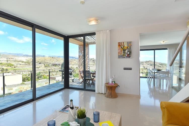 Lassen Sie Lärm und Hektik einfach zu Hause! In der luxuriösen Villa mit ausgezeichnetem Komfort genießen Sie vor der Kulisse der einzigartigen Berglandschaft von Maspalomas die wohltuende Ruhe. Die Einrichtung und Ausstattung Ihrer Ferienvilla mit hochwertigen Möbeln und modernen Utensilien unterstützt Sie dabei. Abends genießen Sie die idyllische Stimmung am besten im Freien mit einem gemütlichen Barbecue. Am Rande des exklusiven Golf Resorts Salobre erwartet Sie dieser charmante Wohnkomplex mit mehreren Villen. Er schmiegt sich mit seiner spektakulären Architektur wunderbar in die Berglandschaft von Maspalomas. Für den täglichen Bedarf können Sie sich im nahen kleinen Supermarkt versorgen, es gibt ein Restaurant und gegen Gebühr können Einrichtungen des benachbarten Resorts mitgenutzt werden. Gäste der Villen erhalten eine Greenfee-Ermäßigung, wenn Sie den Golfplatz Nord oder Süd nutzen möchten. Die beliebten Touristenzentren Maspalomas und Playa del Ingles erreichen Sie mit dem Auto in knapp zehn Minuten.