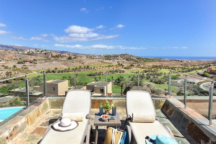 Lassen Sie Lärm und Hektik einfach zu Hause! In der luxuriösen Villa mit ausgezeichnetem Komfort genießen Sie vor der Kulisse der einzigartigen Berglandschaft von Maspalomas die wohltuende Ruhe. Die Einrichtung und Ausstattung Ihrer Ferienvilla mit hochwertigen Möbeln und modernen Utensilien unterstützt Sie dabei. Abends genießen Sie die idyllische Stimmung am besten im Freien mit einem gemütlichen Barbecue. Am Rande des exklusiven Golf Resorts Salobre erwartet Sie dieser charmante Wohnkomplex mit mehreren Villen. Er schmiegt sich mit seiner spektakulären Architektur wunderbar in die Berglandschaft von Maspalomas. Für den täglichen Bedarf können Sie sich im nahen kleinen Supermarkt versorgen, es gibt ein Restaurant und gegen Gebühr können Einrichtungen des benachbarten Resorts mitgenutzt werden. Gäste der Villen erhalten eine Greenfee-Ermäßigung, wenn Sie den Golfplatz Nord oder Süd nutzen möchten. Die beliebten Touristenzentren Maspalomas und Playa del Ingles erreichen Sie mit dem Auto in knapp zehn Minuten.