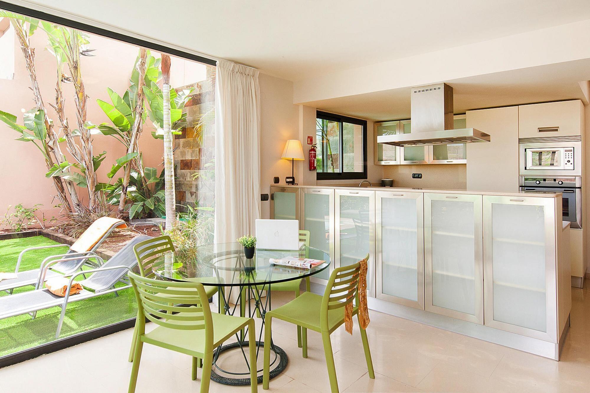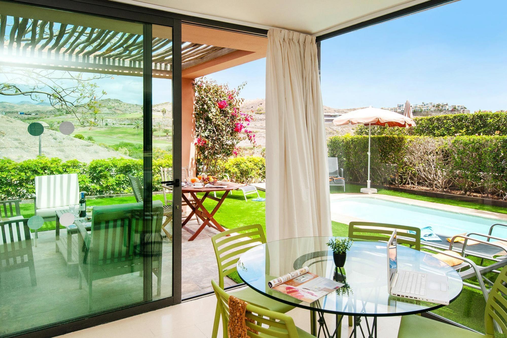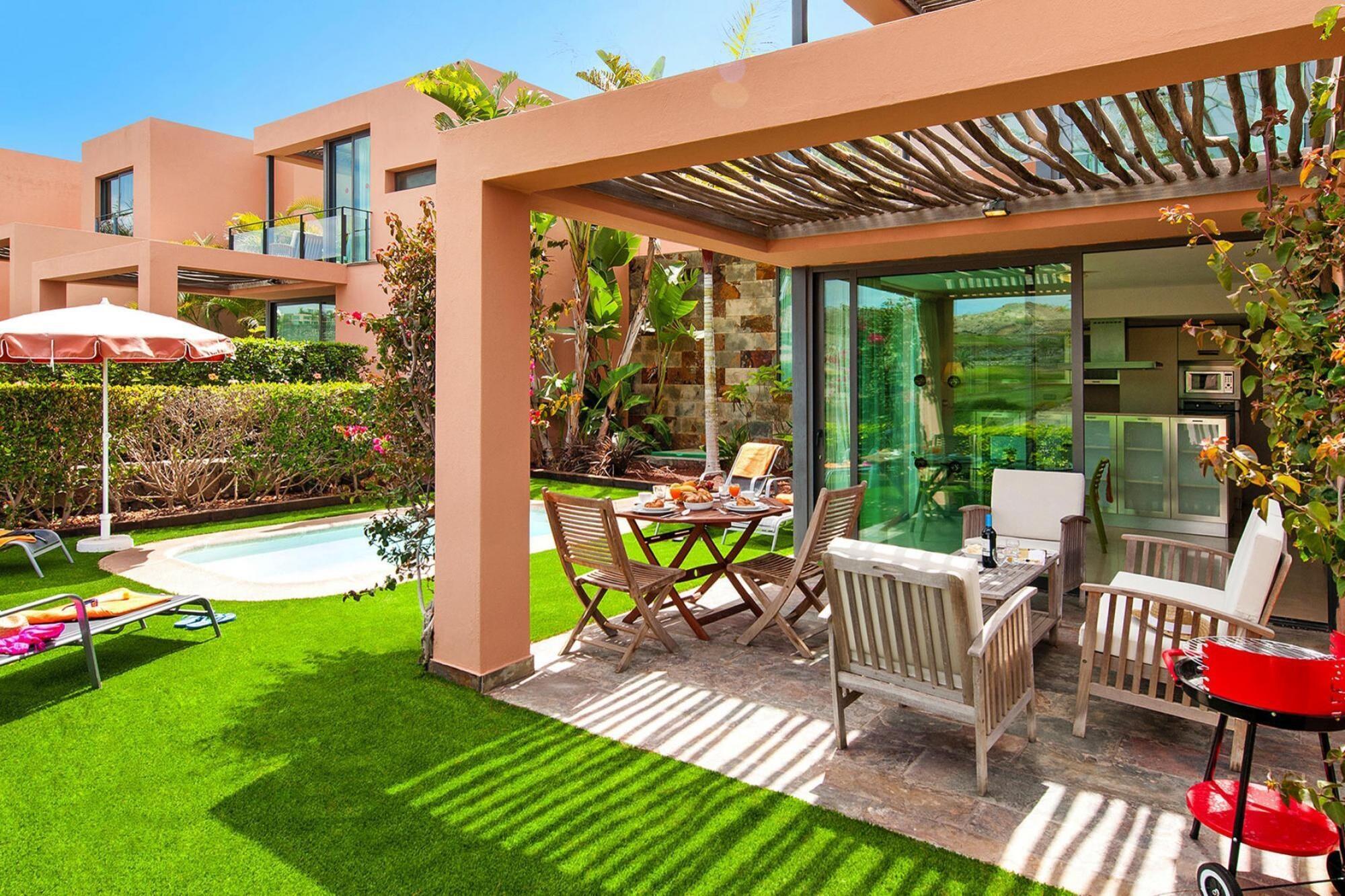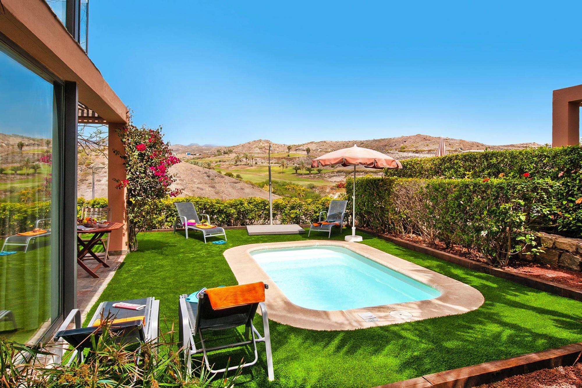 Ferienvilla mit Außenpool und heller, moderner Bauweise mit offenem Wohnbereich. Bodenlange Panoramafenster lassen viel Licht ins Haus und bieten Ihnen einen herrlichen Blick auf die Umgebung. Wer möchte da nicht mit einem guten Buch und einer Tasse Kaffee auf der Terrasse entspannen und sich zwischendurch einfach im Pool erfrischen? Golfer können während ihres Urlaubs ihr Handicap verbessern, denn die Villa befindet sich direkt am Golfplatz und als Villen-Gast erhalten Sie Greenfee-Ermäßigung. Der Golfplatz Süd (18-Loch) hat auf einer Lauflänge von 6.112 Meter ein Par von 71 Schlägen, der Golfplatz Nord (18-Loch) verfügt über eine Lauflänge von 5.524 Meter und hat ein Par von 72 Schlägen. Maspalomas ist der älteste Ferienort an der Südküste Gran Canarias und bekannt durch seine riesigen Dünen, die sich über eine Länge von sechs und eine Breite von ein bis zwei Kilometern erstrecken. Stolz ragt der 68 Meter hohe Leuchtturm El Faro sich in die Lüfte, der bereits im Jahre 1889 errichtet wurde. Am Leuchtturm findet sich eine Oase „La Charca“, in der zahlreiche Wasservögel brüten. Sie steht ebenso wie die Dünen seit 1987 unter Naturschutz.