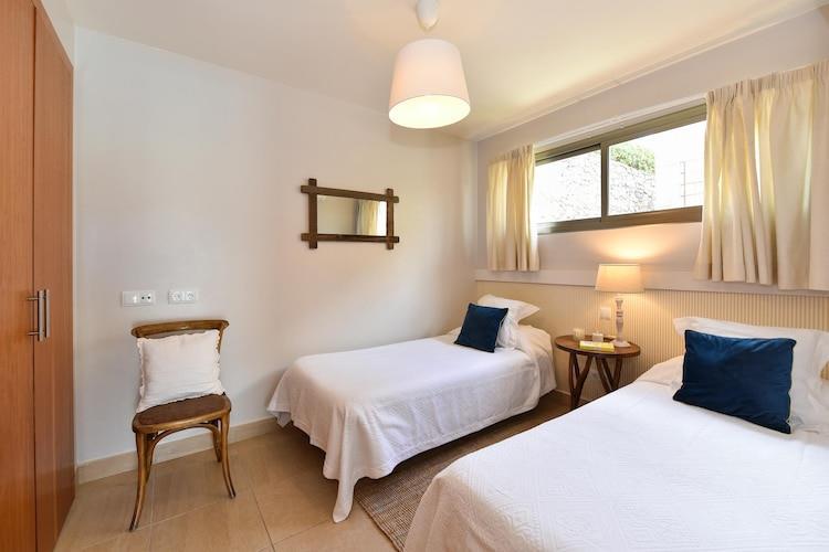 Parterre: (Wohnzimmer(TV(Satellit), DVD-Spieler), offene Küche(Esstisch, Herd, Toaster, Kaffeemaschine, Backofen, Grill, Mikrowelle, Spülmaschine, Kühl-/Gefrierkombination), Schlafzimmer(Doppelbett), Schlafzimmer(Einzelbett, Einzelbett), Schlafzimmer(Einzelbett, Einzelbett), Badezimmer(Dusche, Toilette, Bidet, Föhn), Badezimmer(Dusche, Toilette, Föhn)) Trockner, Waschmaschine, Klimaanlage, Terrasse(überdacht), Garten, Gartenmöbel, Pool(alleinige Nutzung, im Garten, beheizbar), Hochstuhl, Babybett (kostenlos)