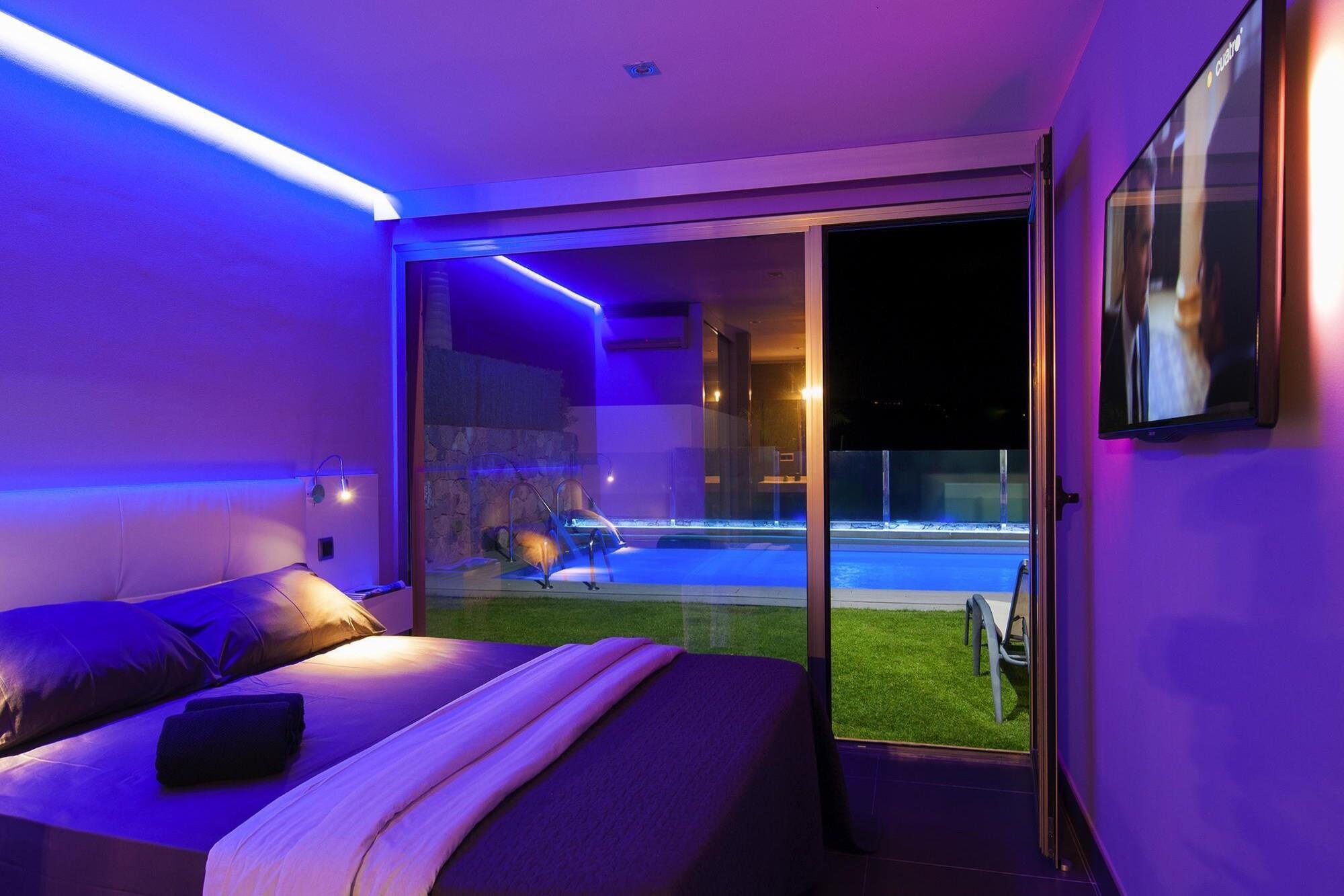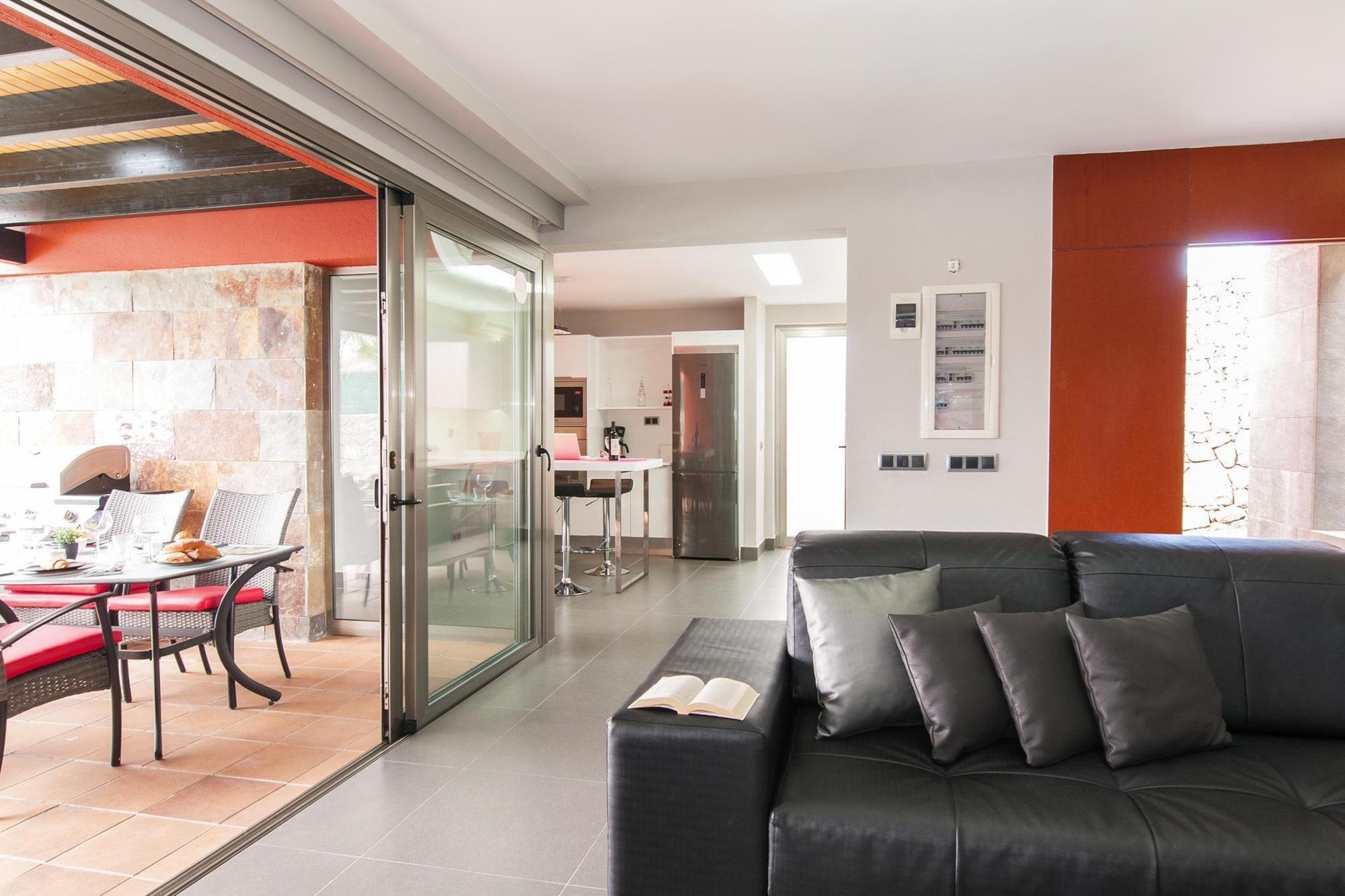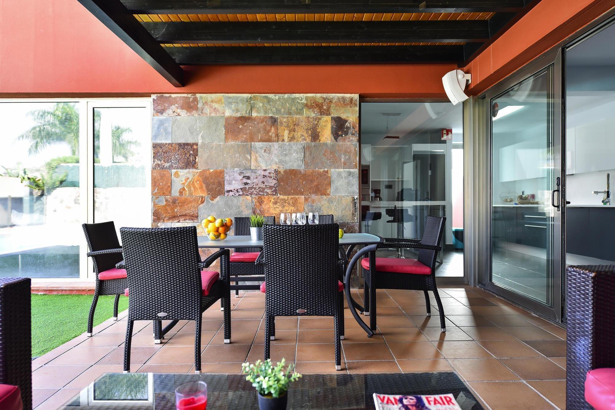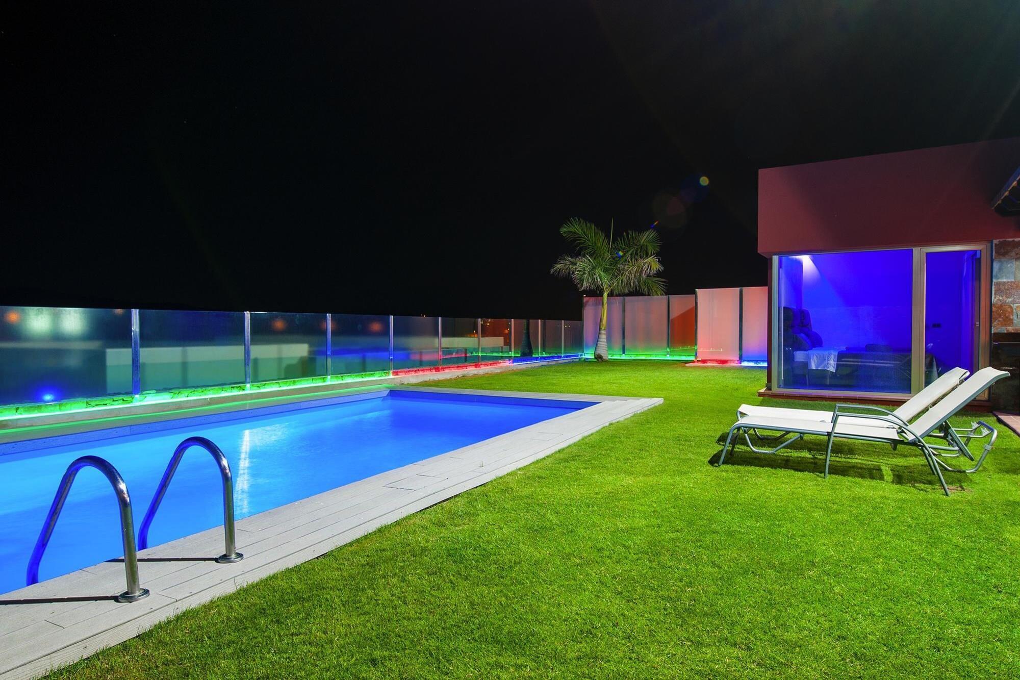 Die einstöckige Villa beeindruckt mit Ihrem modernen Sill und einem wunderschönen Garten mit weitem Ausblick. Sie garantiert zweifellos einen ganz besonderen Urlaub auf Gran Canaria. Genießen Sie die Sonne am Pool oder auf der Terrasse. Die Villa ist mit WLAN (gegen Gebühr), Klimaanlage und SAT-TV ausgestattet, sodass einem unbeschwerten Aufenthalt nichts im Wege steht. In den Bergen von Maspalomas ist in einer einzigartigen Landschaft dieser exklusive Wohnkomplex am Rande des Golf Resorts entstanden. In unmittelbarer Nähe können Sie sich im Supermarkt für den täglichen Bedarf versorgen, ein Restaurant verwöhnt Sie mit kulinarischen Köstlichkeiten. Die beliebten Touristenzentren Maspalomas und Playa del Ingles erreichen Sie mit dem Auto in knapp zehn Minuten. Gäste der Villen können den Golfplatz Nord und Süd nutzen. Der Golfplatz Süd (18-Loch) hat auf einer Lauflänge von 6.112 m ein Par von 71 Schlägen, der Golfplatz Nord (18-Loch) verfügt über eine Lauflänge von 5.524 m und hat ein Par von 72 Schlägen. Gäste der Villen erhalten eine Greenfee-Ermäßigung.